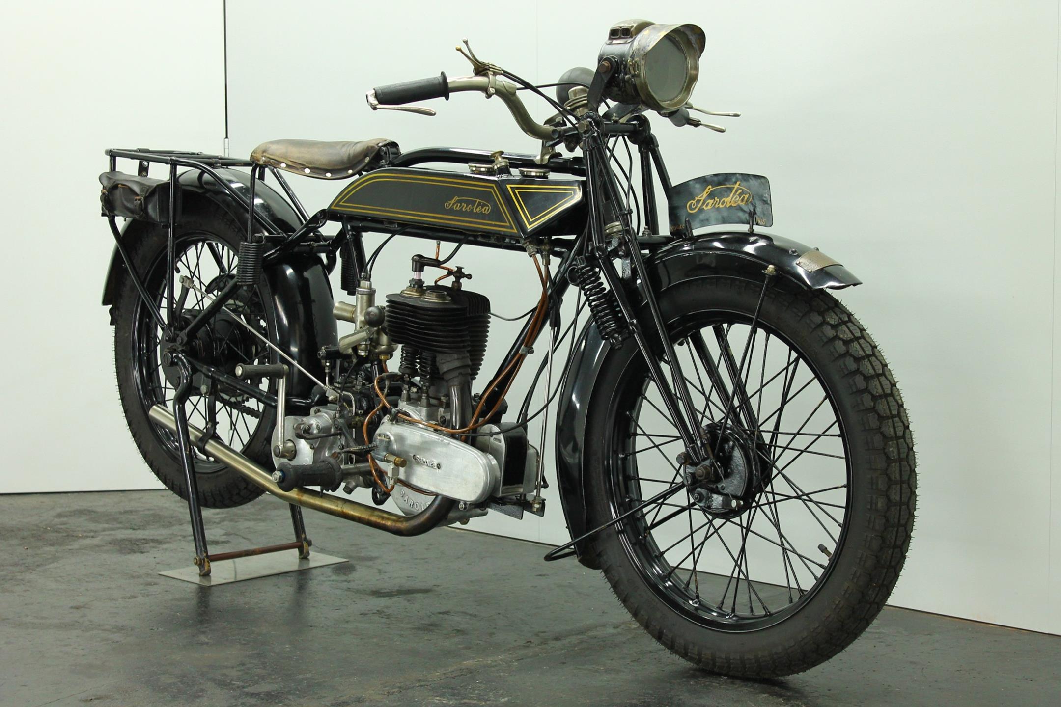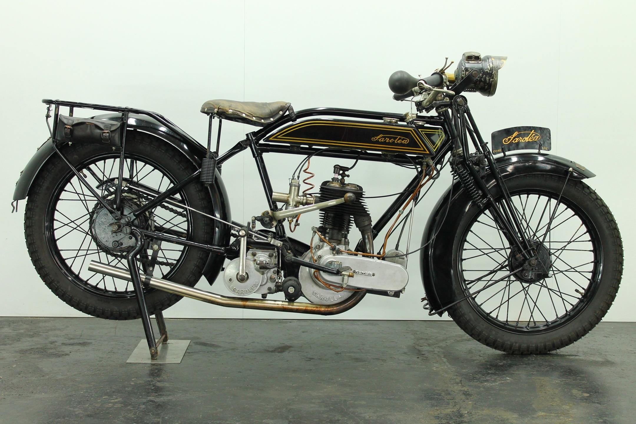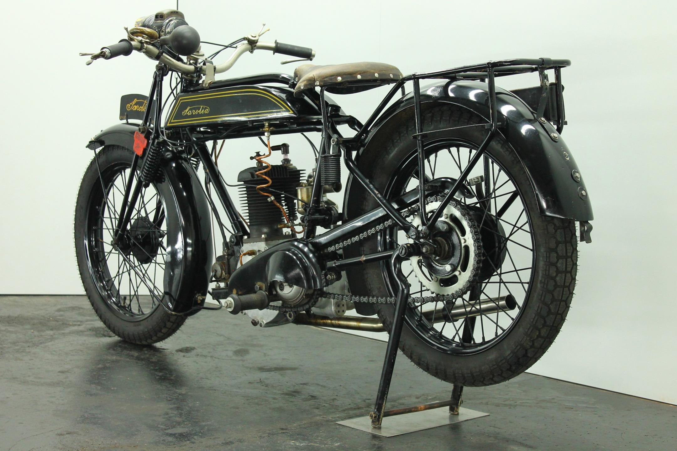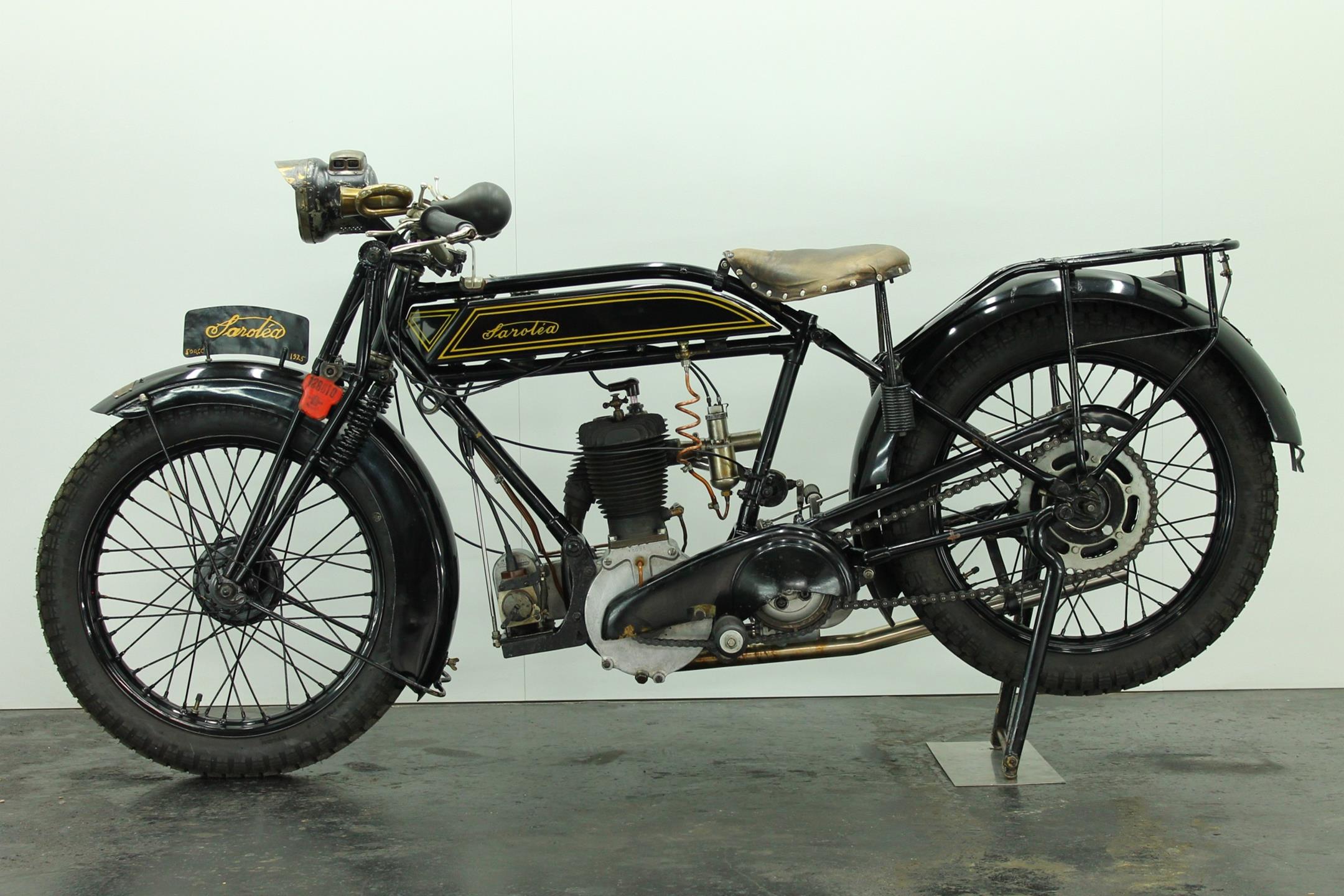 The firm was established by Joseph Saroléa in 1850 at Herstal (Liege) as an arms factory, and bicycle production began in 1892. Two years later Joseph died and his widow and sons assumed management. The firm thrived and early in the early 20th century (probably 1900) the the first Sarolea motorised bicycles appeared, with engines designed by chief engineer Martin Fagard. Saroléa was soon well established in the market and by 1907 the firm employed around 200 staff working in a factory of 4000 square metres. Both singles and V-twin engines were constructed, and these were supplied engines to a number of firms in several countries. Complete Saroléa machines were sold in Great Britain under the Kerry brand. Saroléa used a variety of British components including AMAC carburettors and Sturmey Archer gearboxes, the latter replaced with Sarolea boxes in 1927. During the 1920s and 30s the firm was involved in competition events including reliability trials and hill climbs, fielding OHV machines which proved both succesful and popular. Postwar, the firm survived until 1957 when it joined forces with FN and Gillet-Herstal. Sarolea-badged machines continued to appear until 1963, at which time the company was taken over by Gillet and Sarolea machines were no longer marketed.