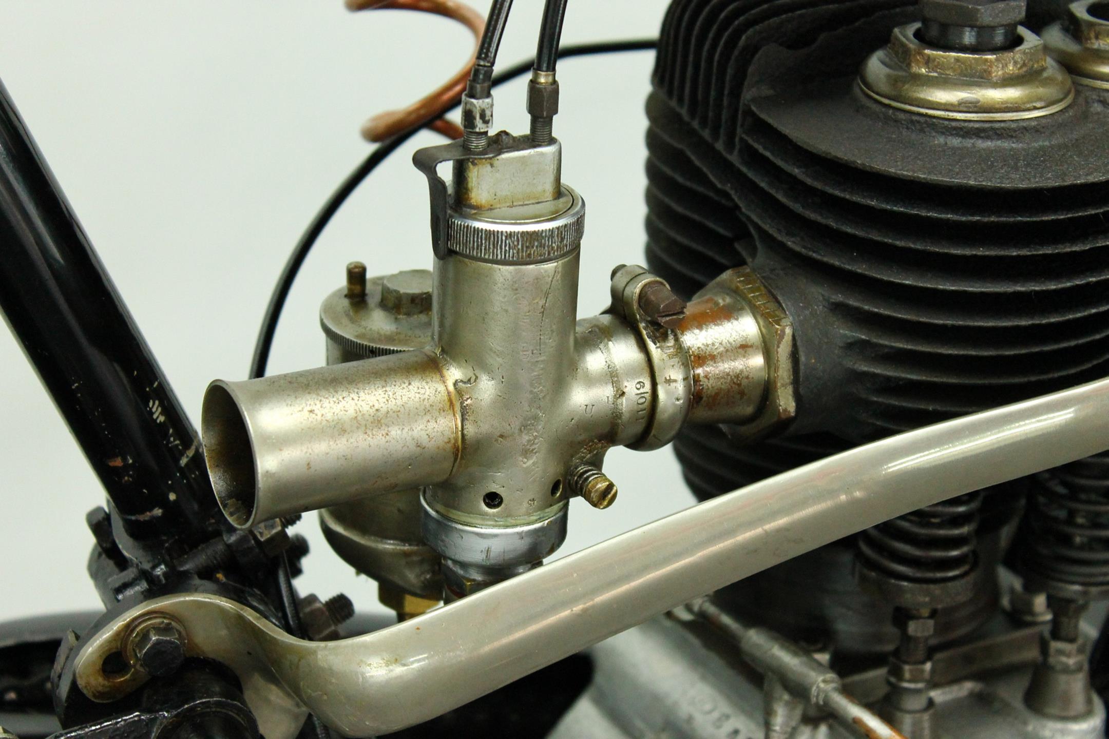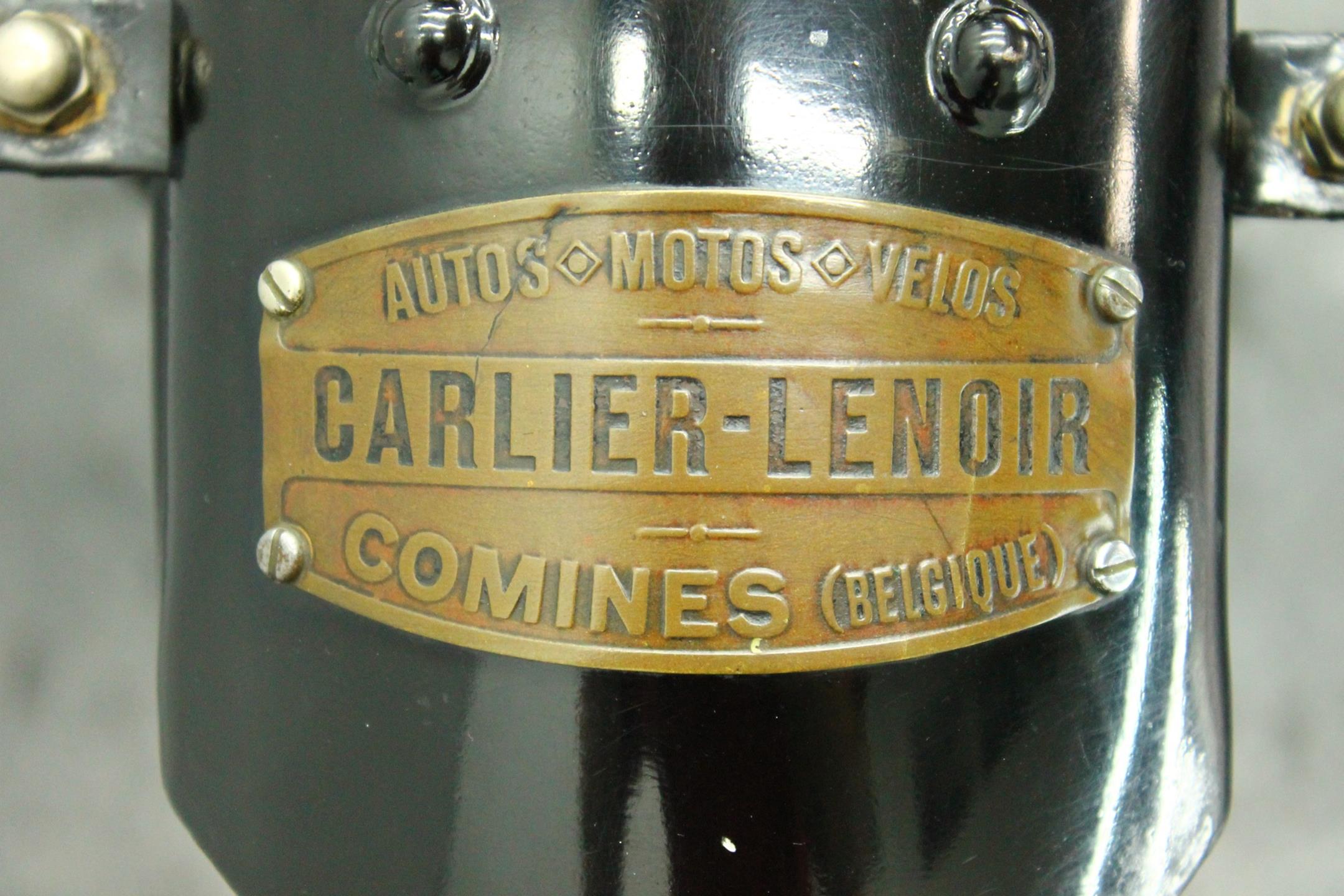 This bike is a good runner its equipped with a Powell & Hanmer headlight, Bosch magneto, AMAL carburetor and a hand operated horn. On the front fender there is original dealer brass plate of Belgian it reads “Carlier-Lenor, Comines”.