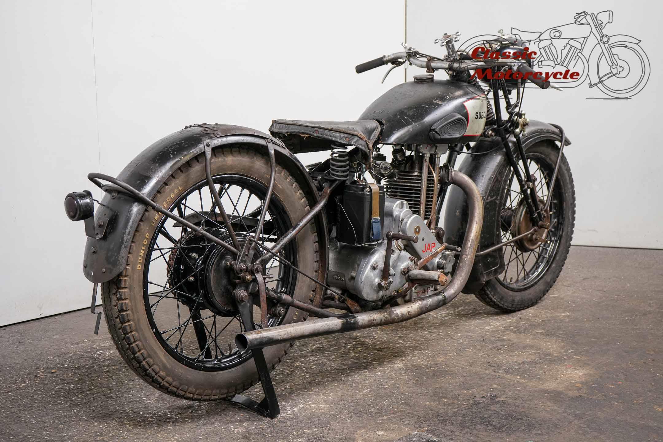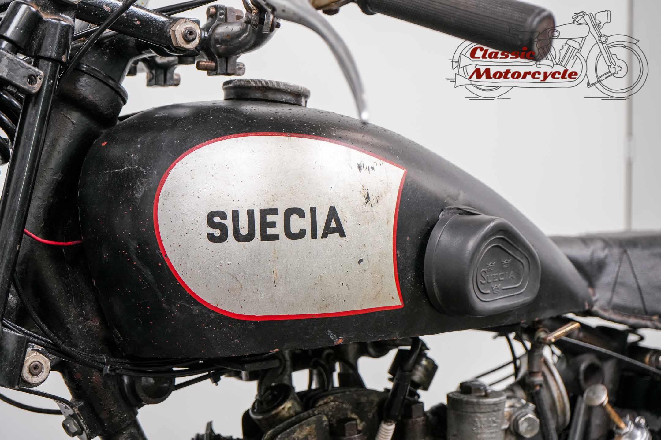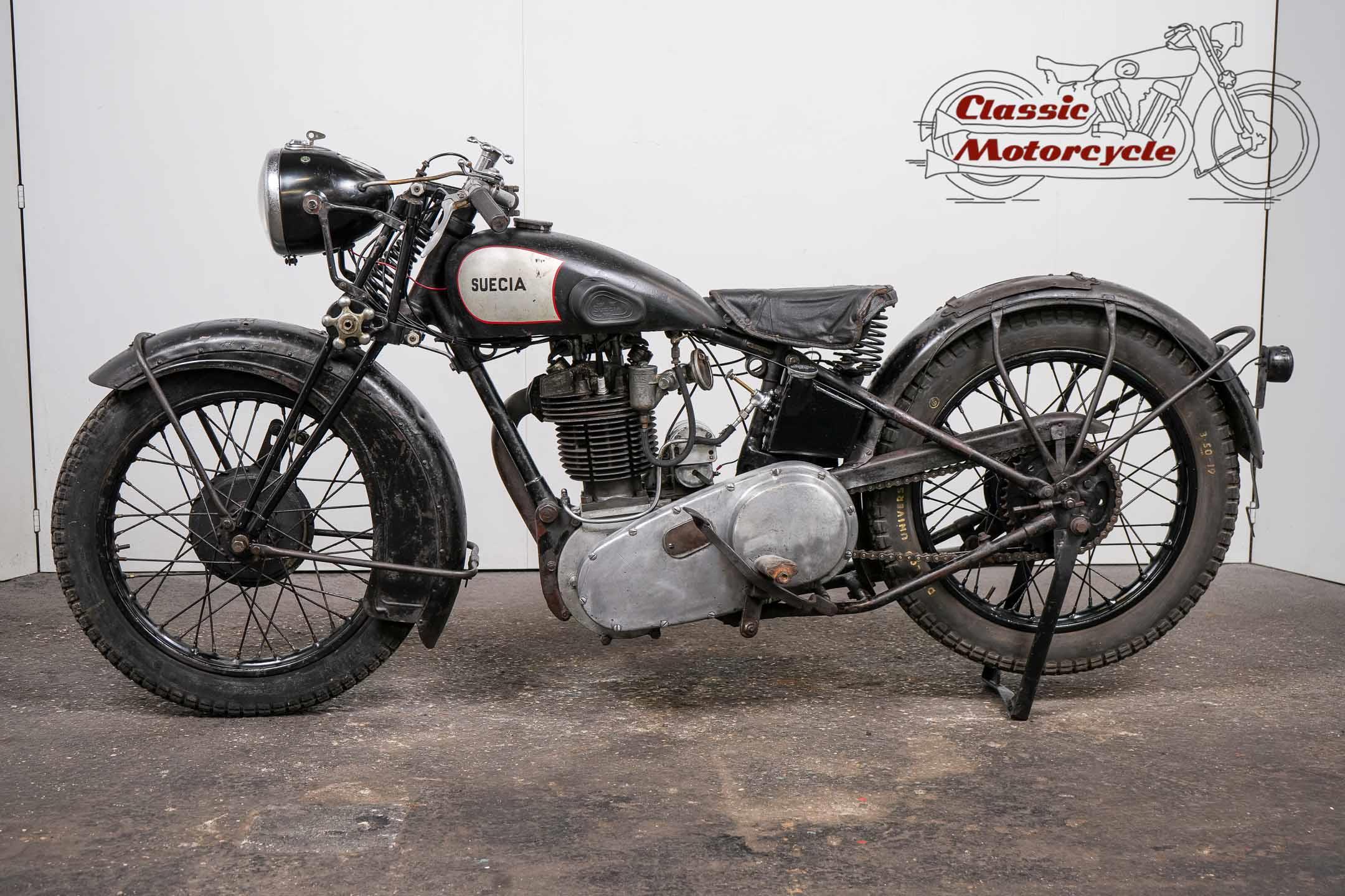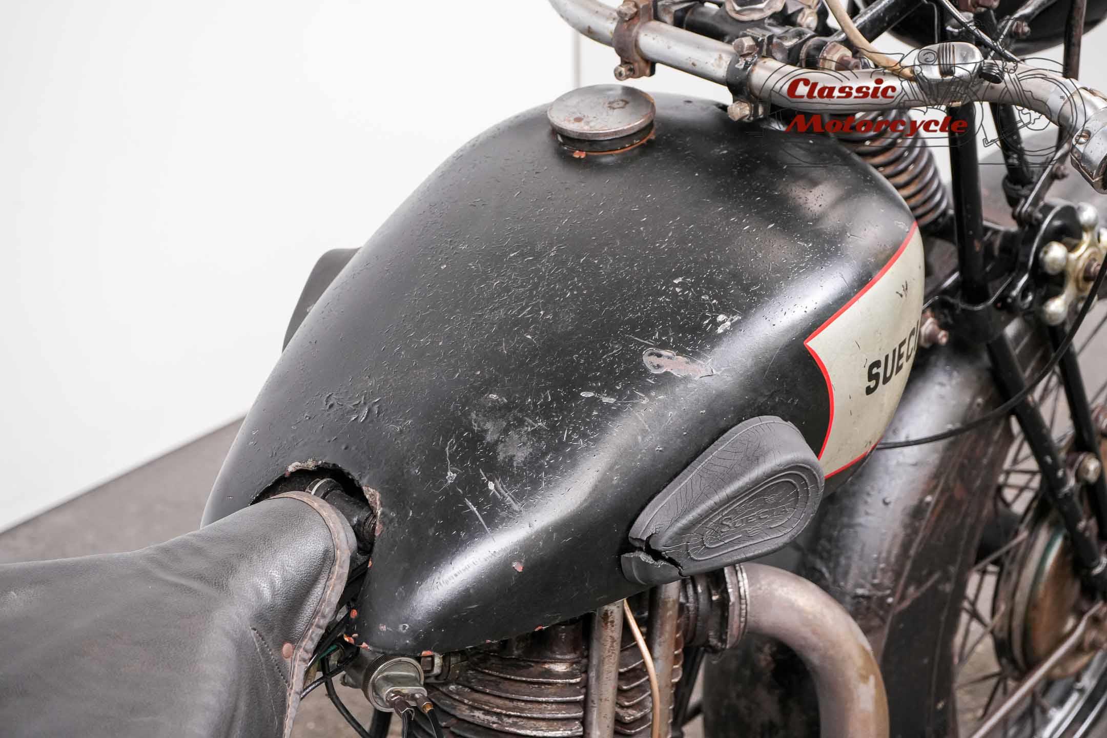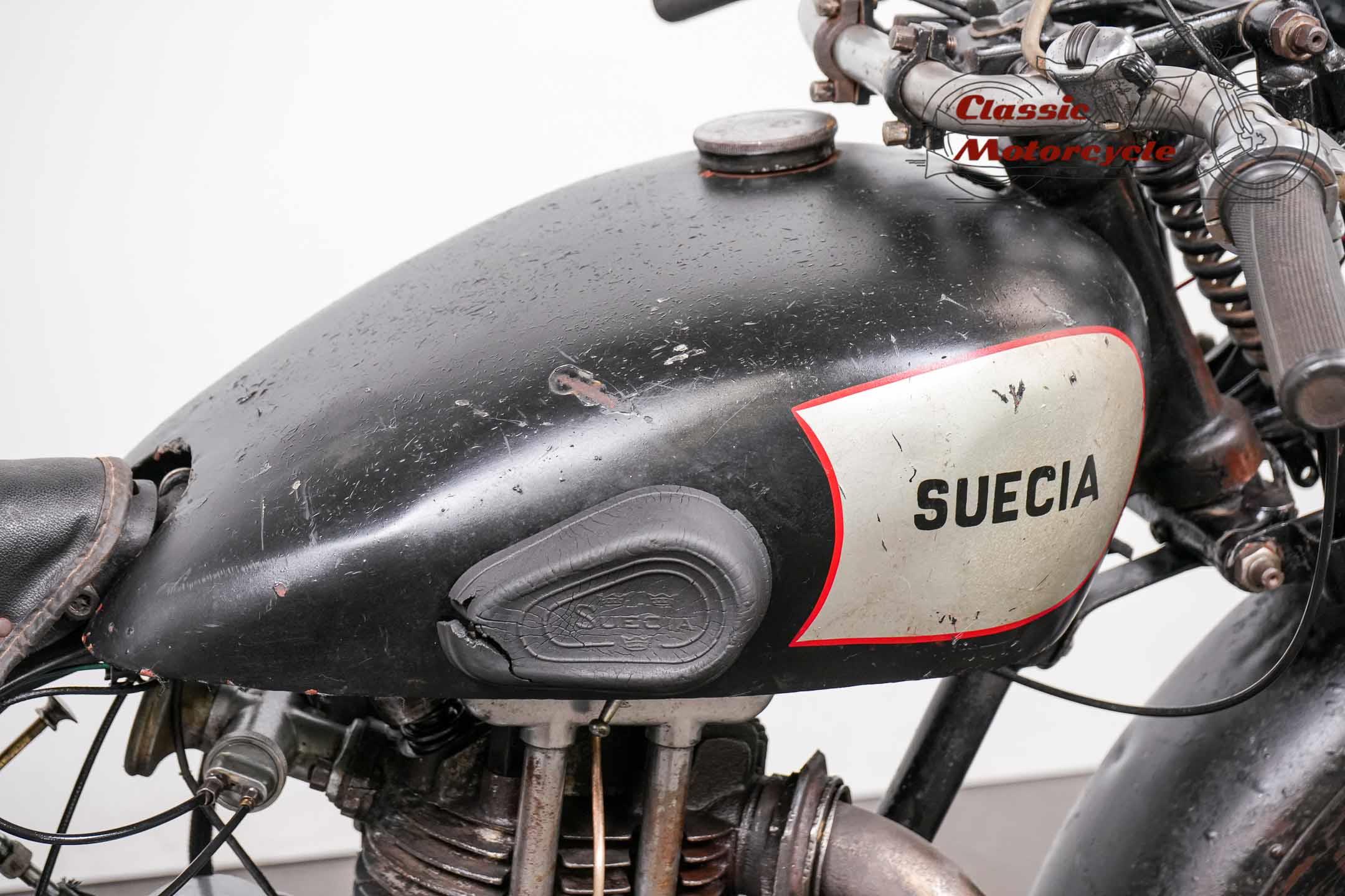 Suecia, a strong pre-war motorcycle brand from Sweden. The manufacturer was very keen to install high-quality parts on its motorcycles. The Sport 600 was also created with this in mind. The machine is bursting with power with its 600cc ohv JAP single cylinder. With every ignition there is a thrust forward. The engine still works as it did on the first day. The machine is largely in its original condition and still has a copy of the papers from Sweden. A rare opportunity, a ready to ride machine with original paint.