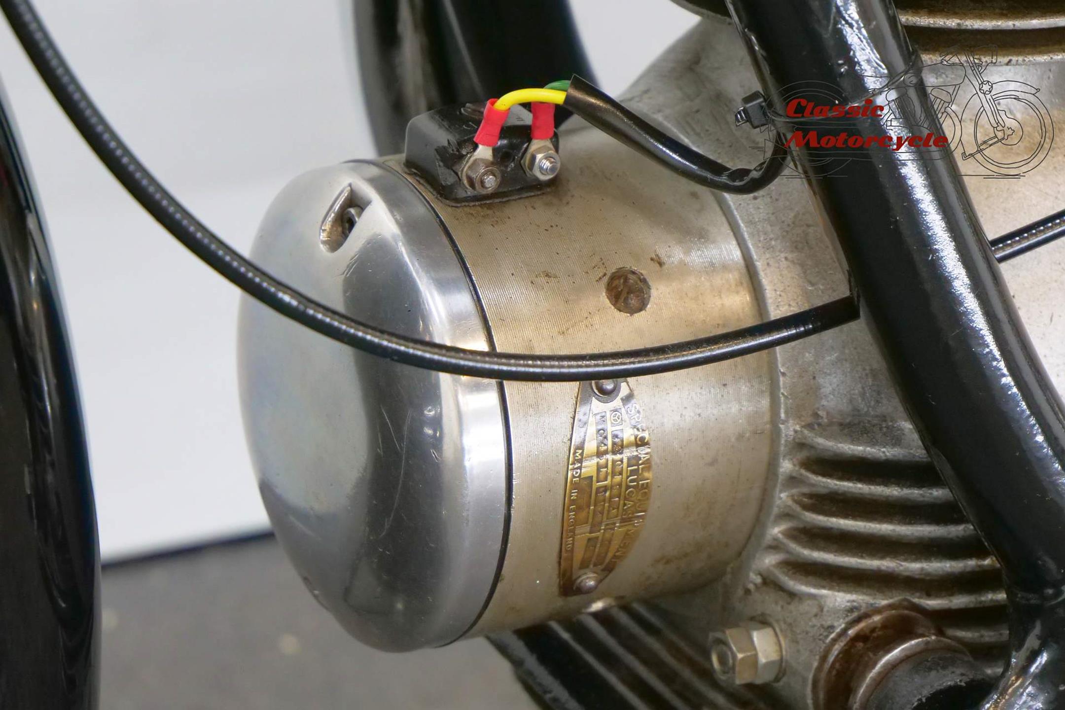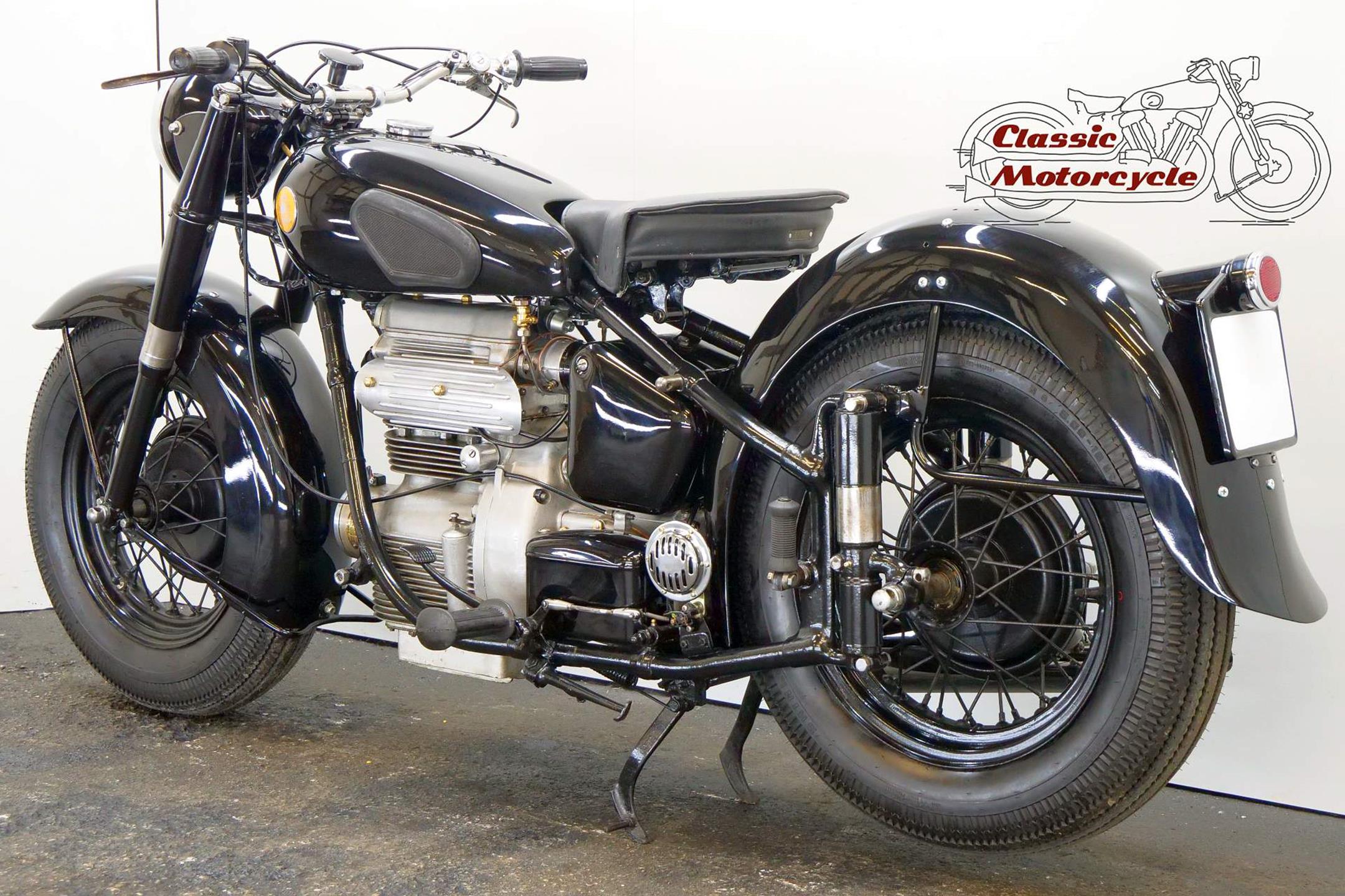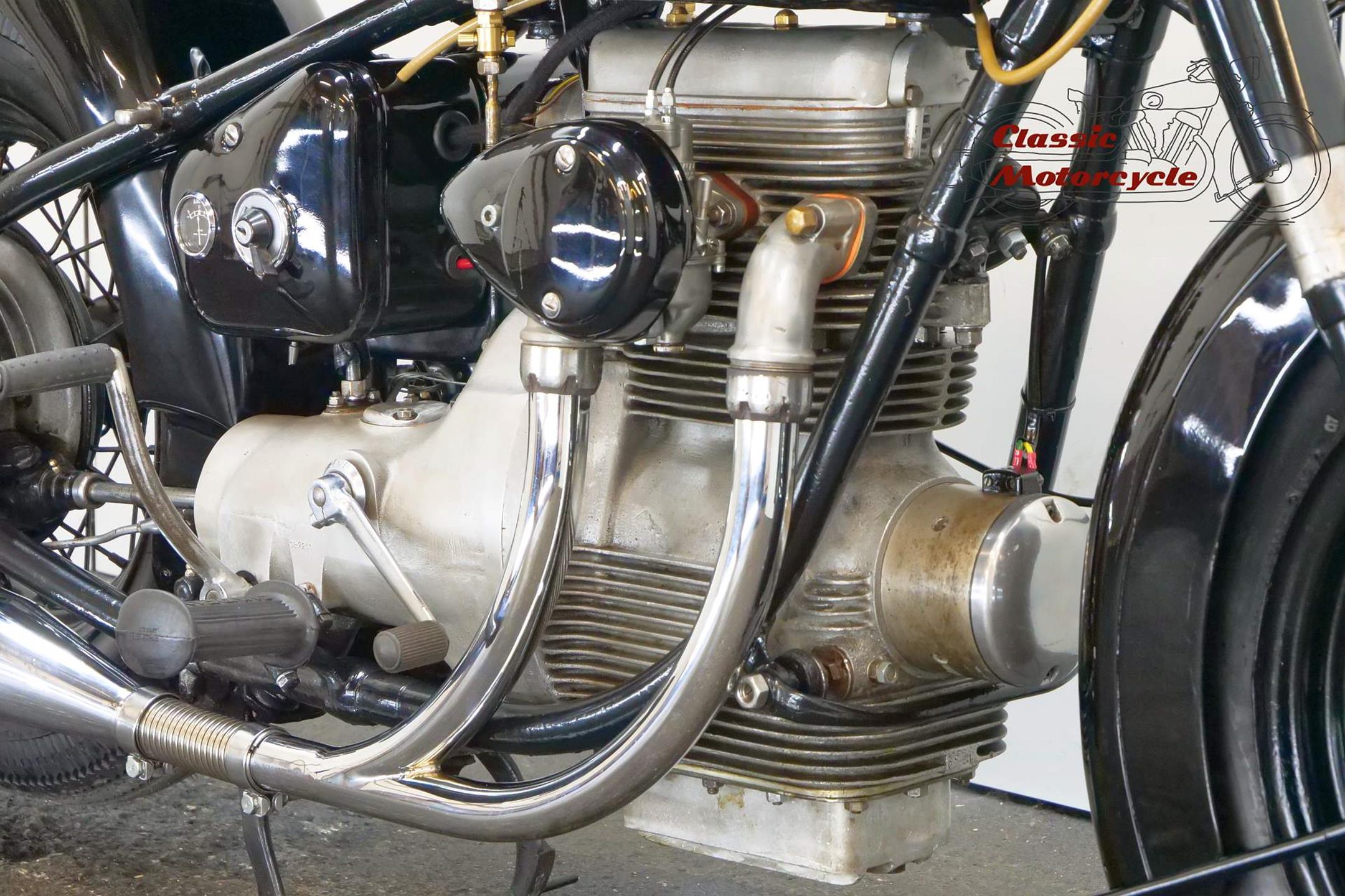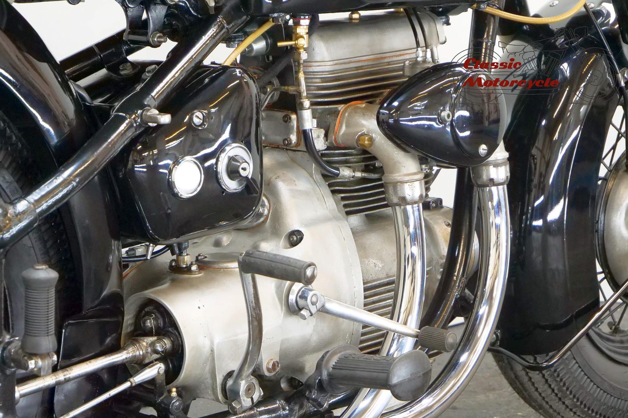 Designed in wartime, the Sunbeam inline twin was introduced in 1947. A luxury tourer inspired by the pre-war BMW, it was of advanced specification with overhead-camshaft engine, shaft drive, and plunger rear suspension. The clutch housing and four-speed gearbox bolted directly to the back of the engine, which was rubber mounted in the duplex loop frame, an innovation that required a flexible joint in the exhaust system ahead of the silencer. The first S7 version was equipped with balloon tyres, a feature not carried over to the more conventional S8 introduced in 1949. Never as popular as BSA's more performance orientated models, the gentlemanly S7 and S8 remained in production until 1957.