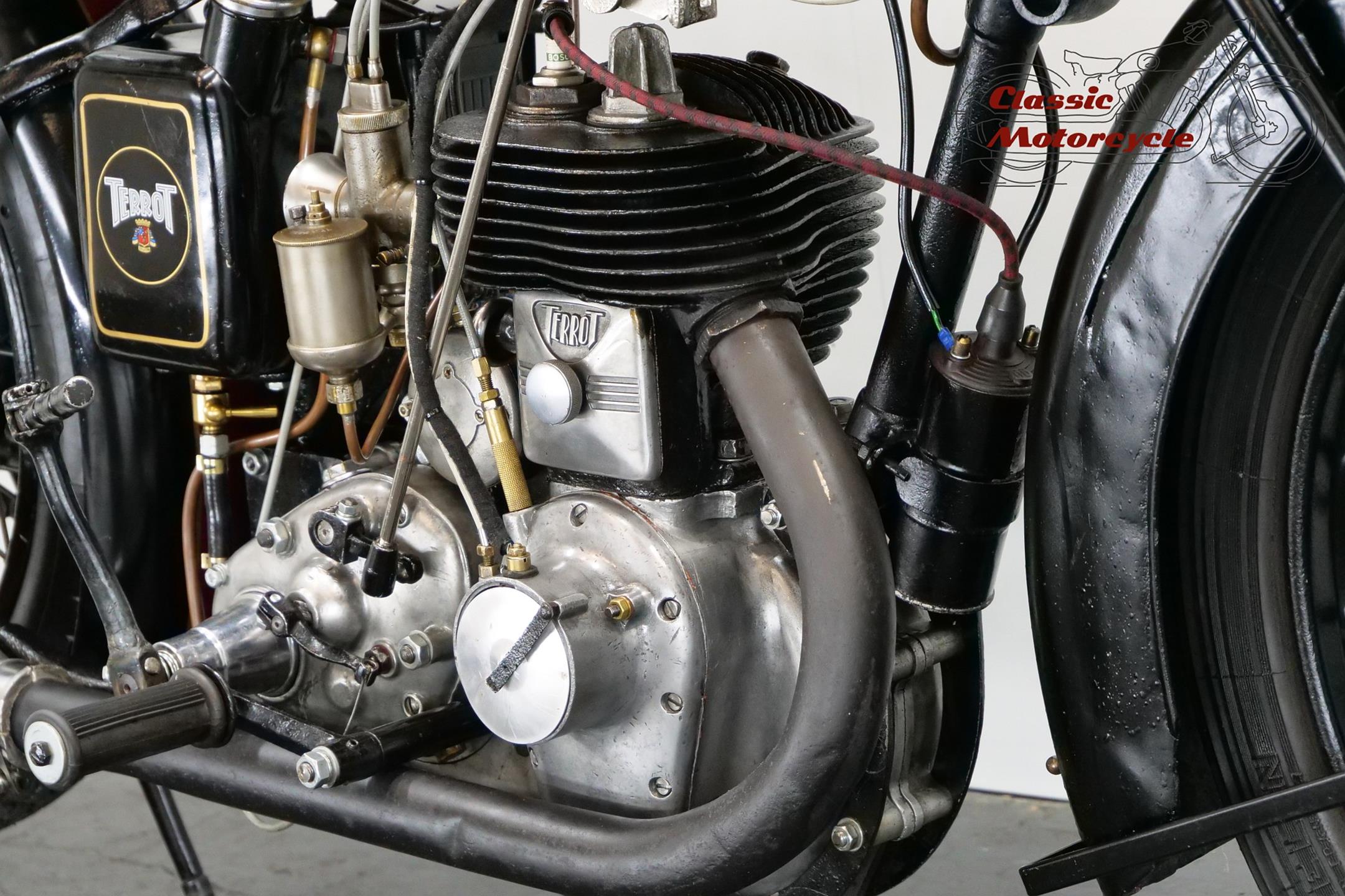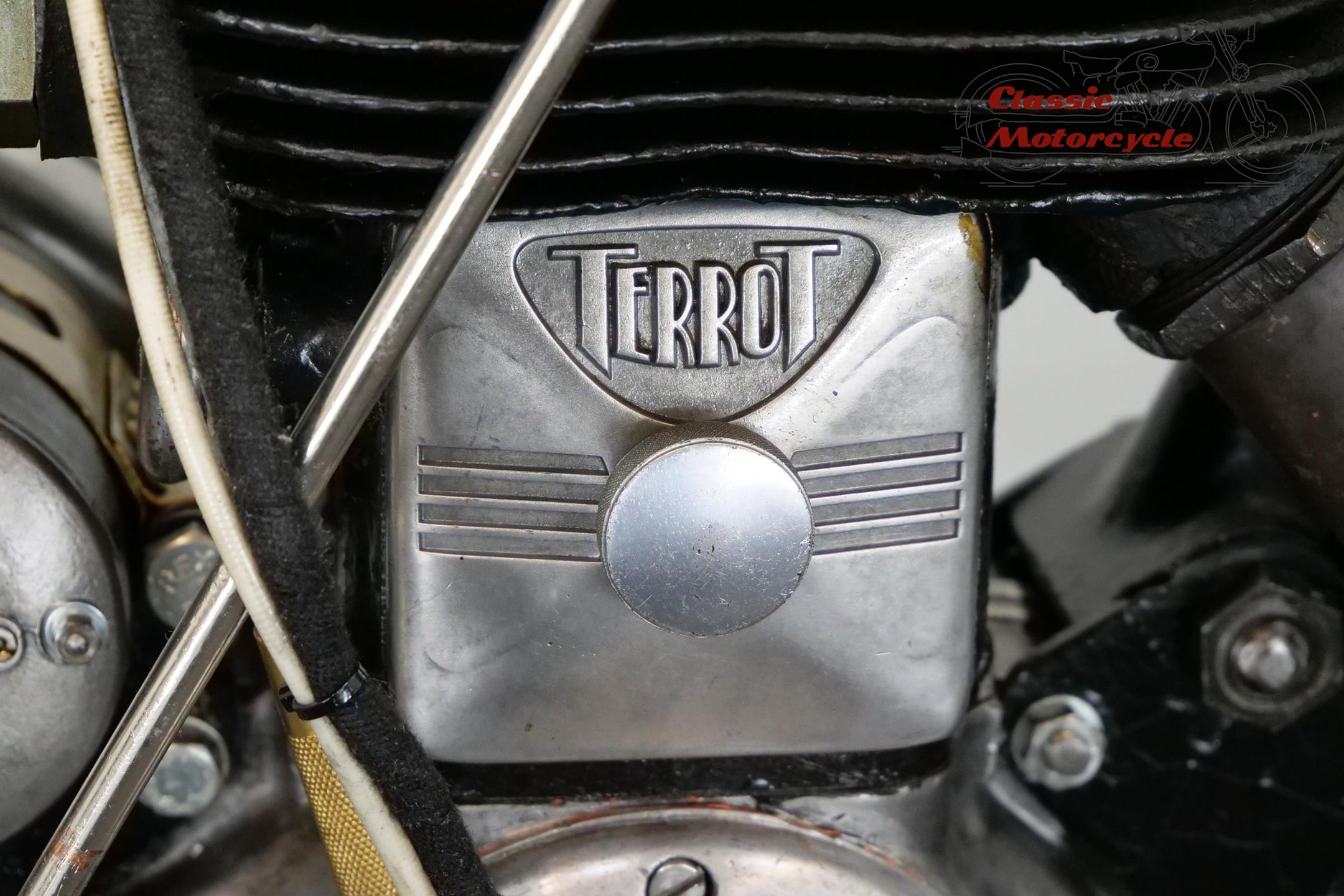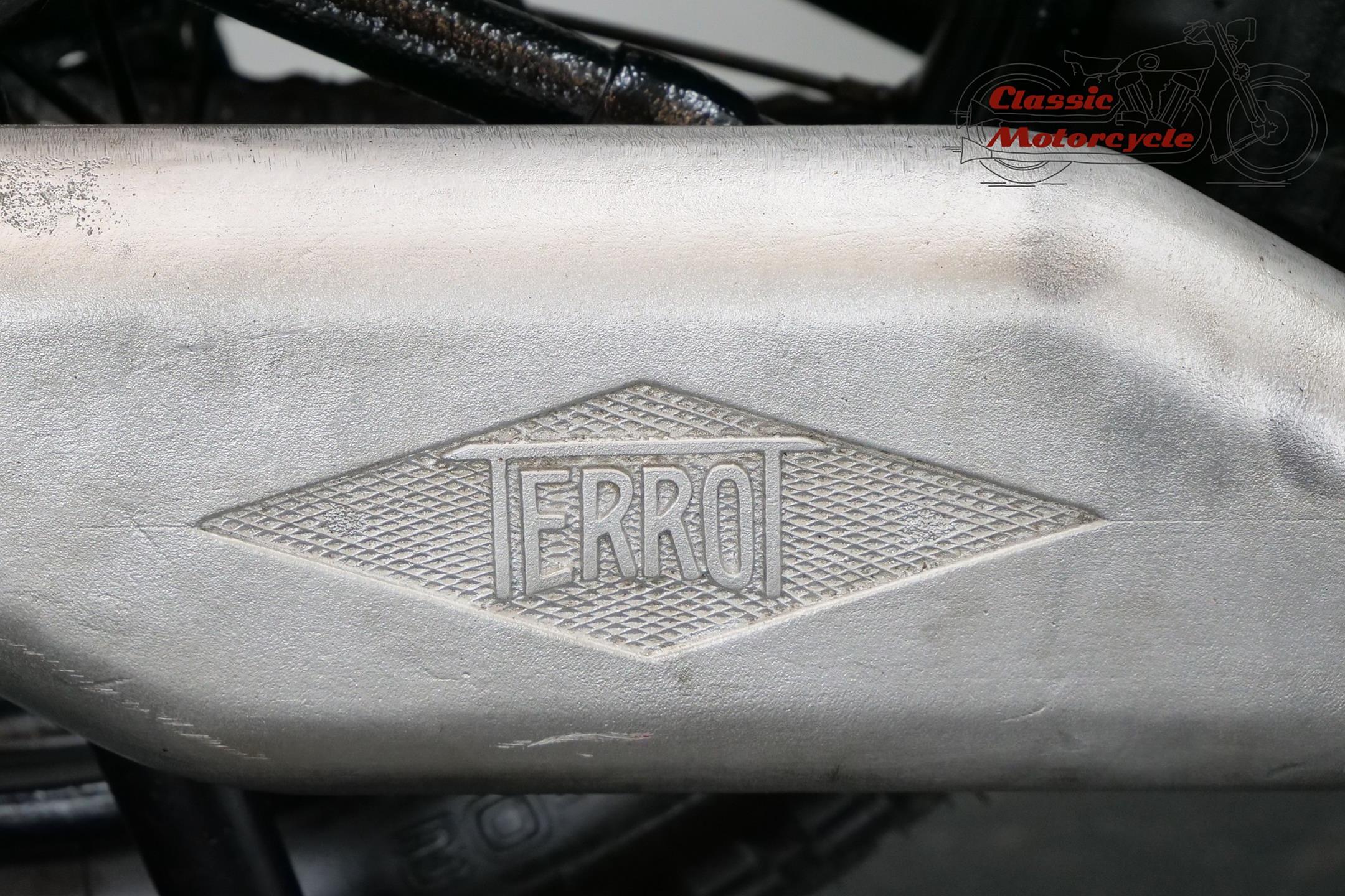 The Terrot motorcycle story was borne out of a partnership between Charles Terrot and Wilhelm Stucklen, who opened a machinery factory in Germany in 1862. By 1887 the company had expanded, opening a new factory in Dijon, France (future home of the French Grand Prix). In 1902 Terrot produced its first motorcycle at the Dijon factory and went on to produce a range of single-cylinder bikes with externally-sourced engines. A twin-cylinder bike followed in 1905, and Terrot went on to produce 500cc bikes for the French army in World War One. From 1926 Terrot added a four-stroke engine of its own design and expanded its range, with French racing championships in the early 1930s demonstrating their capabilities. After again supplying bikes for the French World War Two effort, Terrot was bought out by Peugeot in 1958. By 1961, production at the Dijon factory had been wound up. Today, the Terrot brand is remembered for forming a key part of French motorcycling history.