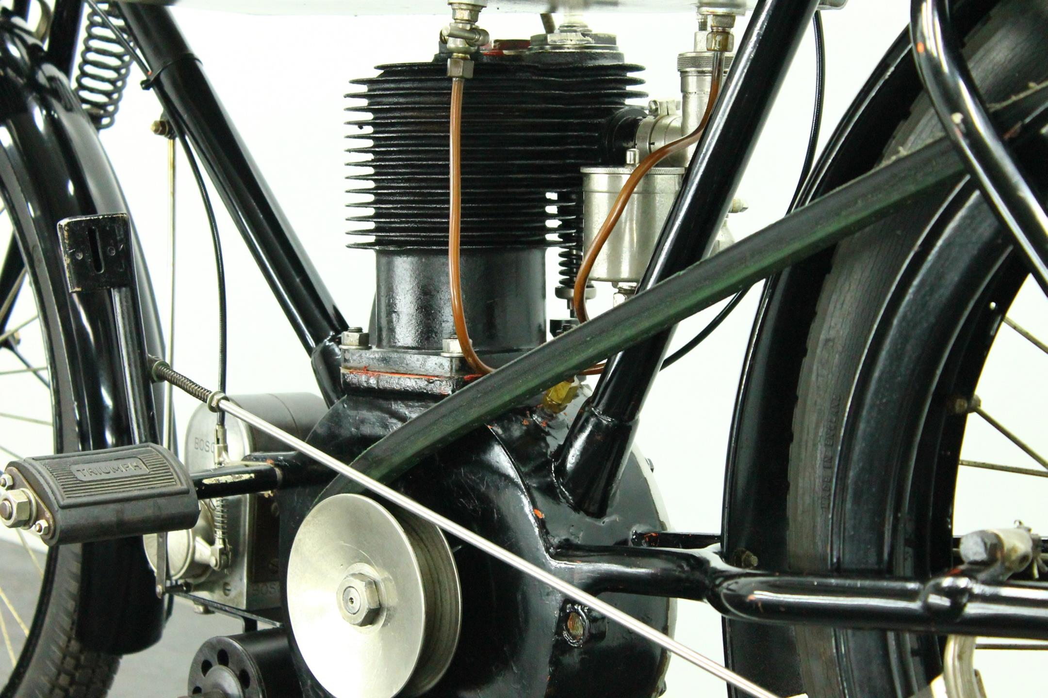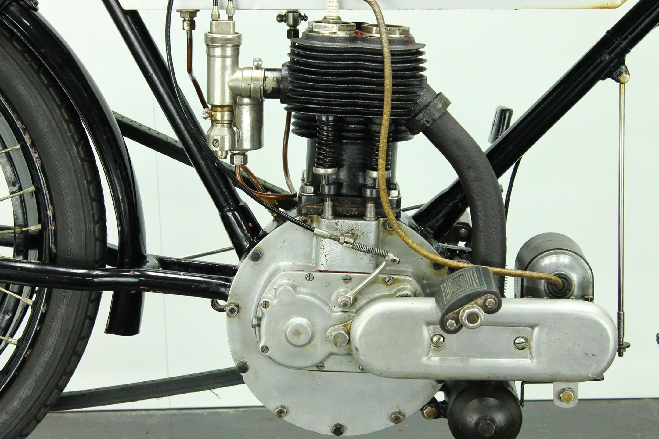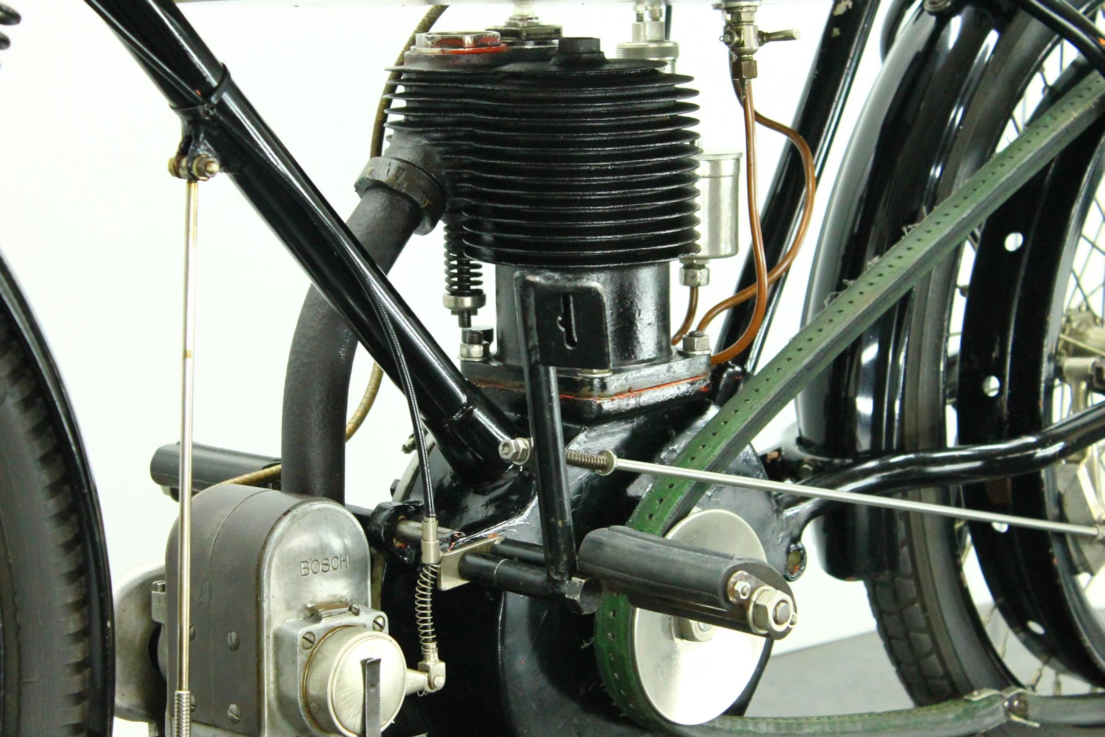 This rare and authentic survivor is fitted with a Brown and Barlow carburetor, Powell and Hanmer headlight and a Bosch magneto. It's an older restoration and a good runner.