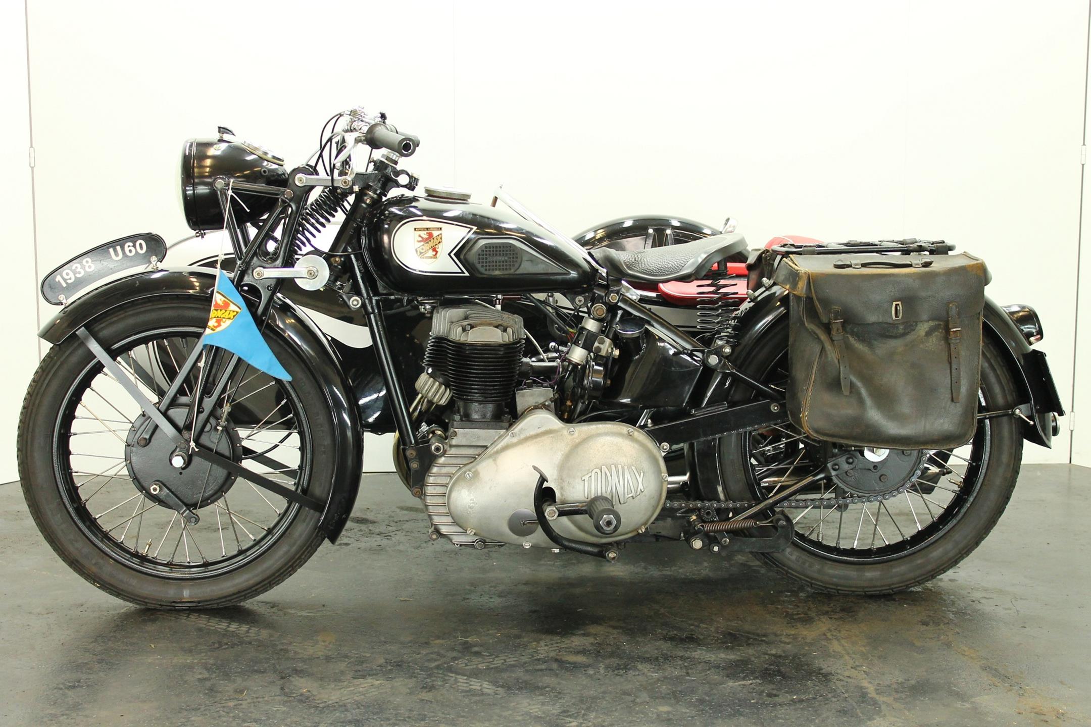 From 1934 the National Socialist government forbade the import of foreign components. Many German motorcycle builders had been using engines, gearboxes, forks or other components from English or Swisssuppliers, and it was difficult to substitute sufficient supplies from German factories quickly enough to remain in business. Some German manufacturers ceased making motorycles, but Tornax survived by reducing its range to one model, the aptly named Universal, with a 600 cc side-valve Columbus engine.