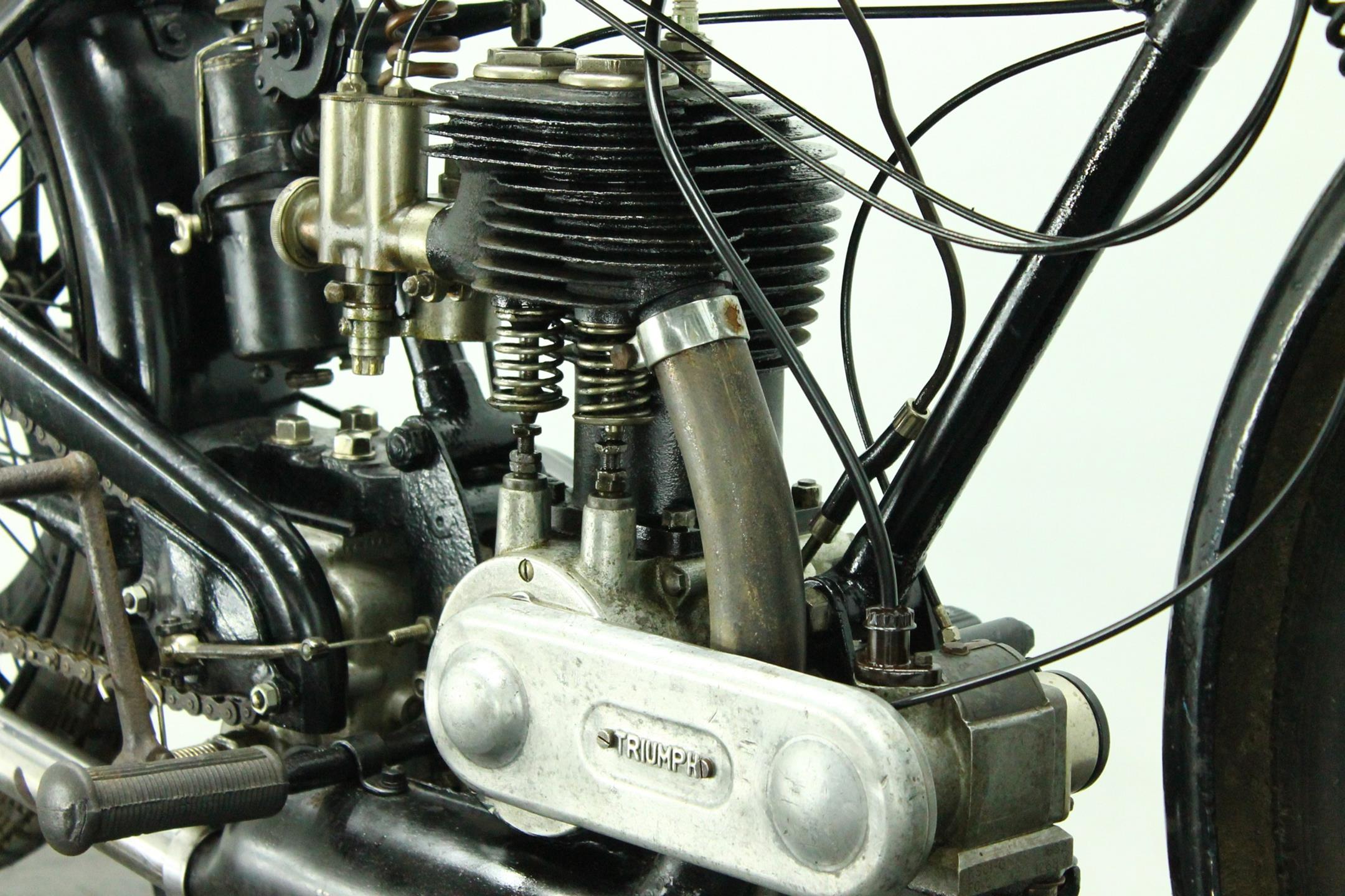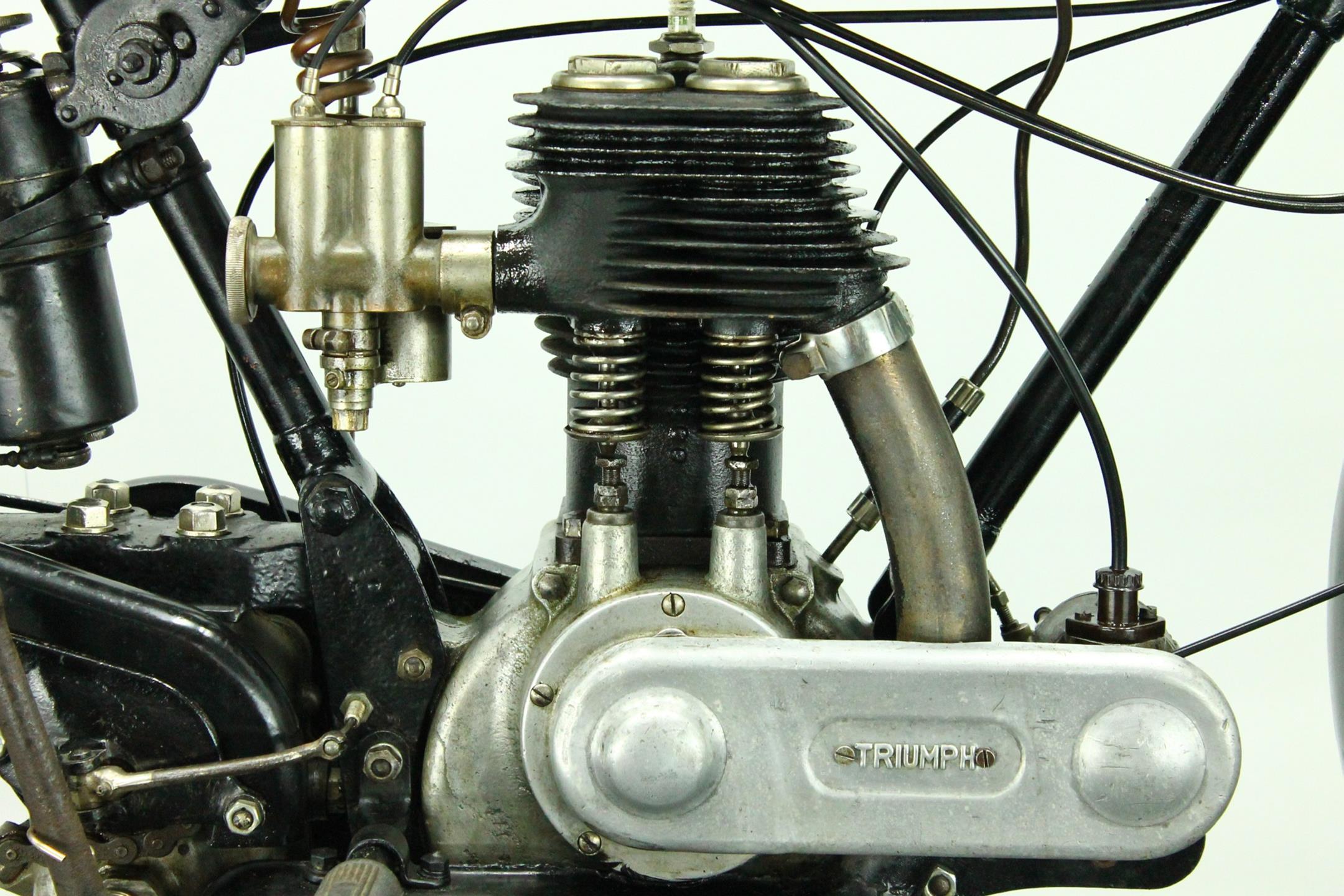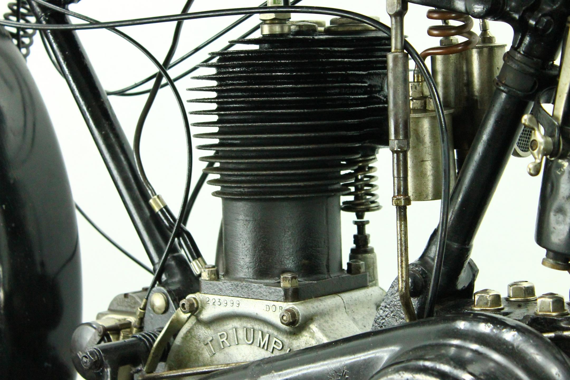 Triumph continued its existing model range after WWI, capitalising on the reputation for quality and reliability that its products had acquired while on active service. Updated with the first Triumph-made gearbox and all chain drive for 1920, the pre-war Model H became the ‘SD’ (Spring Drive), so called because of its clutch-mounted, coil-spring shock absorber, and later formed the basis of the four-valve Model R ‘Ricardo’ model, introduced in 1922. A stylish sports roadster, the top-of-the-range Ricardo was relatively expensive at £96 10s and was never going to sell in large quantities. Just over the horizon though, was a less exotic model, its basic specification notwithstanding, which would change the face of the British motorcycle industry. A landmark machine in the development of the motorcycle in Britain, Triumph’s Model P debuted at the 1924 Motor Cycle Show. A no-frills, sidevalve-engined model, the newcomer was priced at £42 17s 6d, at which level it undercut every other 500cc machine then on sale in the UK. The first batch manufactured was not without its faults, but once these had been sorted the Model P was a runaway success. Output from Triumph’s Priory Street works was soon running at an astonishing 1,000 machines per week, and the Model P’s arrival undoubtedly hastened the demise of many a minor manufacturer. Production continued until the decade’s end, by which time the Model P had spawned a number of derivatives – models N, Q and QA - and lost penny-pinching features such as its guide-less valves and bicycle-type front brake.
