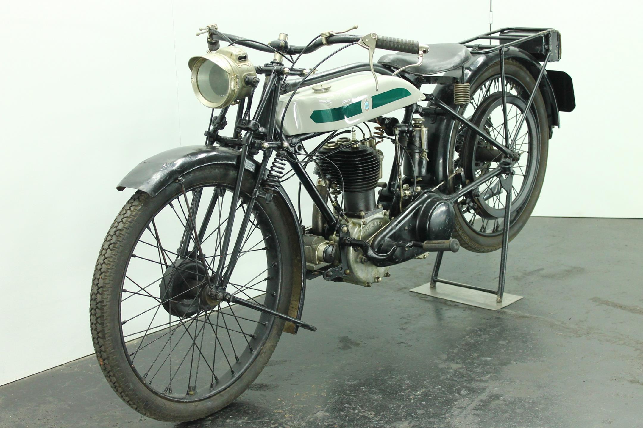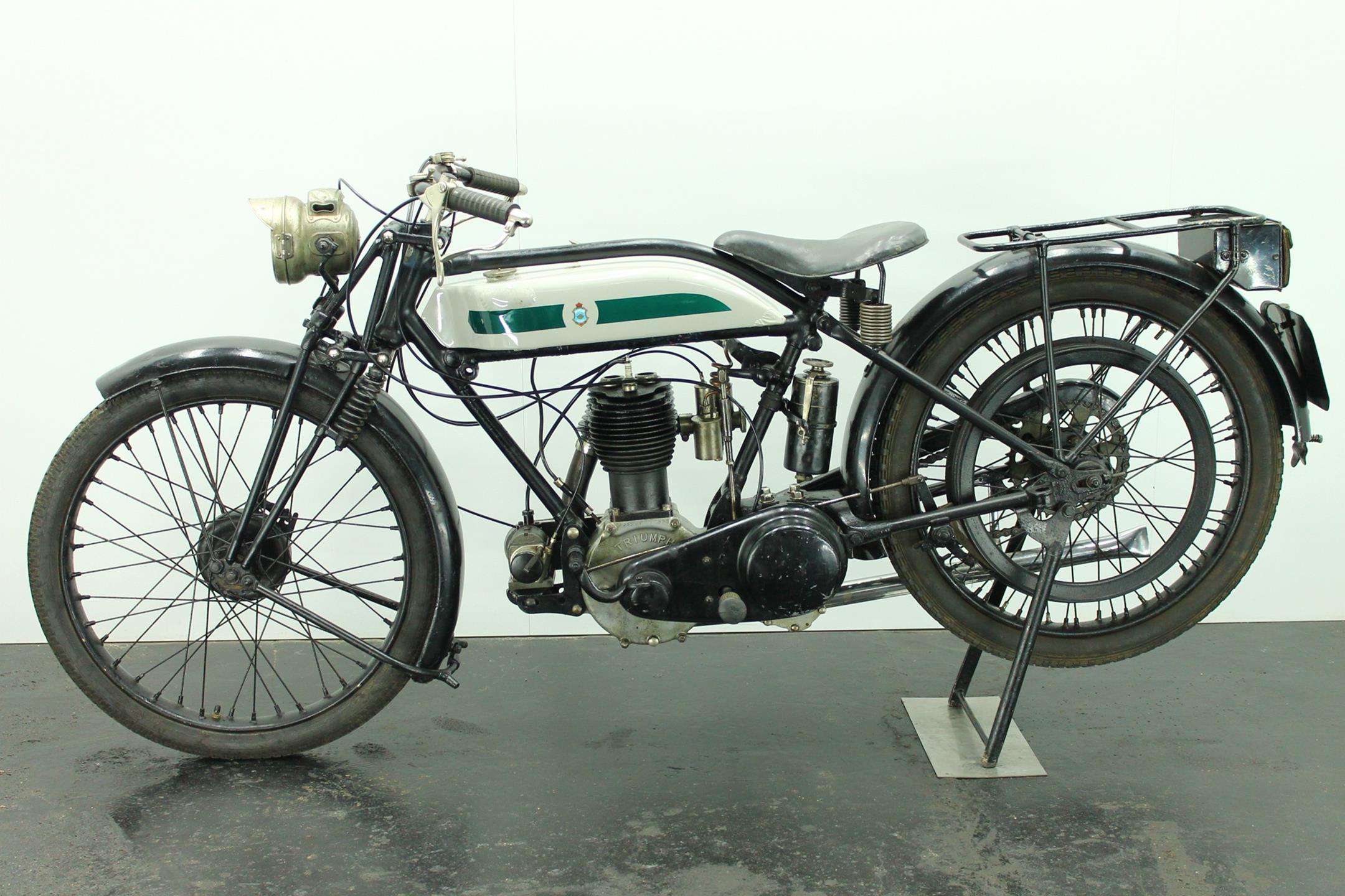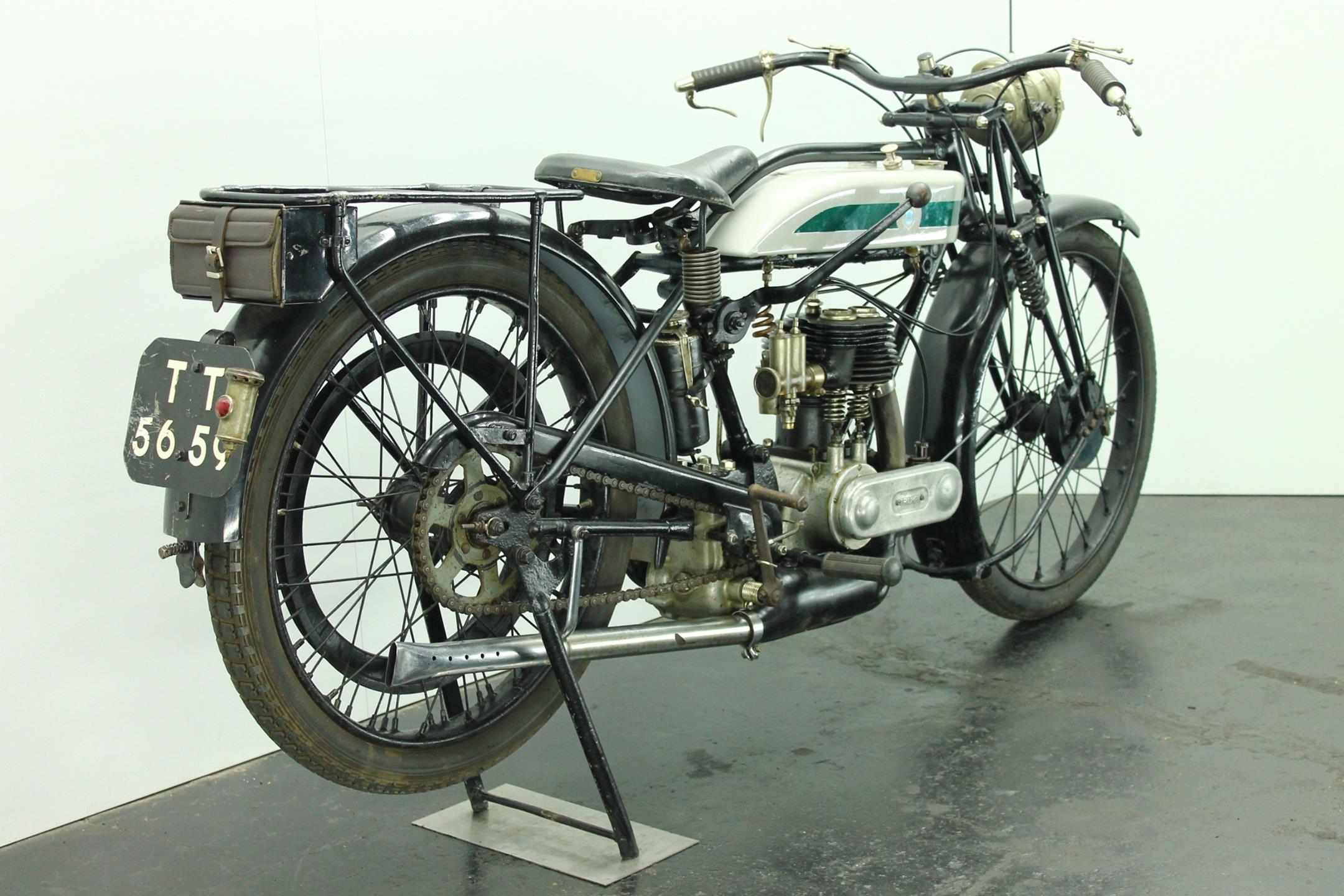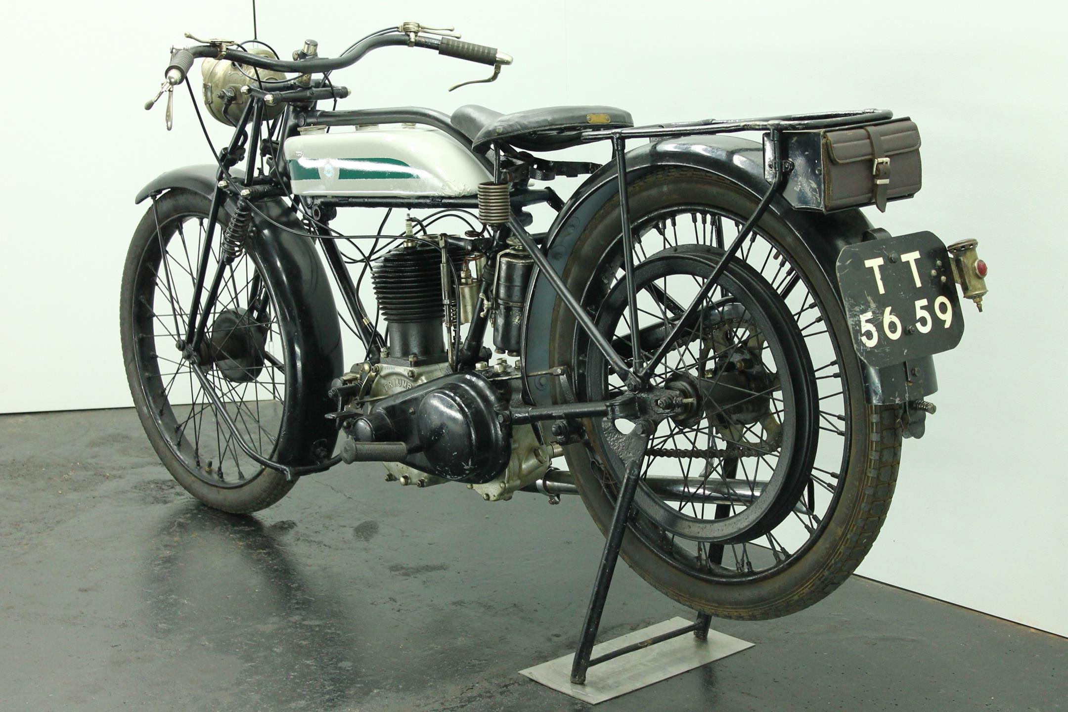 Triumph continued its existing model range after WWI, capitalising on the reputation for quality and reliability that its products had acquired while on active service. Updated with the first Triumph-made gearbox and all chain drive for 1920, the pre-war Model H became the ‘SD’ (Spring Drive), so called because of its clutch-mounted, coil-spring shock absorber, and later formed the basis of the four-valve Model R ‘Ricardo’ model, introduced in 1922. A stylish sports roadster, the top-of-the-range Ricardo was relatively expensive at £96 10s and was never going to sell in large quantities. Just over the horizon though, was a less exotic model, its basic specification notwithstanding, which would change the face of the British motorcycle industry. A landmark machine in the development of the motorcycle in Britain, Triumph’s Model P debuted at the 1924 Motor Cycle Show. A no-frills, sidevalve-engined model, the newcomer was priced at £42 17s 6d, at which level it undercut every other 500cc machine then on sale in the UK. The first batch manufactured was not without its faults, but once these had been sorted the Model P was a runaway success. Output from Triumph’s Priory Street works was soon running at an astonishing 1,000 machines per week, and the Model P’s arrival undoubtedly hastened the demise of many a minor manufacturer. Production continued until the decade’s end, by which time the Model P had spawned a number of derivatives – models N, Q and QA - and lost penny-pinching features such as its guide-less valves and bicycle-type front brake.