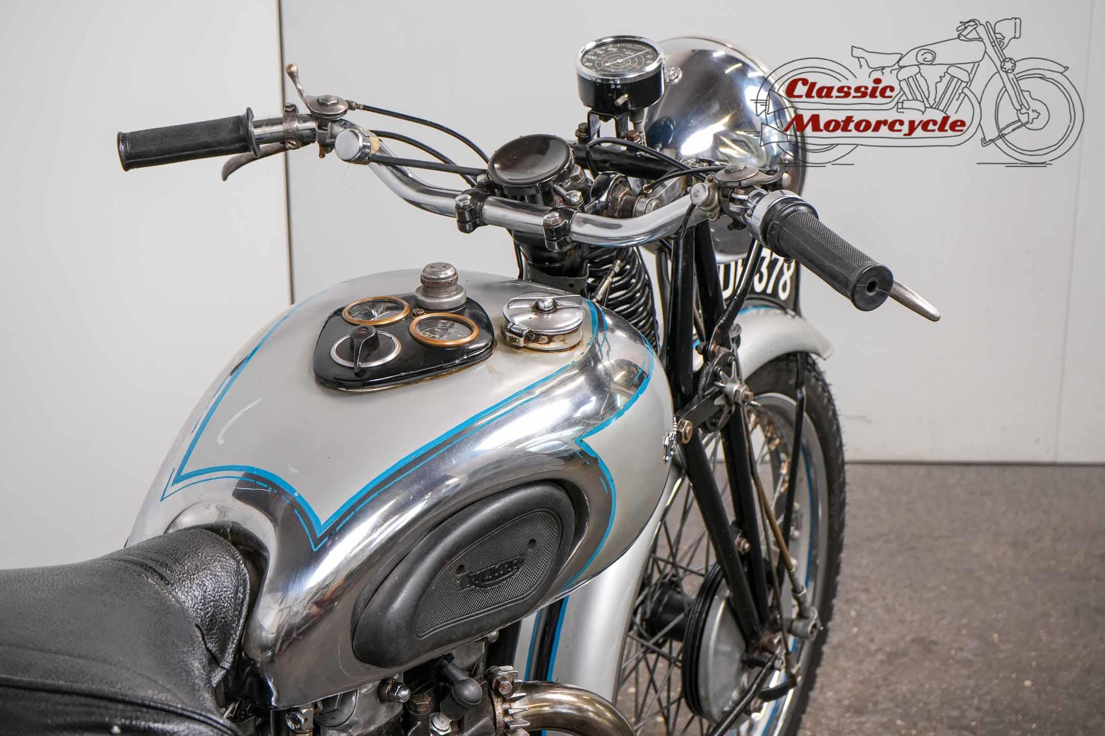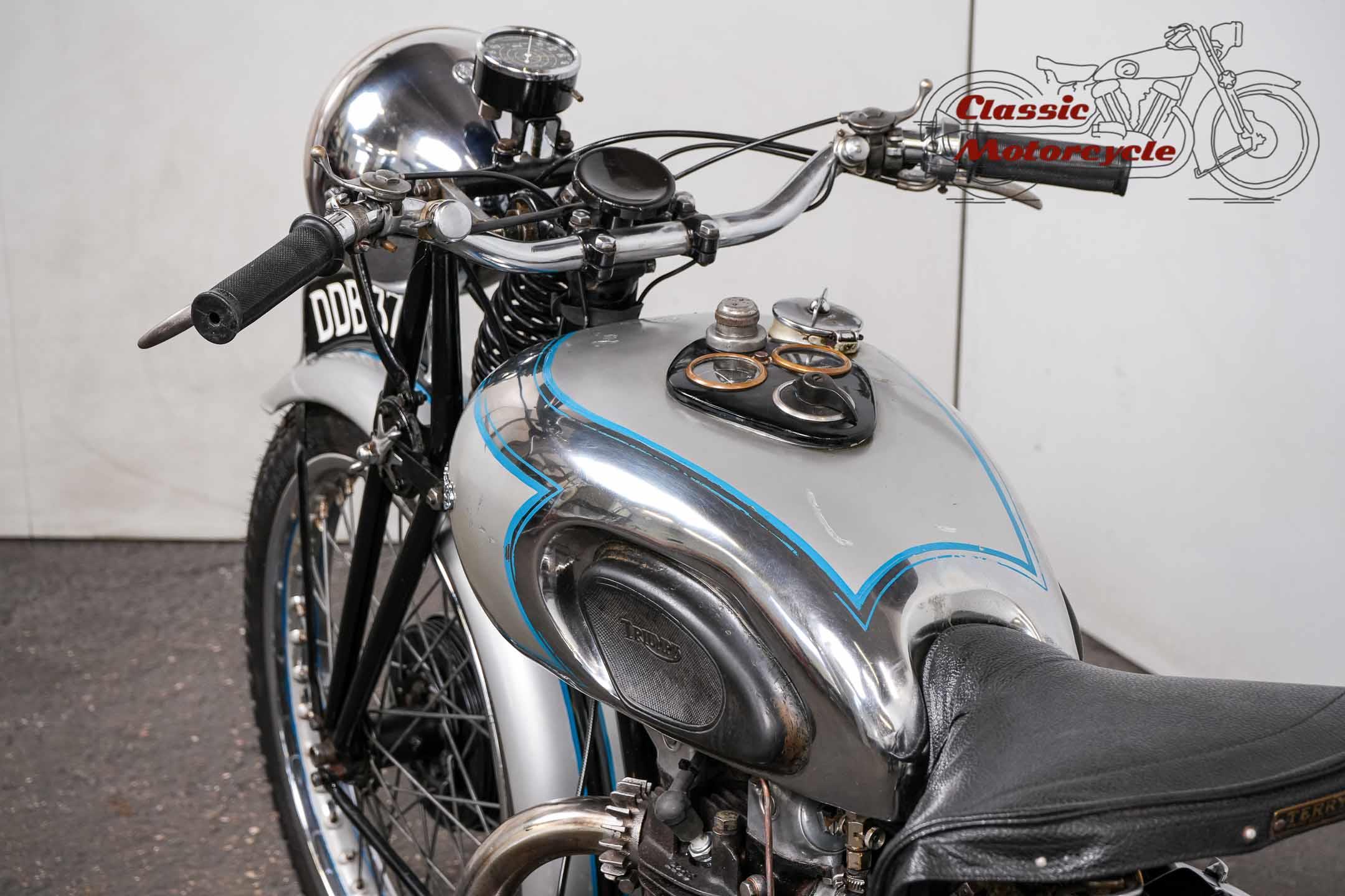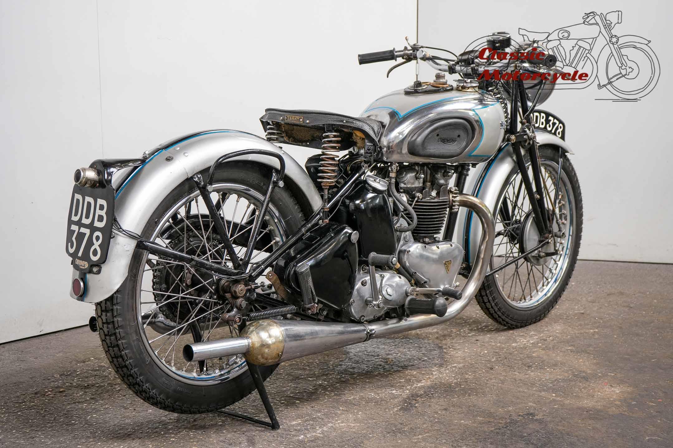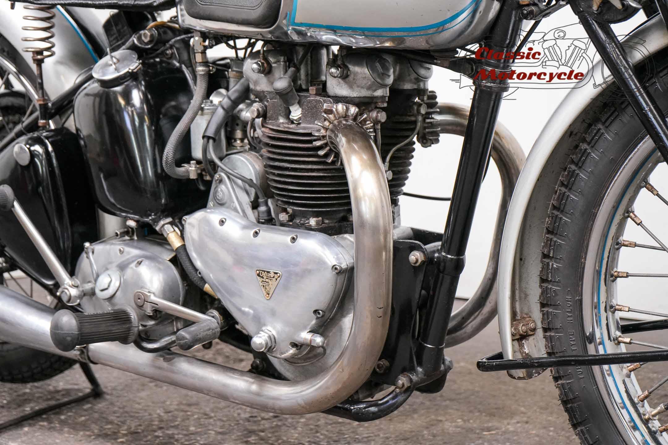 We offer here a rare Triumph T100. The T100 was the top piece for the sporty rider on the road. With its two cylinders, the engine has plenty of power and is very easy to rev. The machine was restored some time ago and is ready to ride. We hand over the Triumph with a UK registration book from 1948, UK papers from 1996 and a dating certificate.