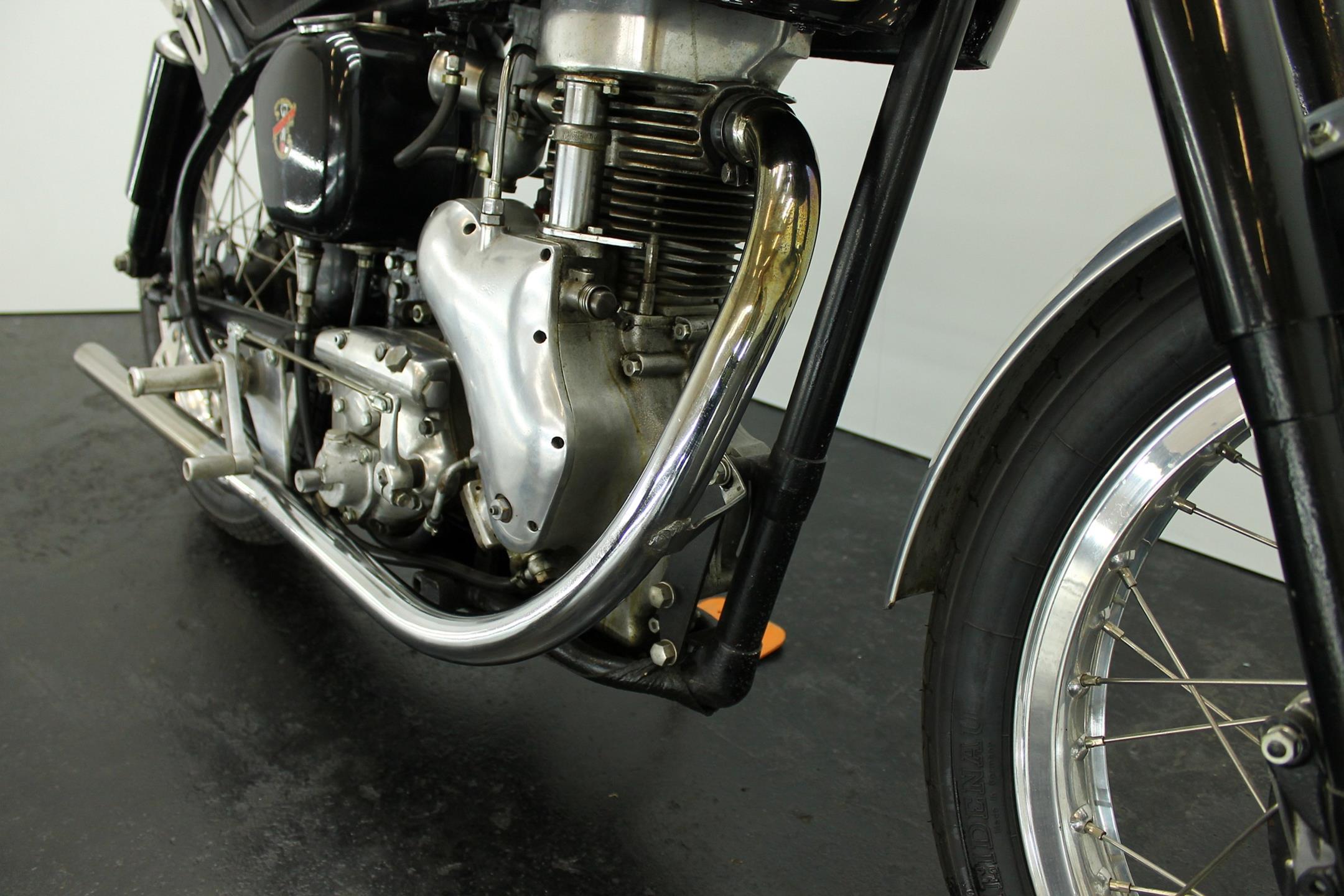 In 1933 Veloce Limited augmented its established range of overhead-camshaft models with an overhead-valve 250 - the MOV. The newcomer's power unit was a 'high camshaft' design with enclosed valves, and the compact and sprightly machine featured a four-speed gearbox equipped with the company's new foot-change mechanism. The following year an overhead-valve 350 built along MOV lines appeared. This was the long-stroke MAC, which was subsequently bored out to create the 500cc MSS. Post-war, the trio of overhead-valve Velos continued much as before, with rigid frames and - initially - Webb girder forks. The MAC gained an alloy cylinder barrel and 'head for 1951, as well as Velocette's own telescopic front fork in place of the previous Dowty, and was further updated with a swinging-arm frame in 1953.