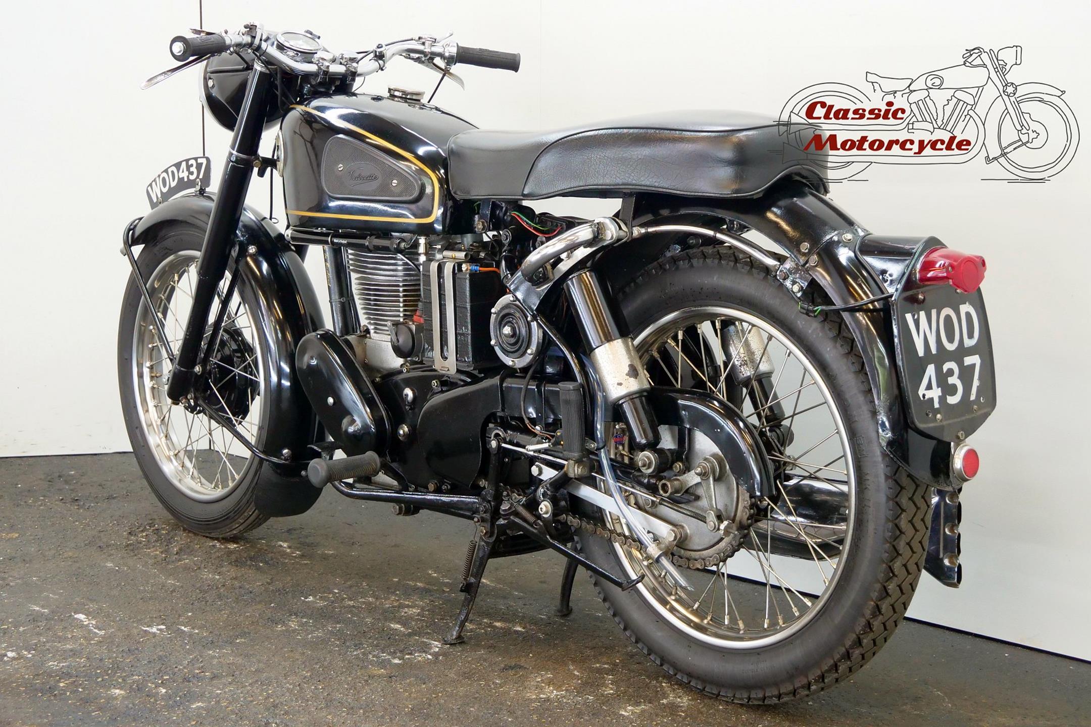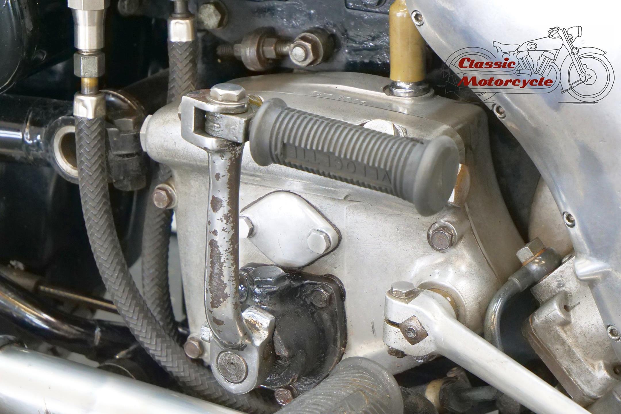The third of Velocette's overhead-valve, high-camshaft, single-cylinder designs. The MSS model was first produced in 1935, and was the third of the M-series of overhead-valve singles which included the MOV, MAC, Venom, and ultimately the Thruxton, all of which featured the high-camshaft layout. The first of these new models had been the 250cc MOV of 1933, which was joined for 1934 by a long-stroke 350cc version - the MAC. In creating the MSS, Veloce kept to the basic design, combining the MAC's 96mm stroke with a larger bore to create its new '500'. The MSS engine went into a new frame derived from that of the racing KTT. The model disappeared from Veloce Limited's range in 1948 while the company concentrated on the LE, reappearing in 1954 with a new swinging-arm frame and Hall Green's own telescopic front fork.