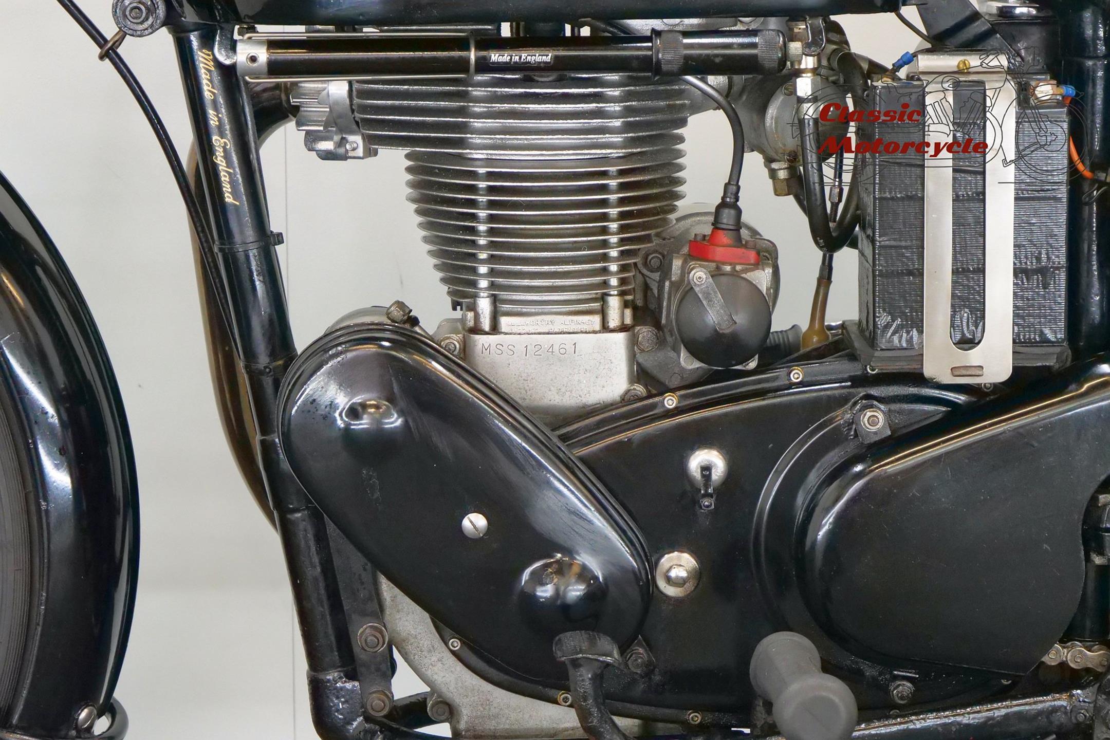 This MSS, the sporty touring bike in 500cc class is a good and reliable runner. Mechanically the motorcycle has been restored. There are innumerable bills. It is in original condition and is fitted with a Smiths speedo, Amal Monobloc carburetor and Lucas Magneto.