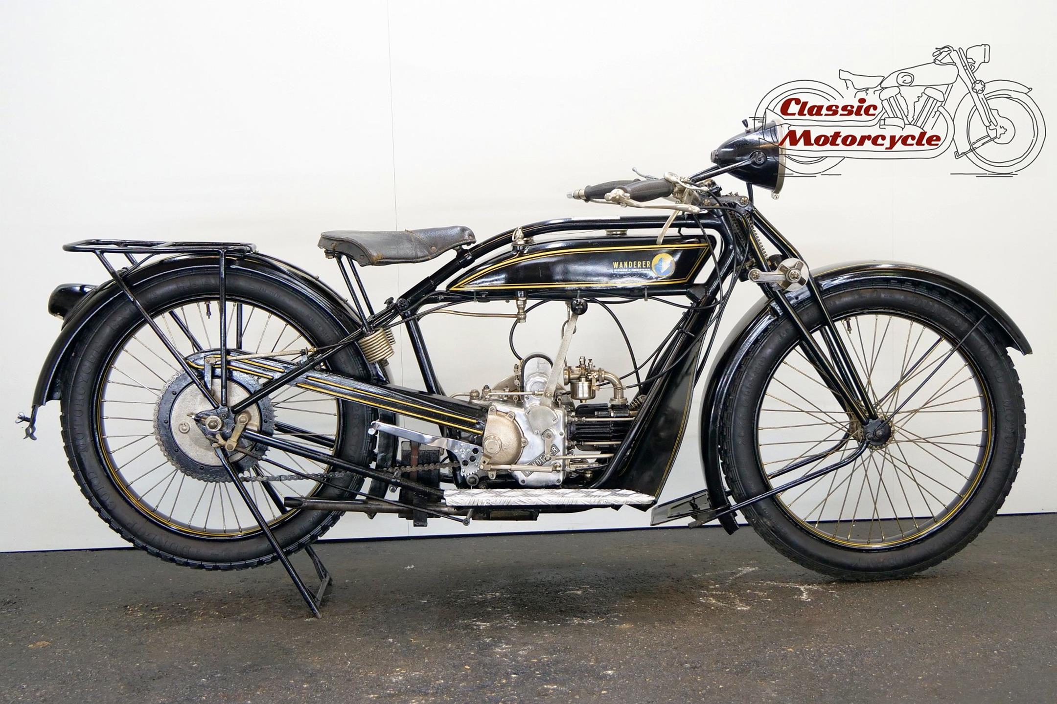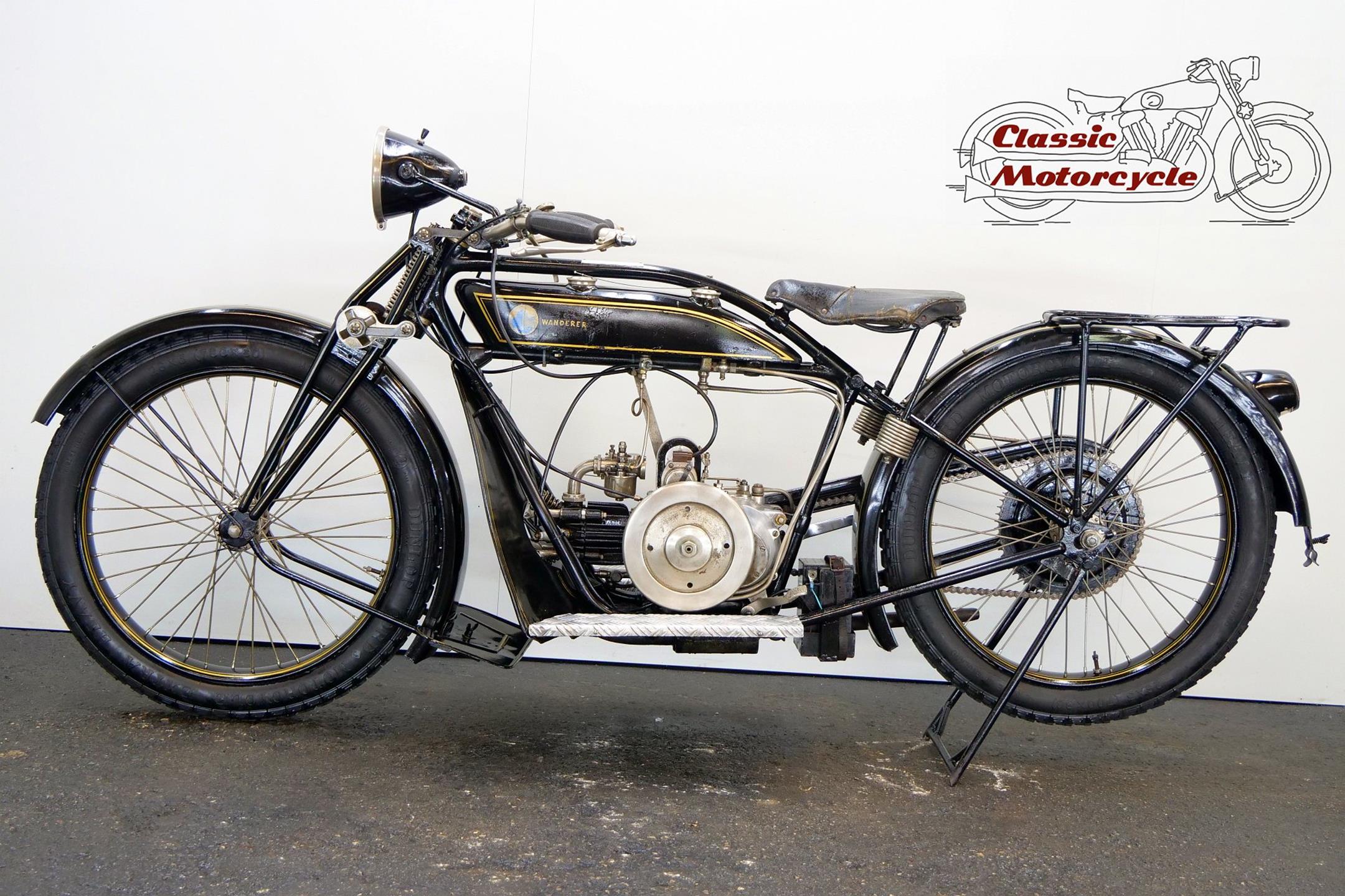 Oldest of the four companies that merged in 1932 to form the 'Auto Union' (the others being Audi, DKW and Horch) Wanderer was an established motorcycle manufacturer when it built its first automobile in 1911. 'Wanderer' was the brand name of Winkelhofer & Jaenicke, a bicycle-making firm founded in Chemnitz, Saxony around 1885 and, like those of many of its contemporaries, its first motorised two-wheeler of 1902 was merely a power-assisted cycle. By 1913 the range had expanded considerably and was topped by a 408cc v-twin. Distinguished by their wedge-shaped fuel tanks, these early Wanderer twins were of an advanced specification for their day, boasting bottom-link forks, sprung frames, two-speed hub gears, automatic lubrication and an internal expanding rear drum brake. After The Great War, a 194cc four-stroke lightweight was added to the range. This boasted overhead valves and unitary construction of the horizontal engine/gearbox, and Wanderer continued to build a range of advanced designs until the end of the 1920s when motorcycle production ceased, although a range of ultra-lightweights was produced during the 1930s.