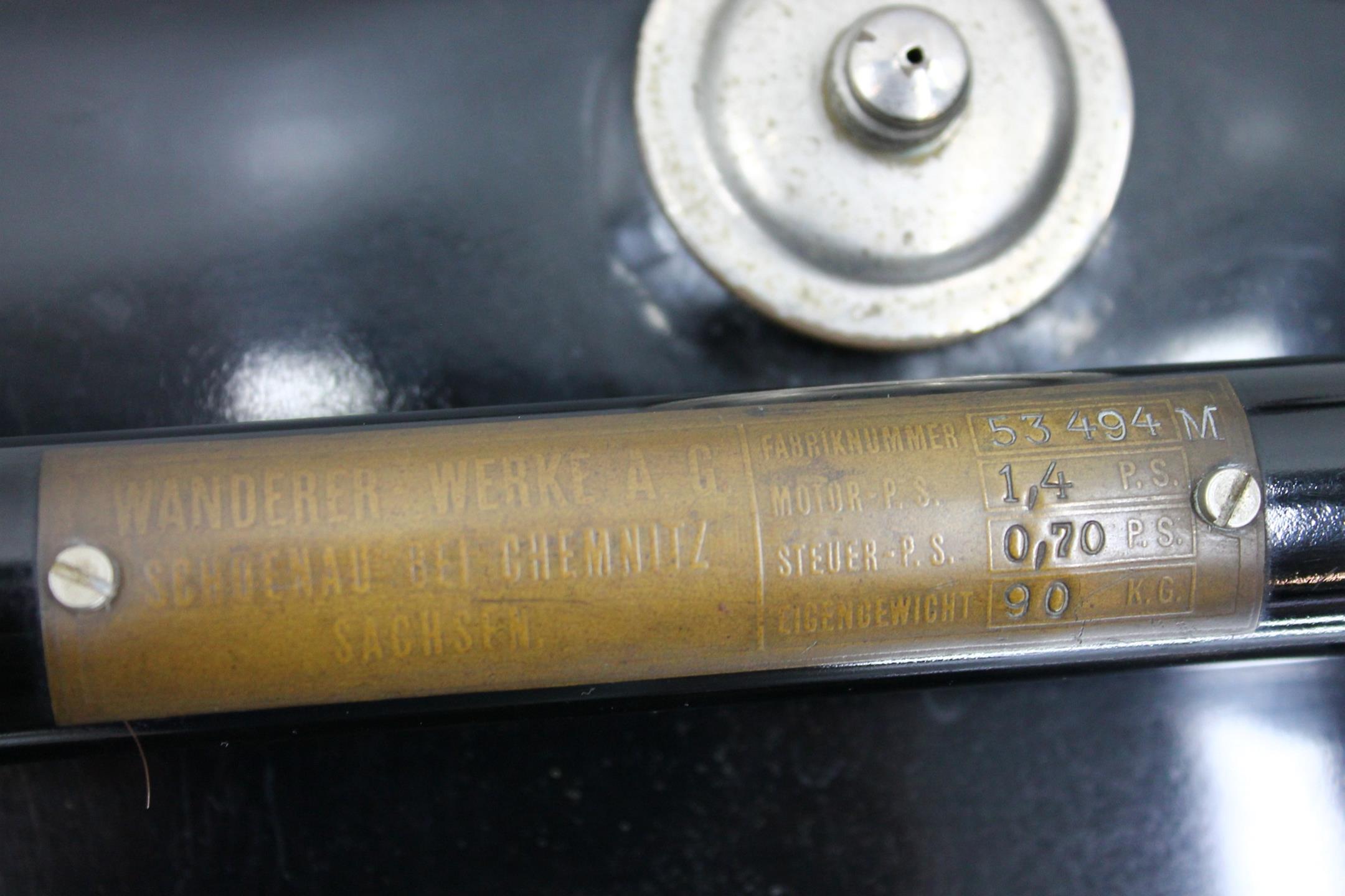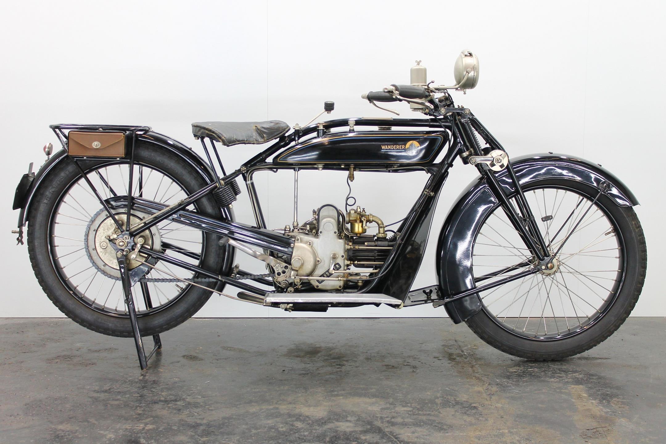 Oldest of the four companies that merged in 1932 to form the 'Auto Union' (the others being Audi, DKW and Horch) Wanderer was an established motorcycle manufacturer when it built its first automobile in 1911. 'Wanderer' was the brand name of Winkelhofer & Jaenicke, a bicycle-making firm founded in Chemnitz, Saxony around 1885 and, like those of many of its contemporaries, its first motorised two-wheeler of 1902 was merely a power-assisted cycle. By 1913 the range had expanded considerably and was topped by a 408cc v-twin. Distinguished by their wedge-shaped fuel tanks, these early Wanderer twins were of an advanced specification for their day, boasting bottom-link forks, sprung frames, two-speed hub gears, automatic lubrication and an internal expanding rear drum brake. After The Great War, a 194cc four-stroke lightweight was added to the range. This boasted overhead valves and unitary construction of the horizontal engine/gearbox, and Wanderer continued to build a range of advanced designs until the end of the 1920s when motorcycle production ceased, although a range of ultra-lightweights was produced during the 1930s.Wanderer is one of the pioneer brands of the Germany motorcycle industry.