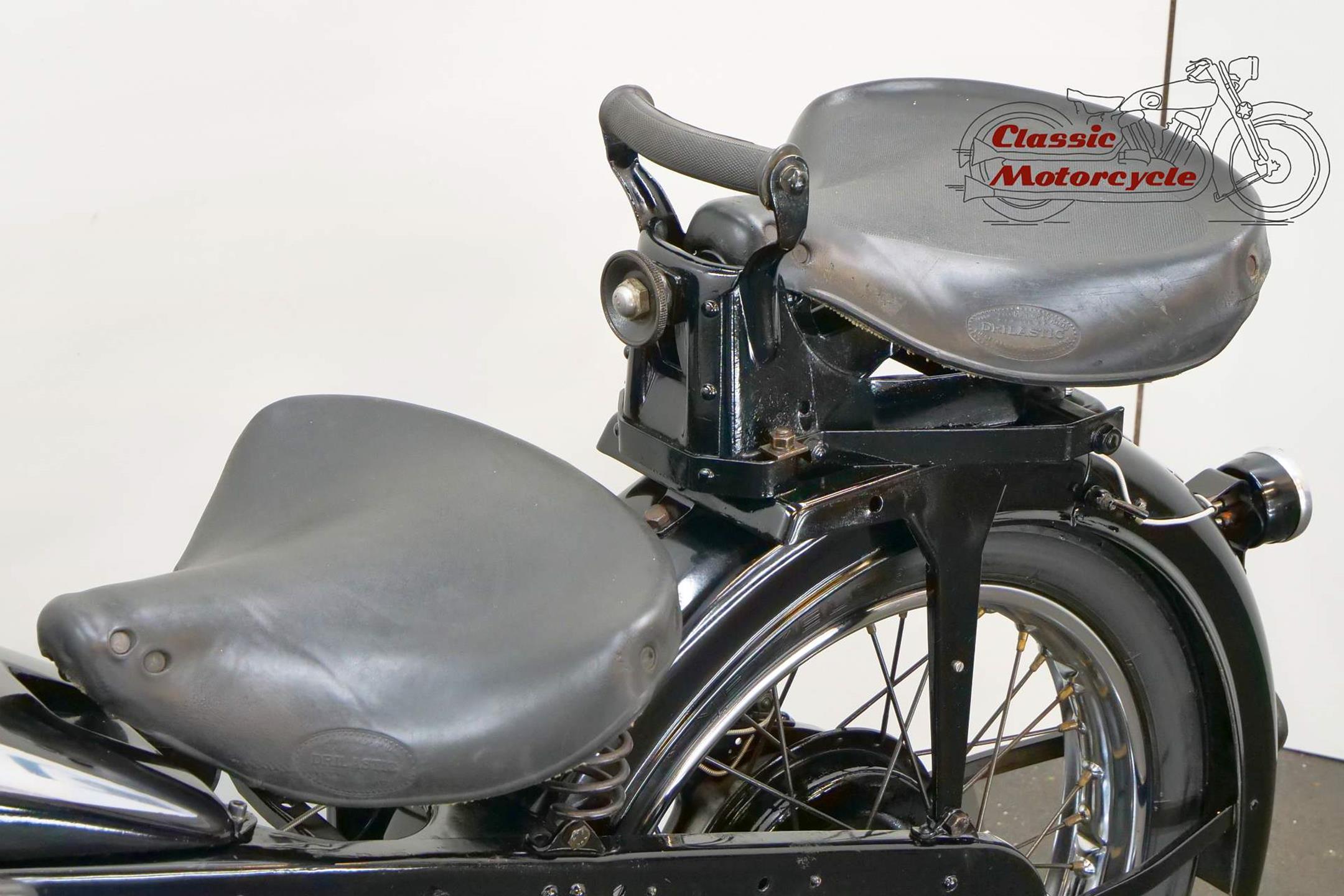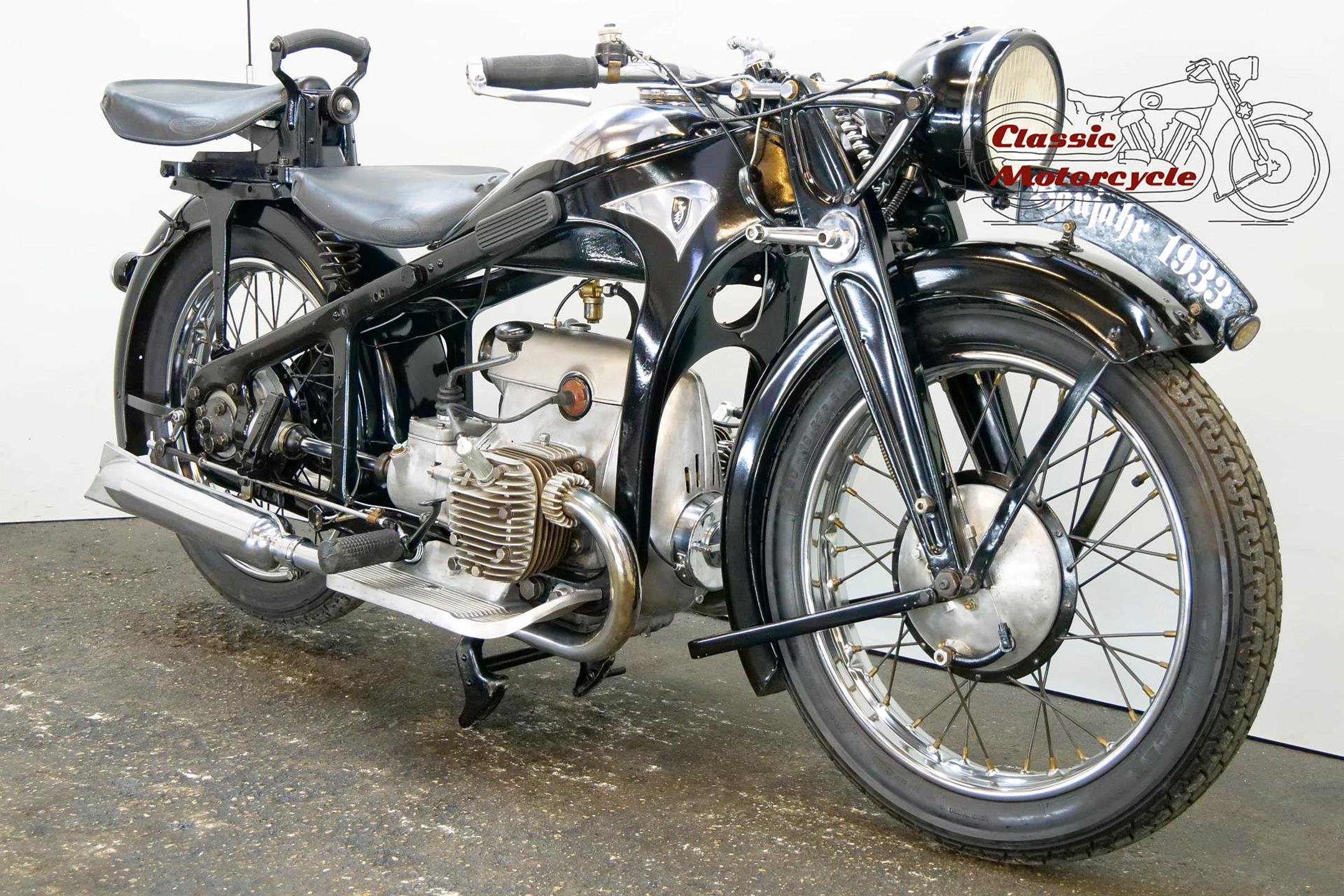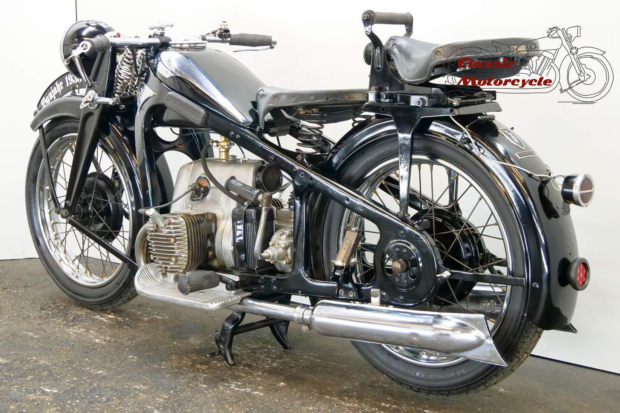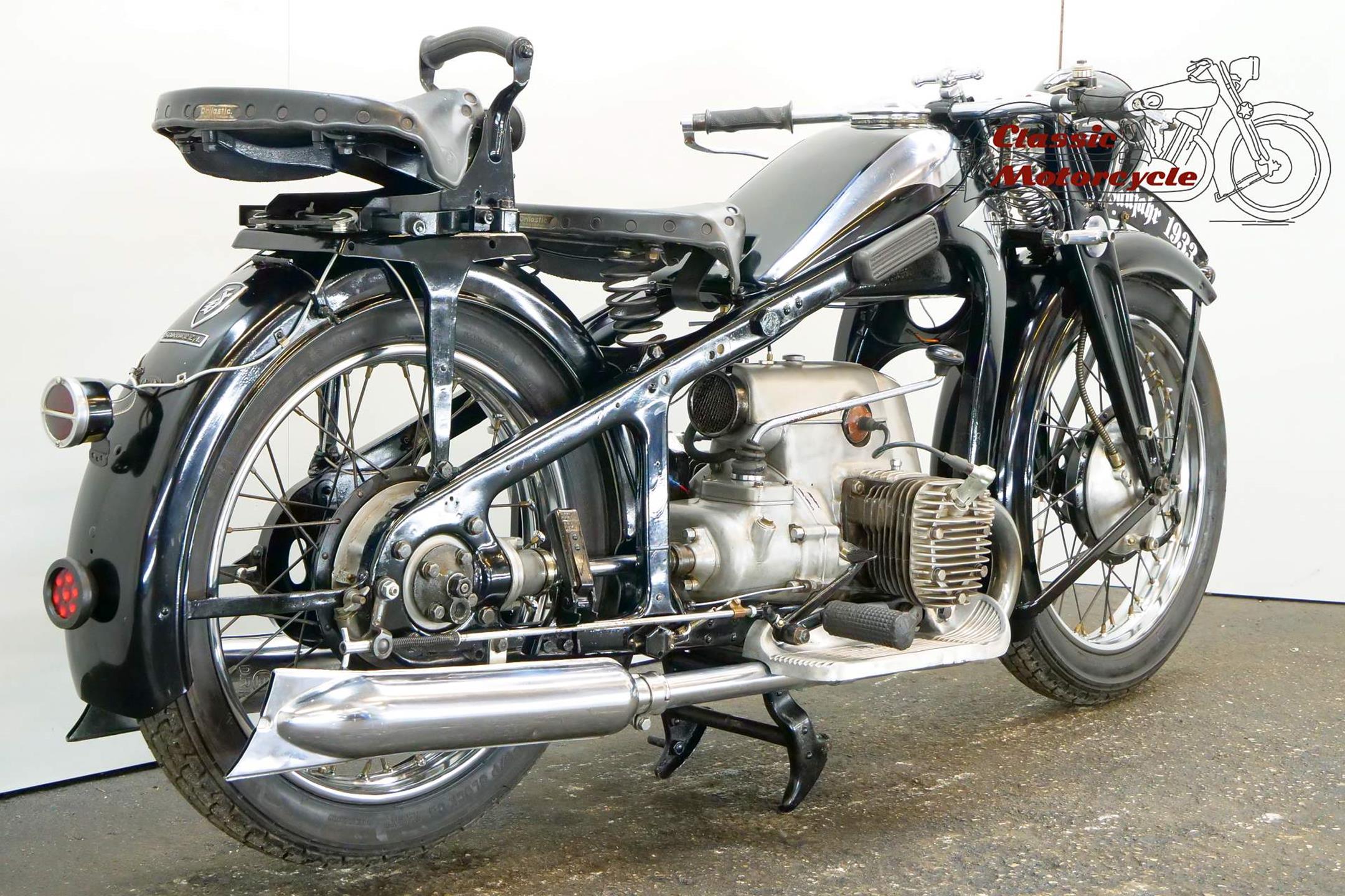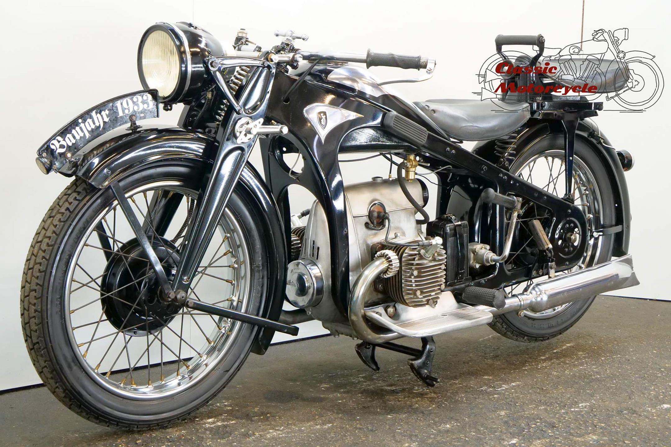 This Zündapp is the result of German engineering. It was restored years ago and is equipped with a rare Veigel speedometer and a pillion seat. It comes with the original offer from Zündapp 1933 and the original invoice from 1934. This bike has been sold from the dealer Georg Weith Thüringen, Germany to the customer Walter Becker Näherstille, Germany.