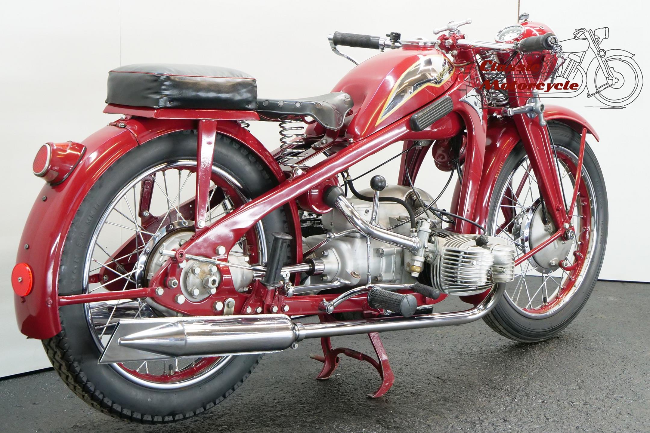 Founded at the height of WWI to manufacture armaments, Zündapp found a new role post-war as a producer of motorcycles under the direction of new owner, Dr Fritz Neumeyer, building its first machine, a Levis-powered two-stroke, in 1921. The firm began making its own engines in 1924, selling more than 10,000 machines that year, and in 1933 introduced the first of the four-stroke flat twins that it is best remembered for. The initial 398cc and 496cc sidevalve models were followed in 1936 by the overhead-valve KS 500 which, like its predecessors, employed designer Richard Küchen’s unconventional all-chain four-speed ‘gearbox’ and shaft final drive. Common to the larger models and eminently suited to withstanding the stresses and strains imposed by travel on unmade roads, the robust frame and girder forks were made of pressed steel, an advanced feature at the time. The KKS 500 was the sport version of the KS 500. The KKS was lighter and gets more top speed than the KS 500. Many private racing enthusiasts used the KSS500.