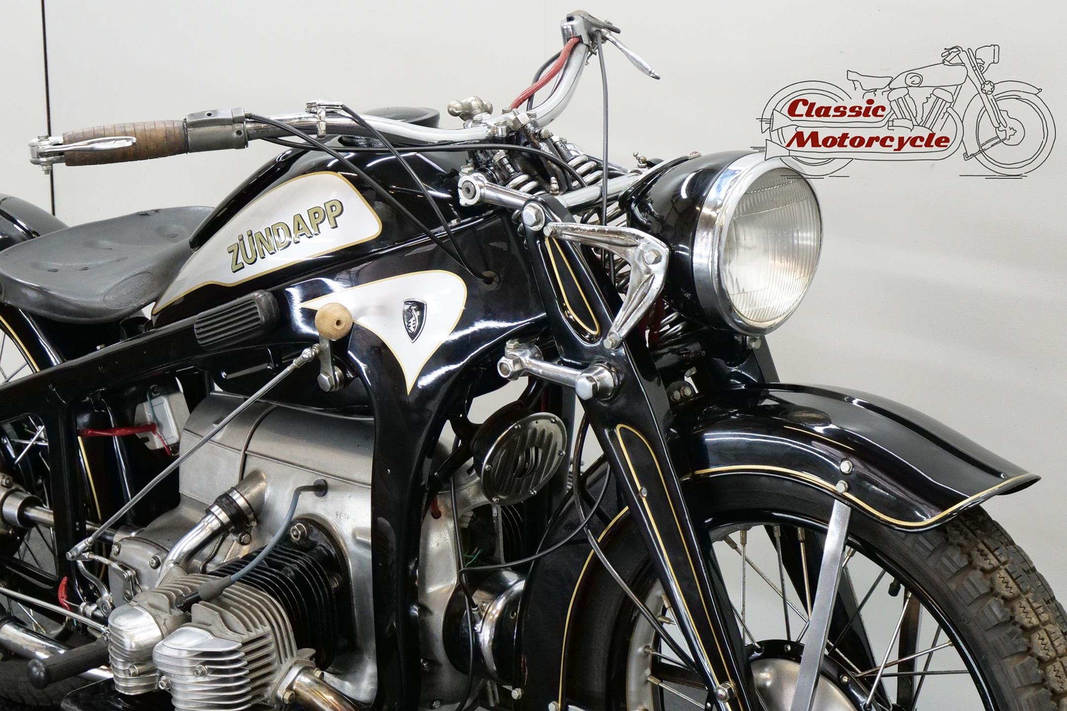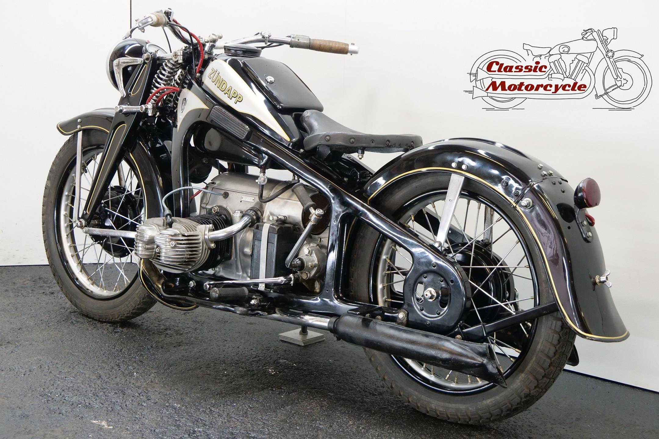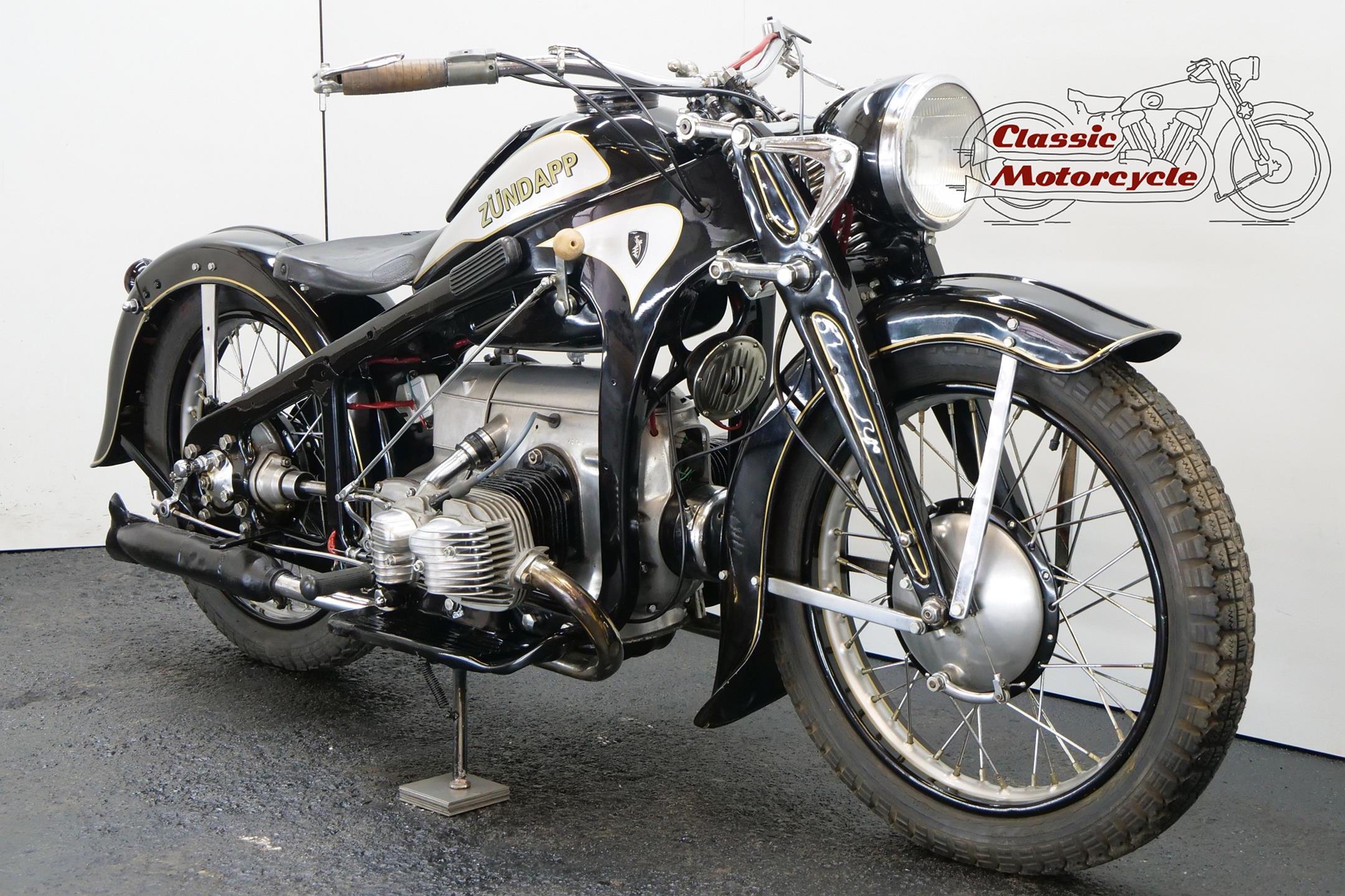 Founded at the height of WWI to manufacture armaments, Zündapp found a new role post-war as a producer of motorcycles under the direction of new owner, Dr Fritz Neumeyer, building its first machine, a Levis-powered two-stroke, in 1921. The firm began making its own engines in 1924, selling more than 10,000 machines that year, and at the Berlin Motor Show in 1933 introduced the first of the horizontally opposed, four-stroke twins that it is best remembered for. These formed part of an extensive and diverse range of models, all but the smallest two-stroke being designated by the letter 'K' (for kardan, meaning 'shaft'). Among the models premiered were the K400 and K500 sidevalve twins, both of which employed designer Richard Küchen's unconventional all-chain four-speed 'gearbox' and, as the designation suggests, shaft final drive. Introduced at the same time was another Küchen design: a horizontally opposed four made in 598cc (K600) and 798cc (K800) capacities. Common to all the larger models and eminently suited to withstanding the stresses and strains imposed by travel on unmade roads, the robust frame and girder forks were made of pressed steel, an advanced feature at the time. The new Zündapp range was an enormous success, and in September 1933 the firm produced its 100,000th machine, quite an achievement after little more than a decade as a motorcycle manufacturer. Immediately prior to the outbreak of war in September 1939, Zündapp introduced an overhead-valve twin, the KS600. The latter's 597cc engine produced 28ps, and like the rest of the larger Zündapps the KS600 featured the chain-drive 'gearbox', shaft drive, and the pressed steel frame and forks.
