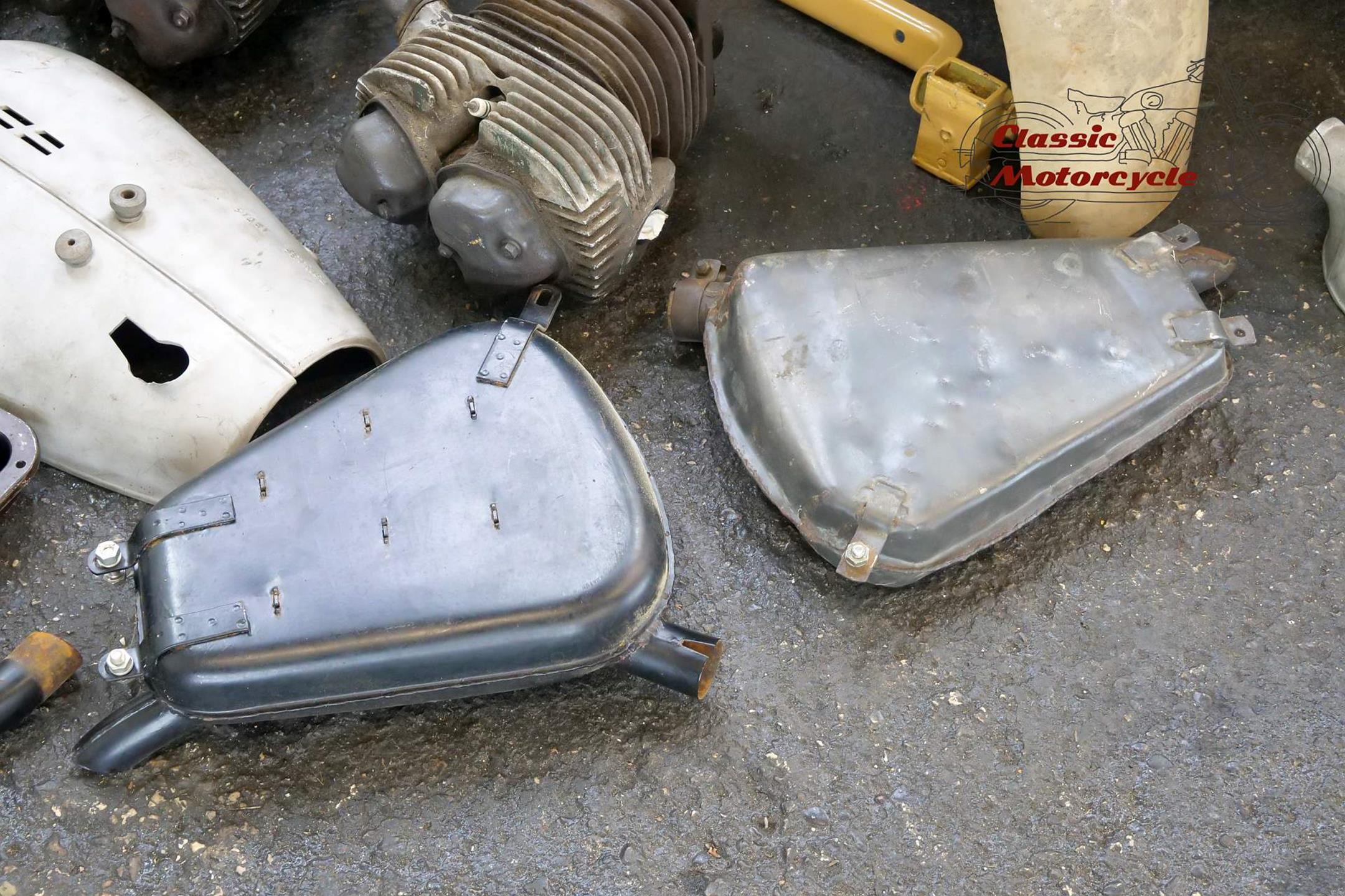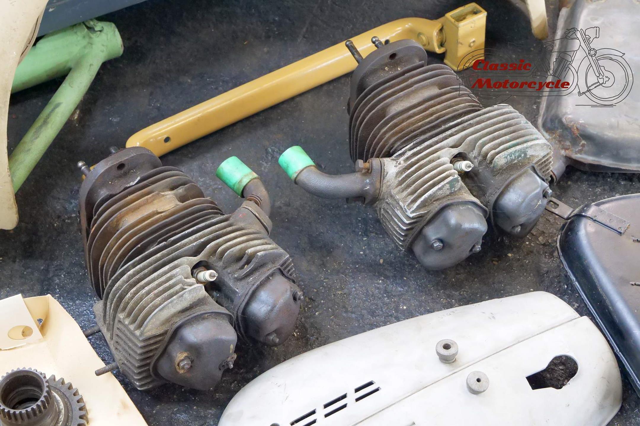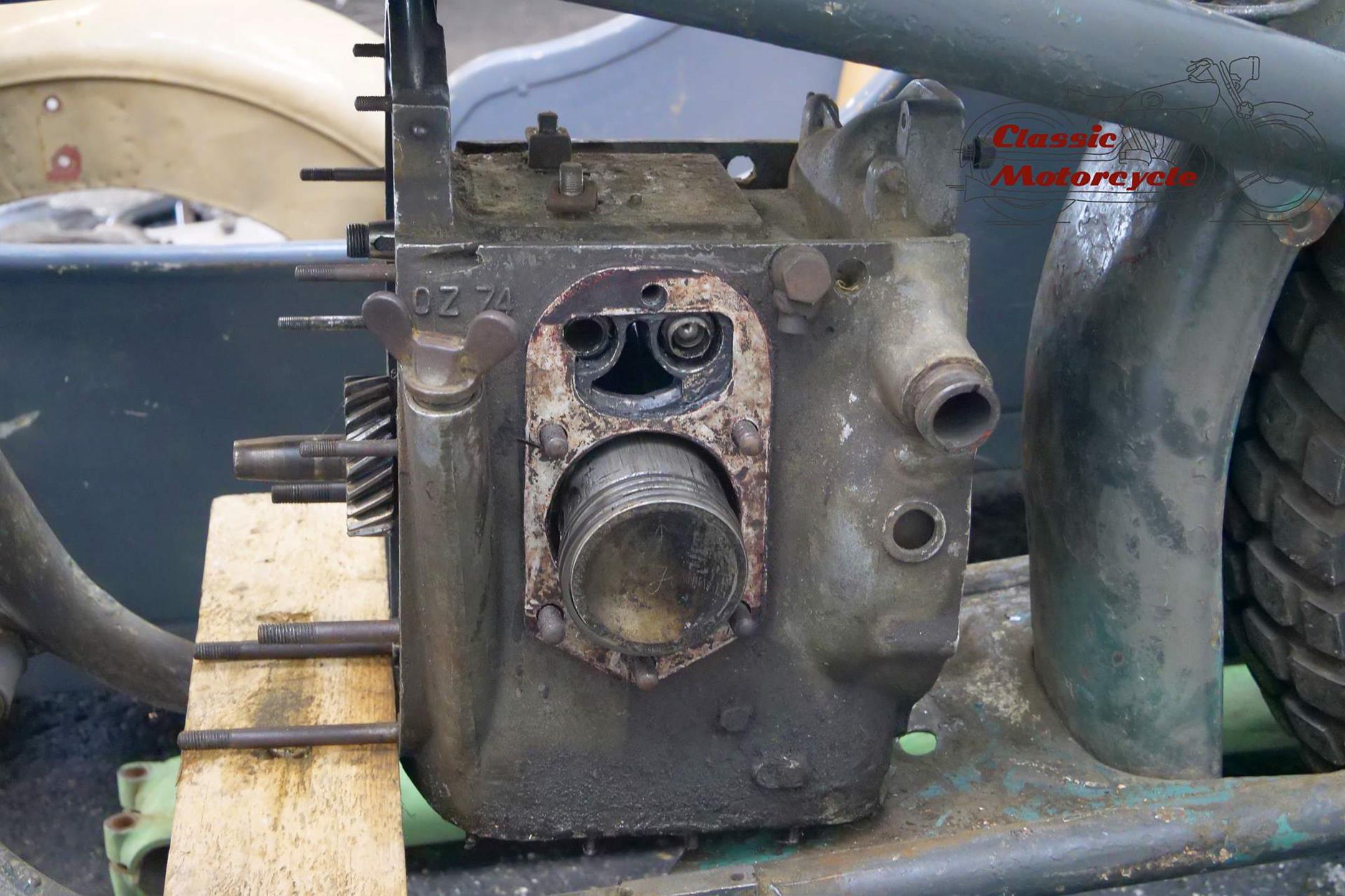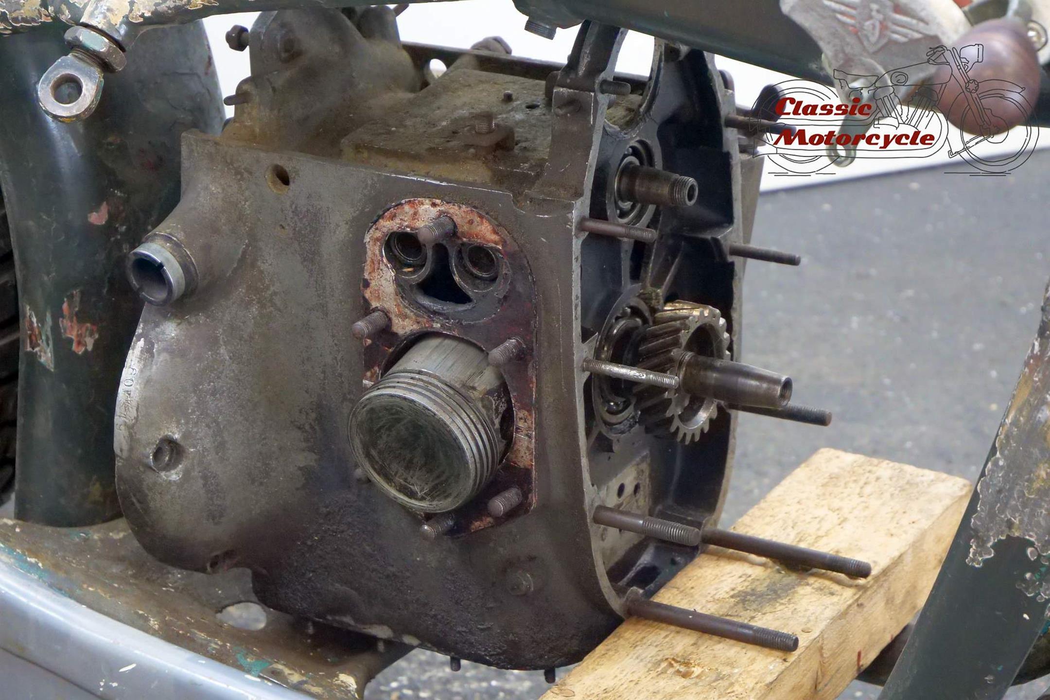 This bike has been bought from the previous owner 10 years ago as an overpainted running project. Some of the parts has been dismantled and were and stored in a dry place. The big surprise: the original paint it visible under the gray paint. We think the original paint can be rescued with careful removal of the gray paint. The Special part is the Neumann cyclone air filter with air pre-warming. All major parts are present with this bike including the original type plate. It is a rewarding project with a look at the strong raising market prices of the Wehrmacht Zündapp KS 750.