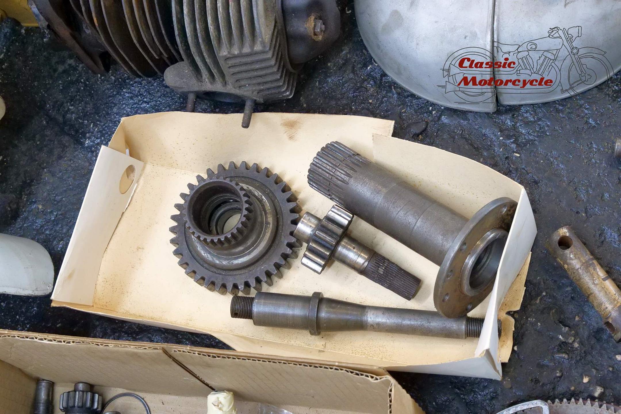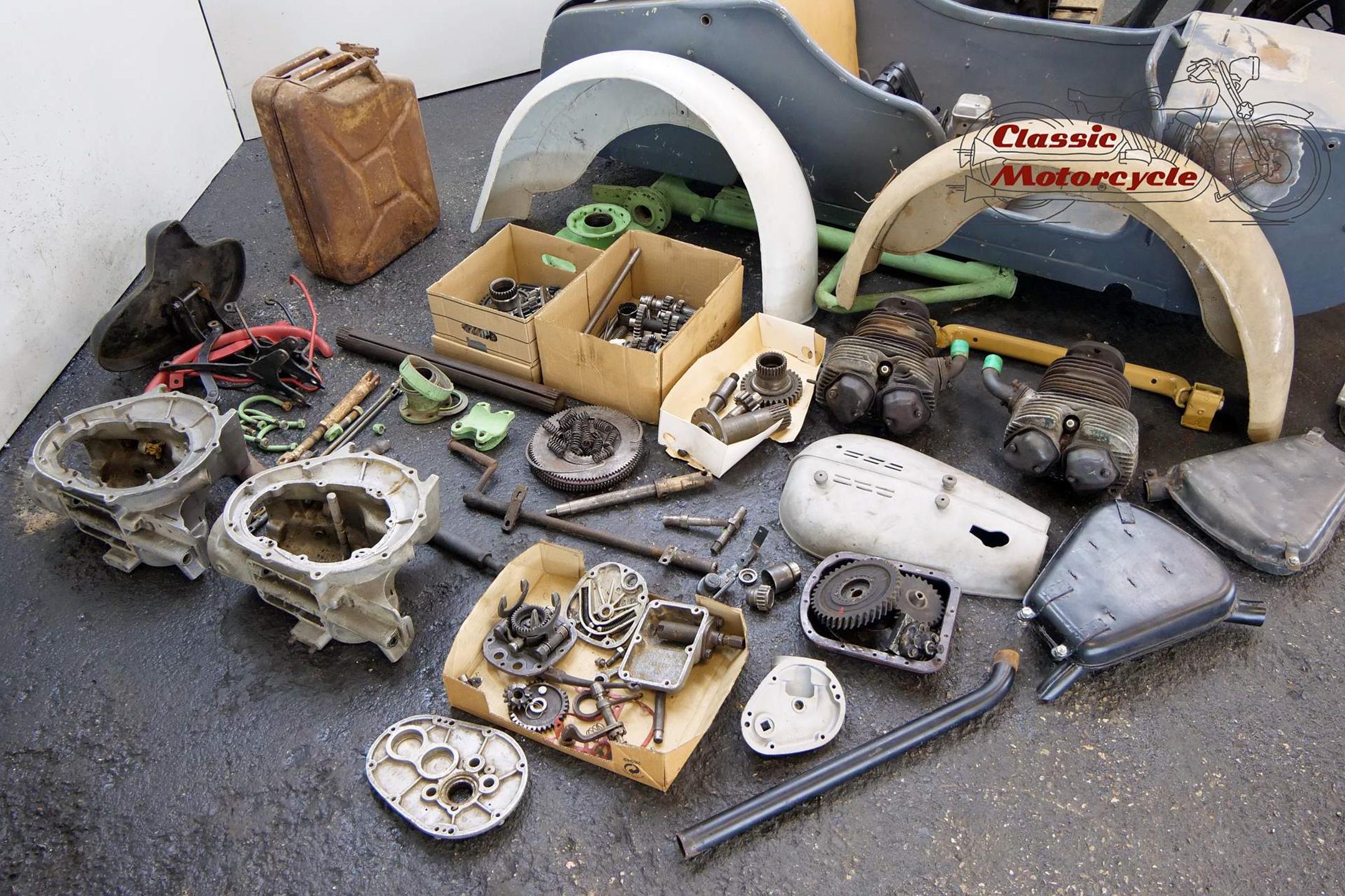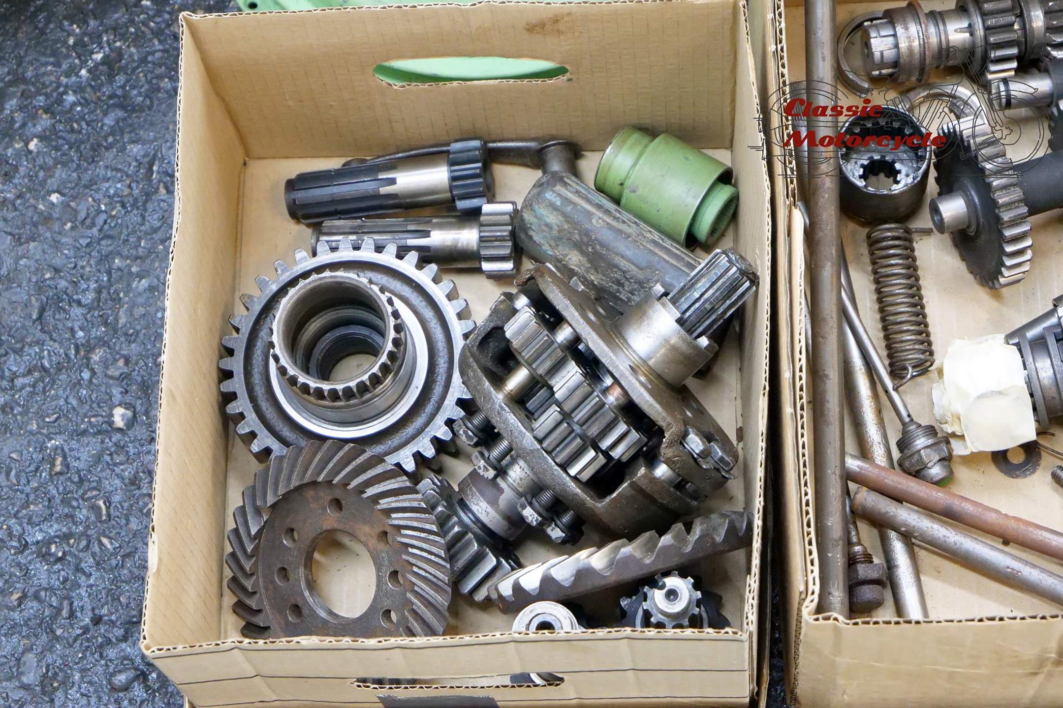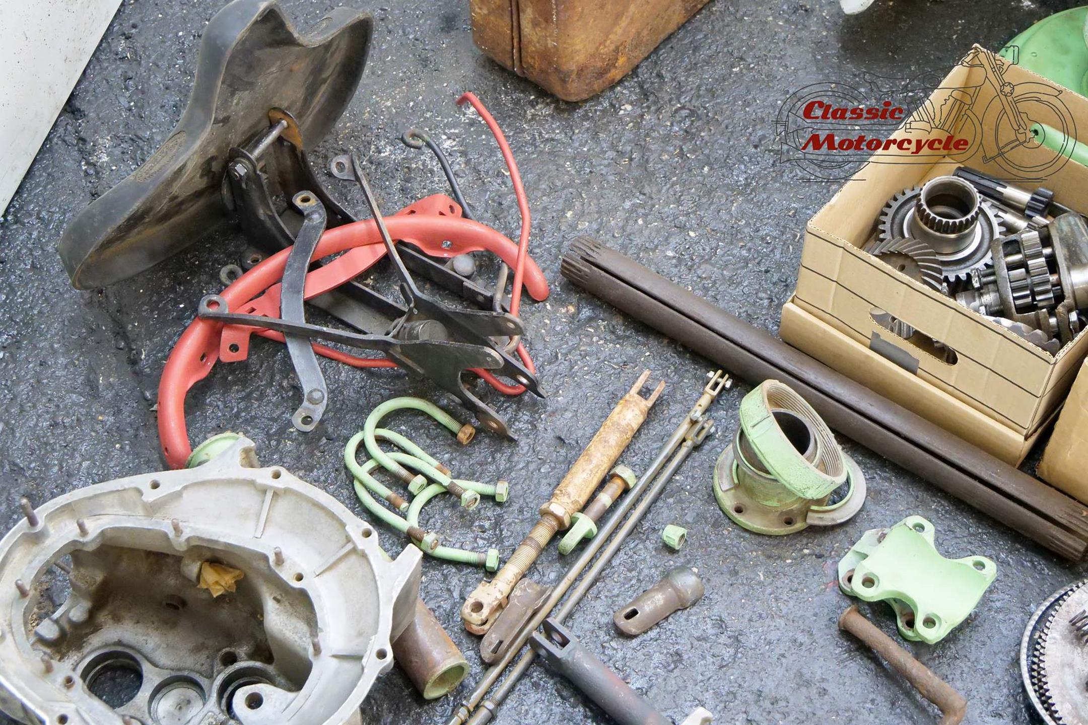 This bike has been bought from the previous owner 10 years ago as an overpainted running project. Some of the parts has been dismantled and were and stored in a dry place. The big surprise: the original paint it visible under the gray paint. We think the original paint can be rescued with careful removal of the gray paint. The Special part is the Neumann cyclone air filter with air pre-warming. All major parts are present with this bike including the original type plate. It is a rewarding project with a look at the strong raising market prices of the Wehrmacht Zündapp KS 750.
