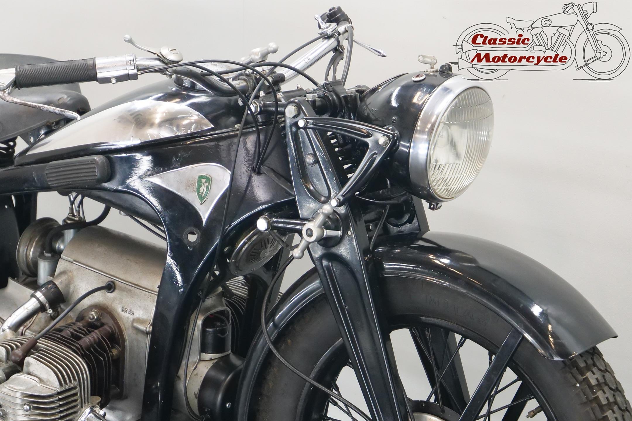 She needs some electrical attention and is equipped with a Bing carburetor and a new exhaust system. This sturdy 597cc transerve twin bike runs well.