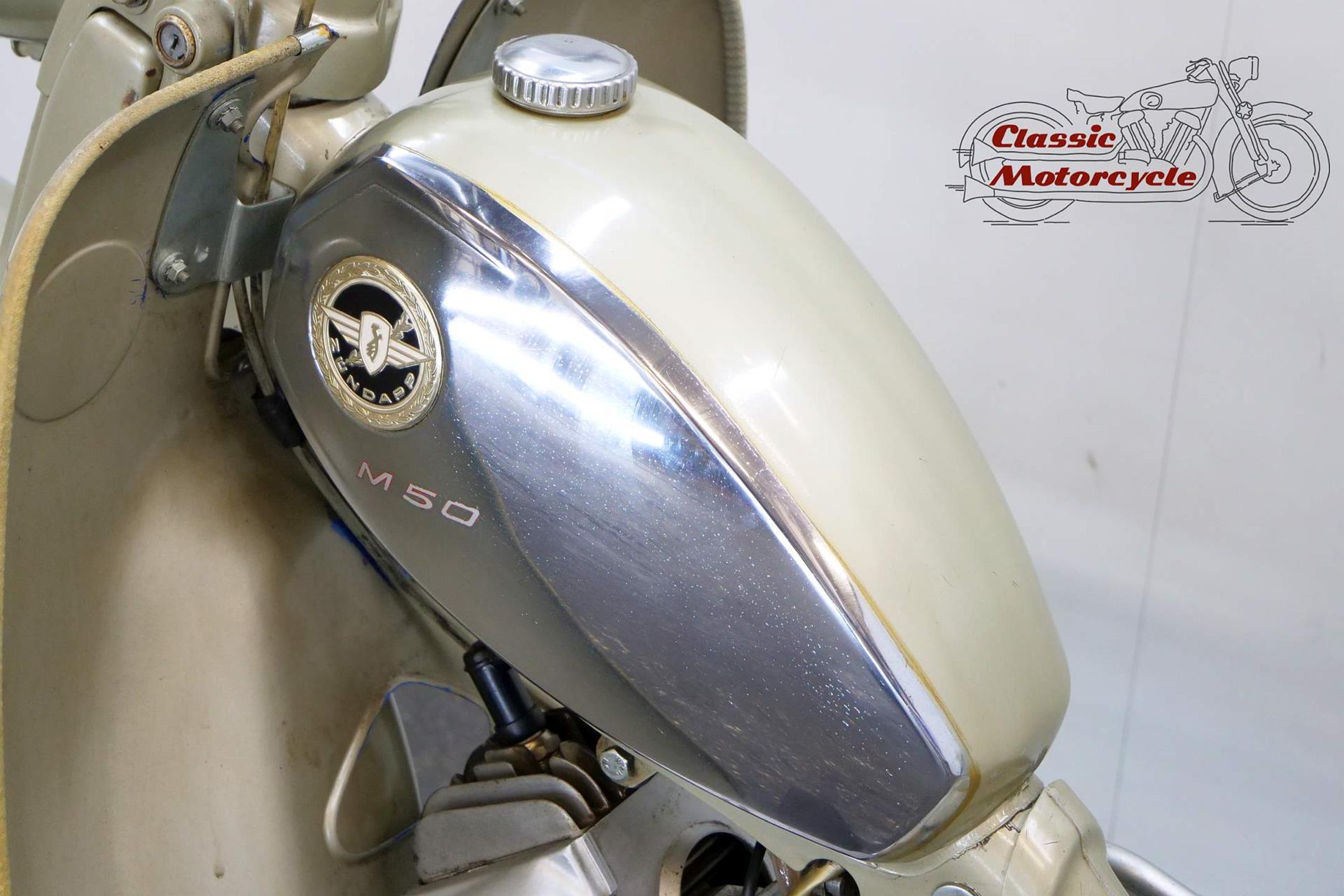 This M50 is equipped with a leg windshield and bears its original paint and original papers.
