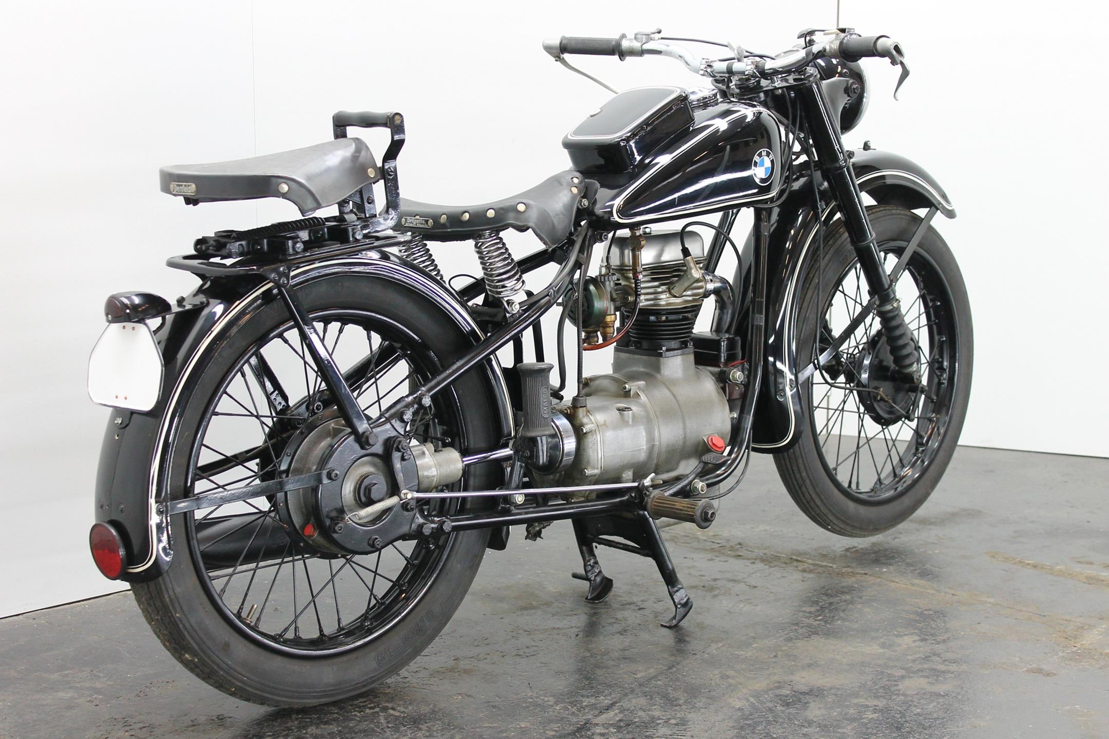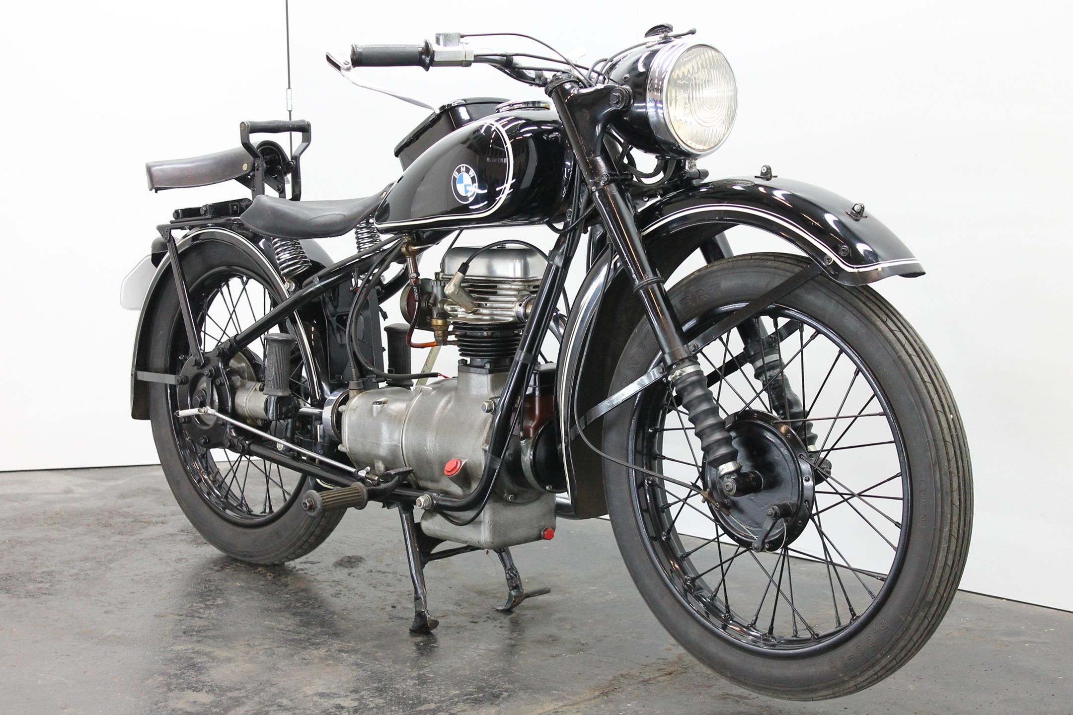 Motorcycles displacing less that 200cc did not have to be licensed in Germany during the early 1930s and thus the category was an important one for all domestic manufacturers. Lightweight two-strokes dominated this sector of the market, which BMW contested with the R2. Launched early in 1931, the relatively expensive four-stroke R2 sold well despite the difficult trading conditions. The 198cc overhead-valve engine was housed in a pressed-steel frame similar in design to that of the twins, and like its larger brethren the single employed shaft final drive. Various improvements were made over the next few years as the R2 progressed through Series 1 to 5. Developed from the best-selling R2, the 192cc R20 was produced during 1937/38, 5,000 examples being sold. The newcomer was powered by a revised 192cc overhead-valve engine producing 8bhp, which was housed in a frame made from bolted-up steel tubes and equipped with an un-damped telescopic front fork.
