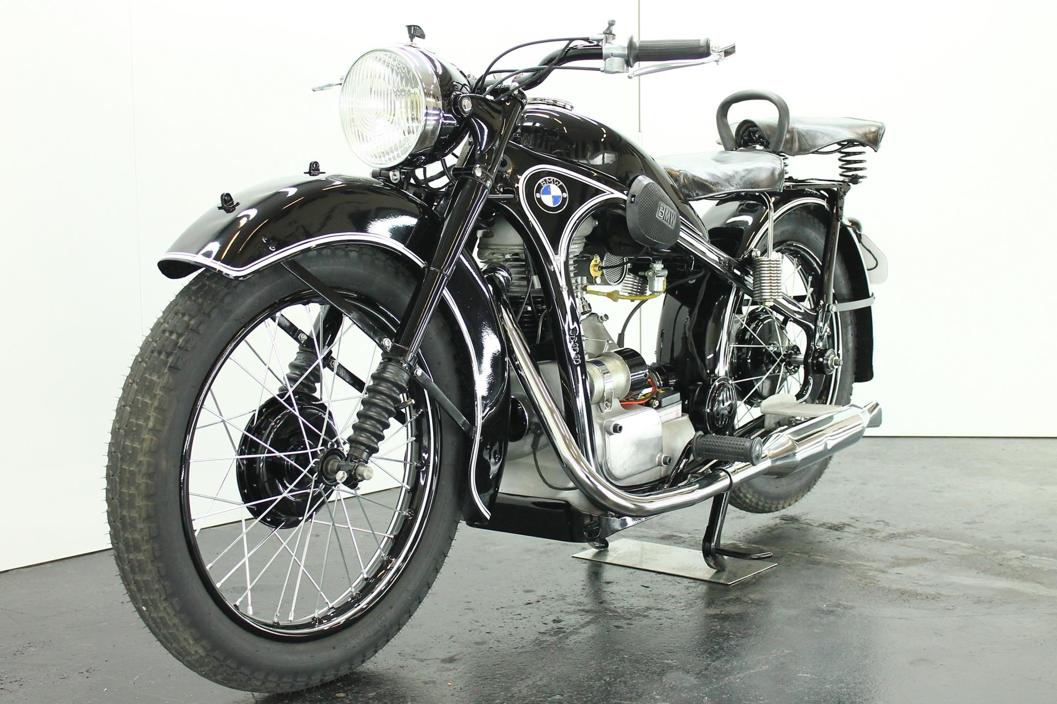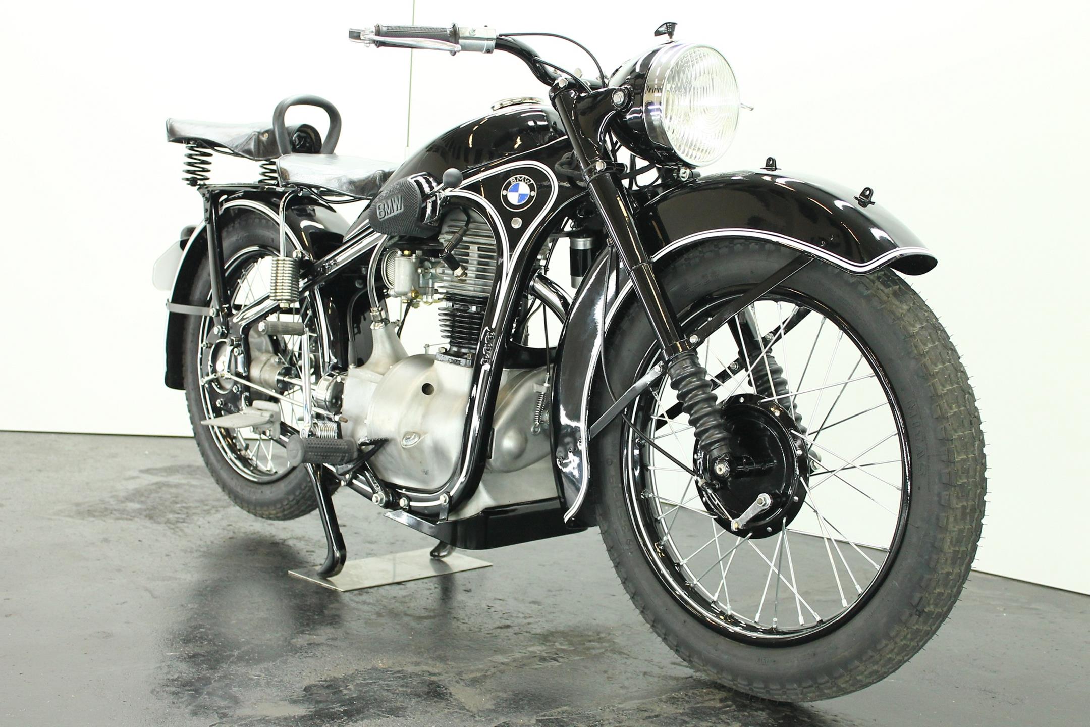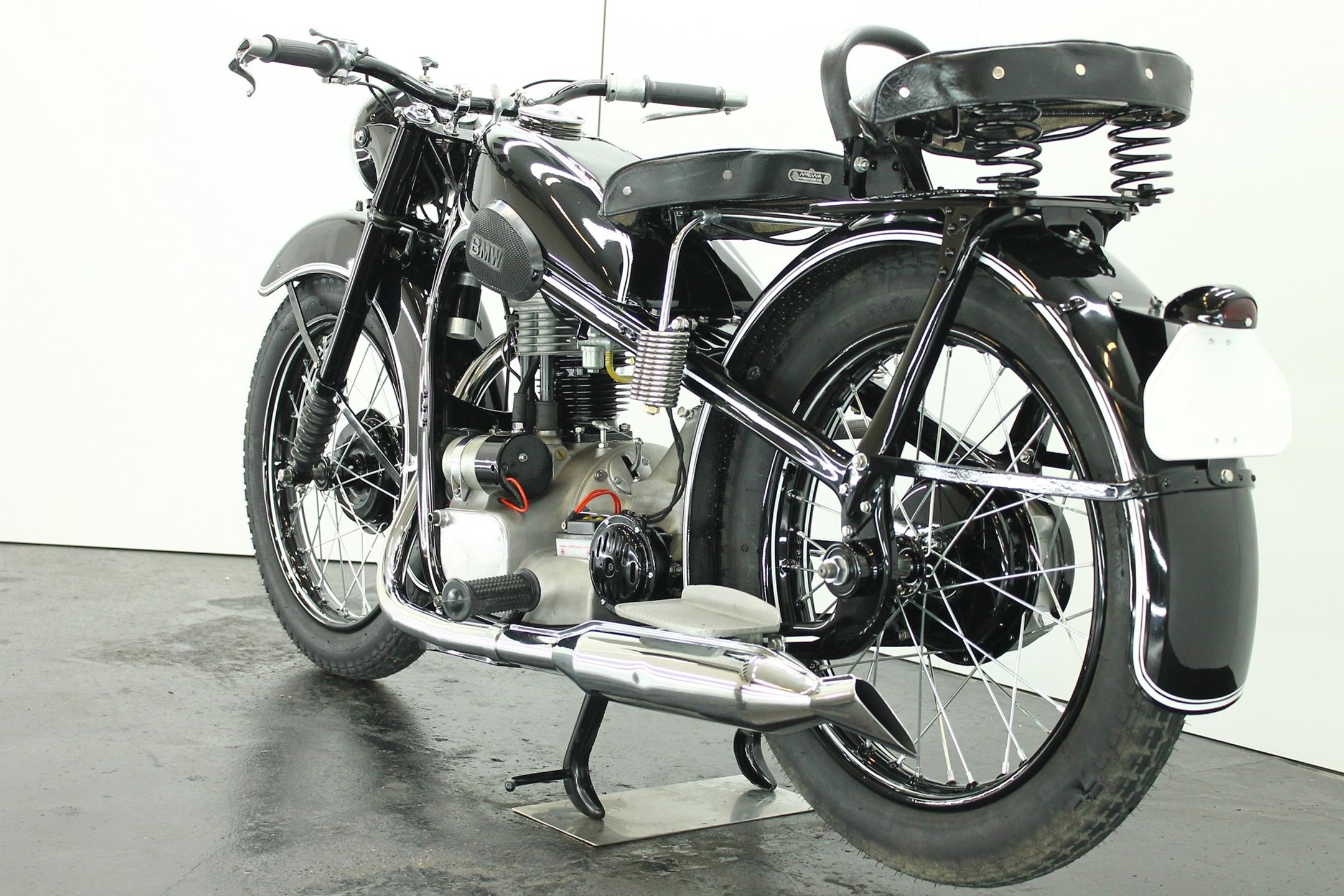 BMW made a host of successful shaft-driven, single-cylinder motorcycles. Starting with the first model, the 250cc 1925 R39, there came the R2 series, the R35, the R20, the R24, R25 series, the R26, and the final model, the R27. All except for the R2, R4, and R35 were 250cc models. After World War II, BMW no longer made R35 motorcycles. "Eisenacher Motorenwerk" (EMW) was an East German manufacturer of automobiles and motorcycles based in Eisenach, then East Germany. It made R35s essentially identical to the pre-war BMW R35. One of the pre-World-War-II BMW factories was located in Eisenach, which after the war was taken over by the Soviets as it was located in the Soviet occupation zone. The factory continued producing cars and motorcycles using the BMW logo, but after a lawsuit in 1952 it had to change the name to EMW instead. The EMW logo was also similar, but instead of the blue BMW used, EMW used red. After the R3 with its 300cc engine had enjoyed very little commercial success, BMW introduced a new single-cylinder model in 1937, the R35. Its engine was derived from the 400cc R4, but by reducing the bore the displacement was decreased to 350cc. The R35 also developed 14 horsepower and like the R4 had a top speed of 100km/h. The suspension had in the meantime been modernized. The frame was still made from massive-looking pressed steel sections but the antiquated leaf spring at the front was now replaced by a modern telescopic fork. In contrast to the exclusive "Boxer" models, however, there was no hydraulic damping. By the close of production, the R35 was the most successful model in BMW's motorcycle history and when you see the bikes today, it's easy to understand where the appeal lies.