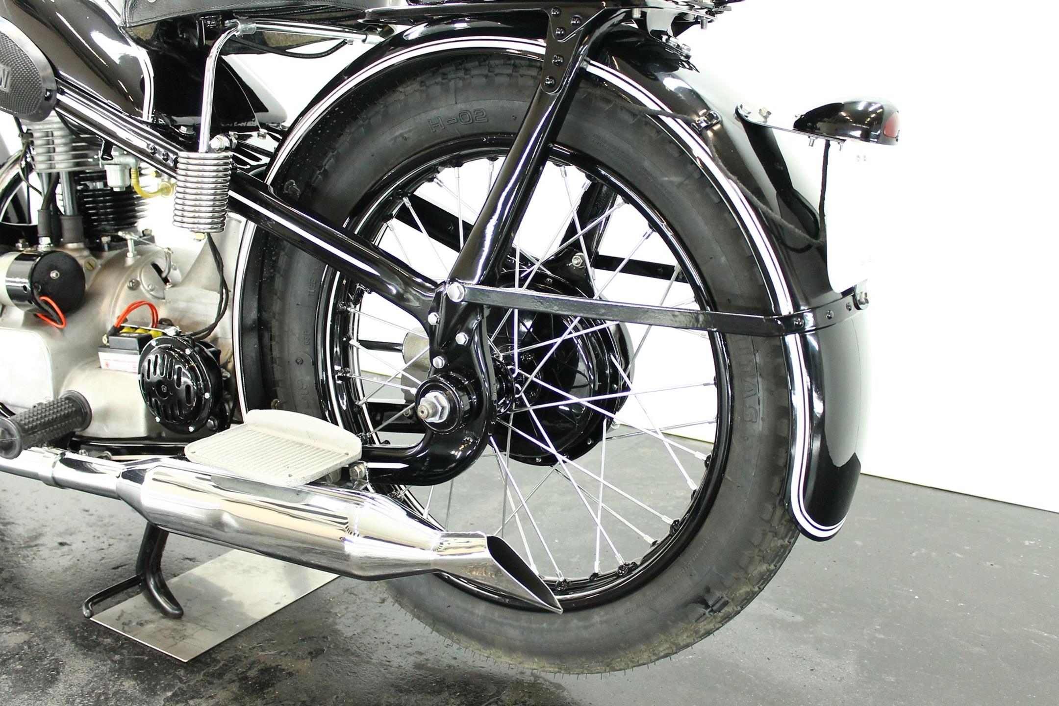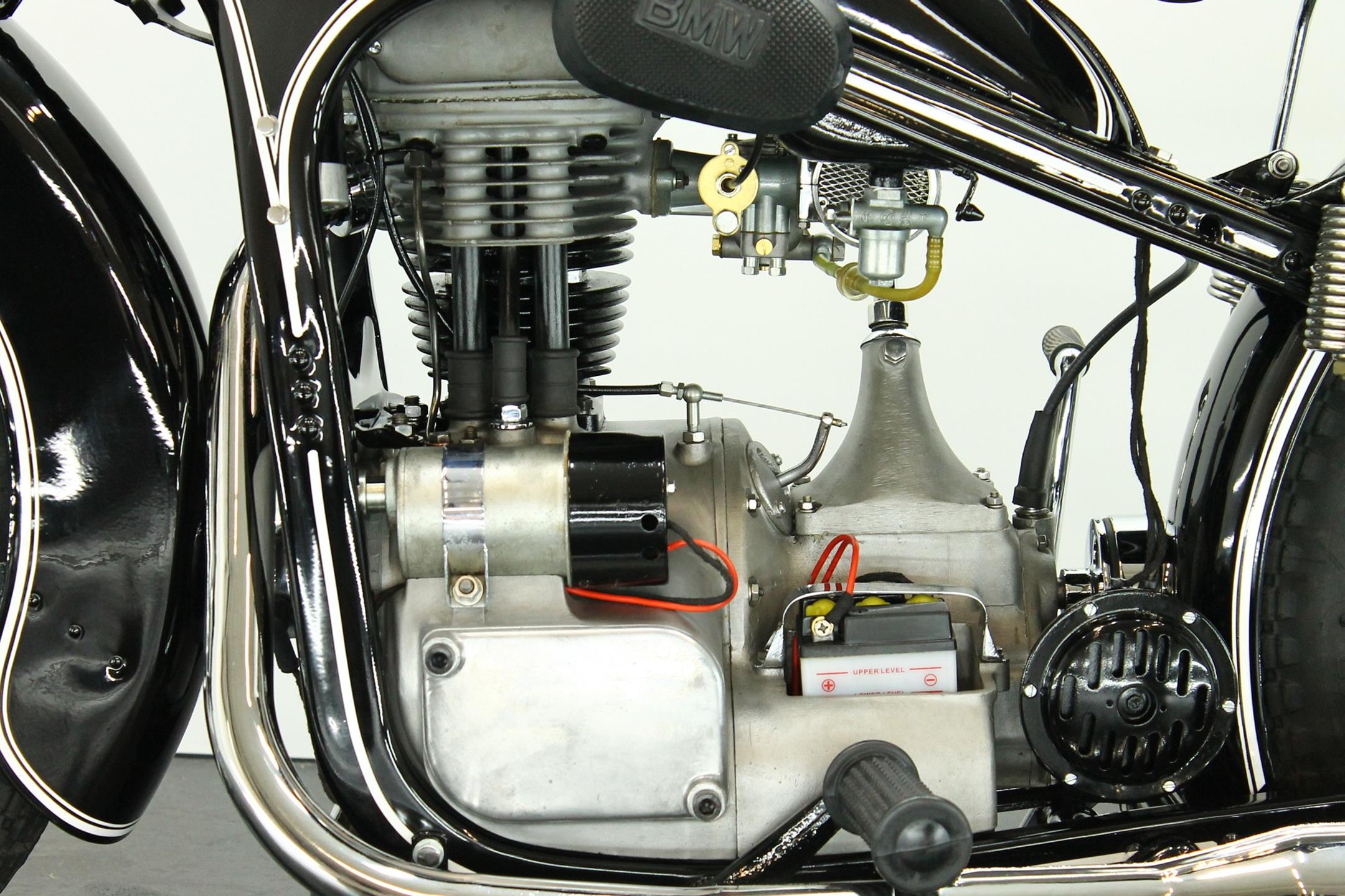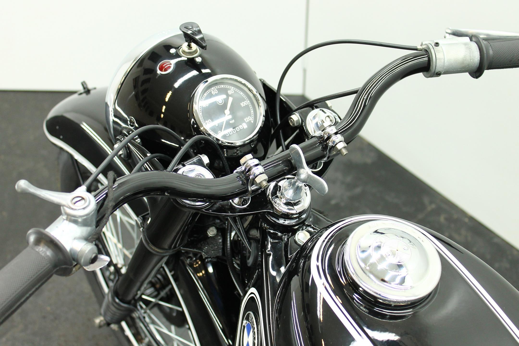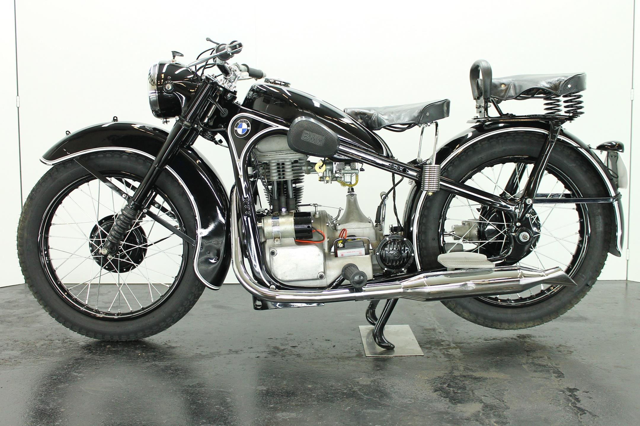 BMW made a host of successful shaft-driven, single-cylinder motorcycles. Starting with the first model, the 250cc 1925 R39, there came the R2 series, the R35, the R20, the R24, R25 series, the R26, and the final model, the R27. All except for the R2, R4, and R35 were 250cc models. After World War II, BMW no longer made R35 motorcycles. "Eisenacher Motorenwerk" (EMW) was an East German manufacturer of automobiles and motorcycles based in Eisenach, then East Germany. It made R35s essentially identical to the pre-war BMW R35. One of the pre-World-War-II BMW factories was located in Eisenach, which after the war was taken over by the Soviets as it was located in the Soviet occupation zone. The factory continued producing cars and motorcycles using the BMW logo, but after a lawsuit in 1952 it had to change the name to EMW instead. The EMW logo was also similar, but instead of the blue BMW used, EMW used red. After the R3 with its 300cc engine had enjoyed very little commercial success, BMW introduced a new single-cylinder model in 1937, the R35. Its engine was derived from the 400cc R4, but by reducing the bore the displacement was decreased to 350cc. The R35 also developed 14 horsepower and like the R4 had a top speed of 100km/h. The suspension had in the meantime been modernized. The frame was still made from massive-looking pressed steel sections but the antiquated leaf spring at the front was now replaced by a modern telescopic fork. In contrast to the exclusive "Boxer" models, however, there was no hydraulic damping. By the close of production, the R35 was the most successful model in BMW's motorcycle history and when you see the bikes today, it's easy to understand where the appeal lies.