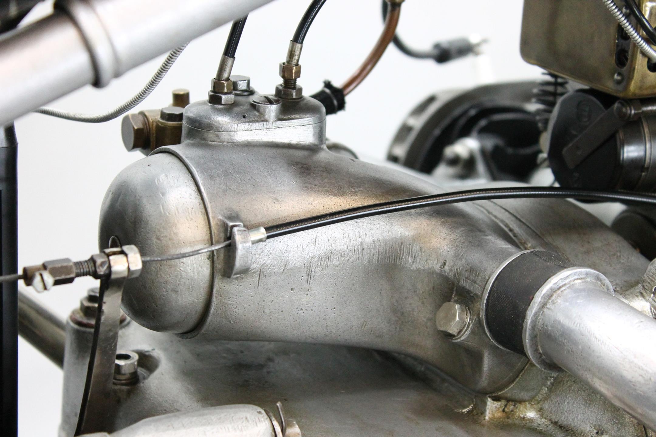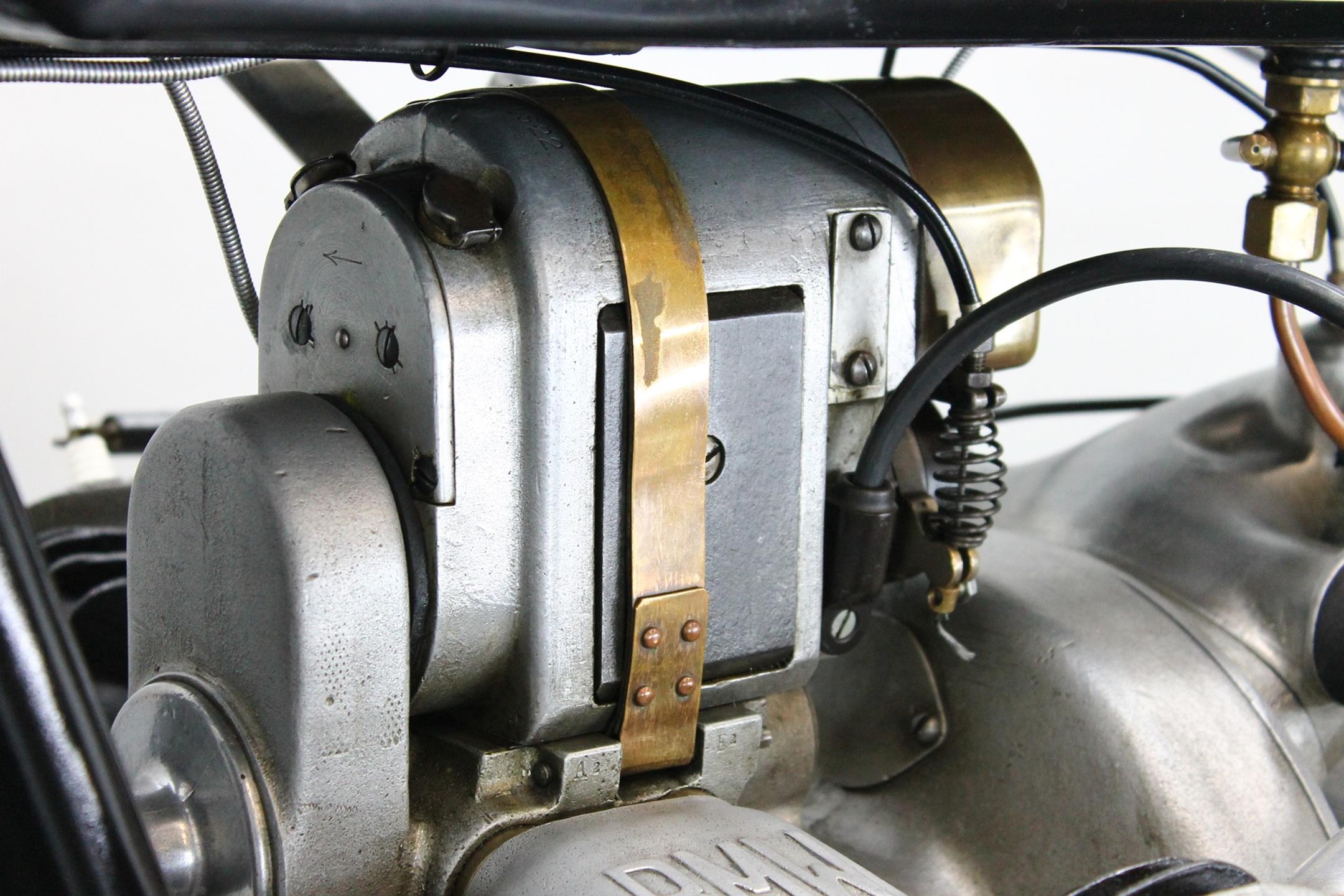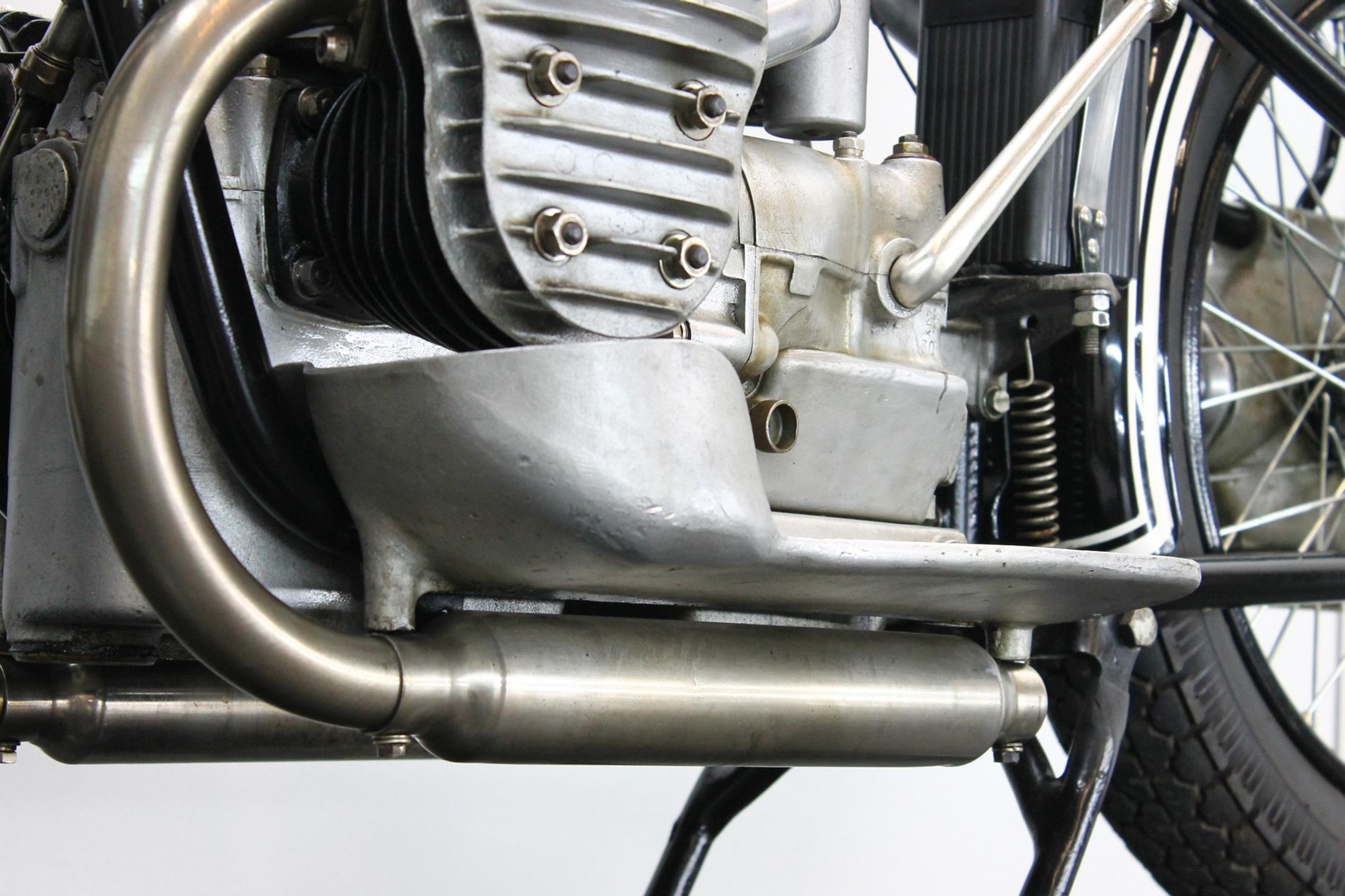 This handsome R42 spent his whole life in Germany and comes with Germany papers (copy) of the “französischen Besatzungszone”, original dealer plate of Folville & Mettenheimer, original Bosch lighting set, Bosch horn, Bosch MagDyno, recently overhauled OTA speedo, Lepper seat, many of pic. of the original condition + during restoration and a certificate of the BMW Archiv in Germany. This rare and original flat tank BMW has been produced 2 lasted years and runs great with its 500cc transverse engine.