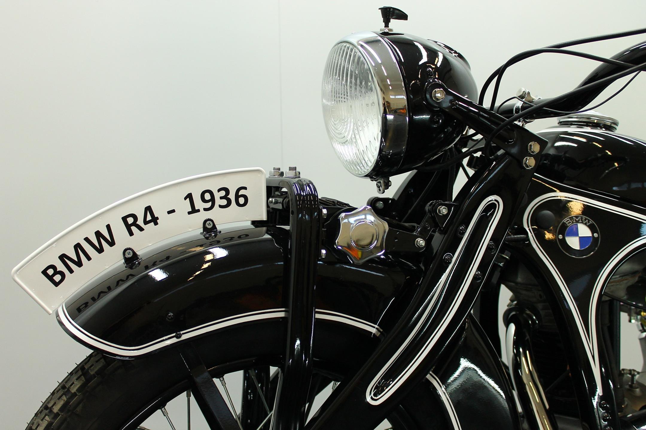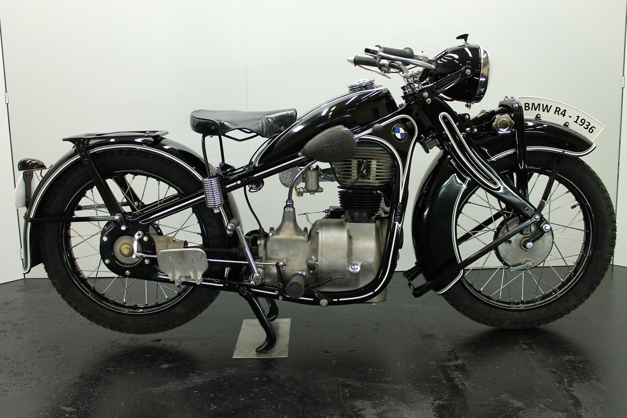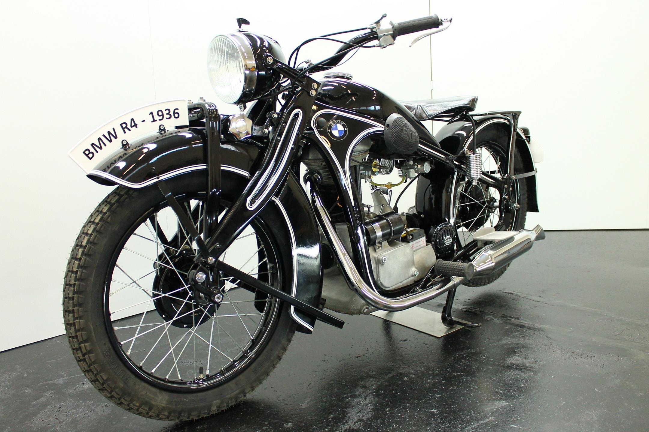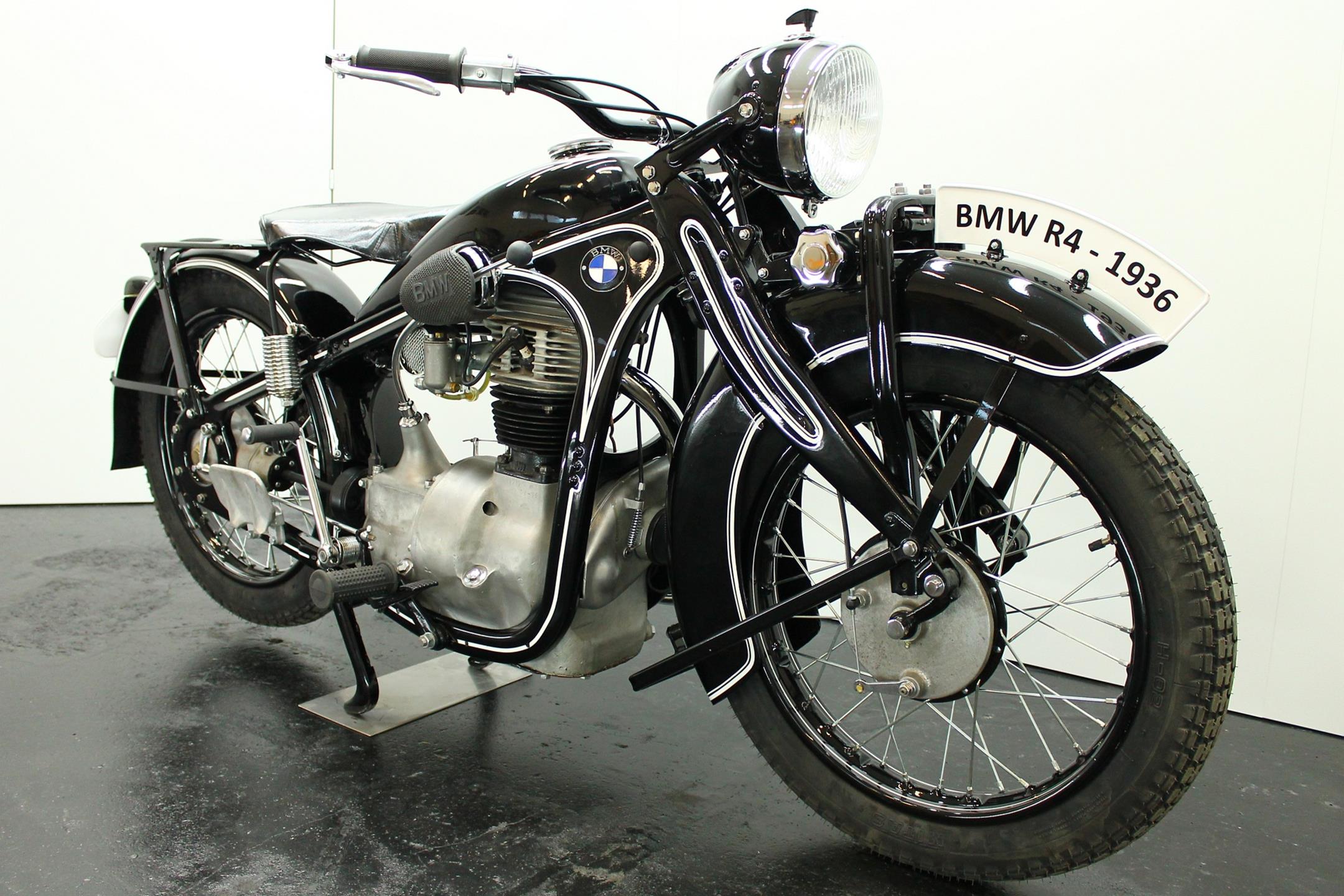 Introduced in 1932 and intended to bridge the gap between the 'budget' BMW R2 198cc single and the expensive twins, the R4 looked much like the former, whose channel-section steel frame and running gear it used almost unaltered. The 398cc overhead-valve engine featured enclosed valve gear and produced 12bhp, gaining an extra two horsepower in 1933 when the BMW R4 was updated to Series 2 specification with revised styling and a four-speed gearbox. A new cylinder head, tidier engine casings and changes to the toolbox and generator locations were introduced as the rugged R4 - a favourite with police forces and the German Army - progressed through to Series 5 before production ceased in 1936. BMW produced 15,295 R4 motorcycles using innovative mass production techniques, setting new standards of design and quality. Pressed steel frame and components were quick and easy to stamp out and assemble, reducing manufacturing costs.