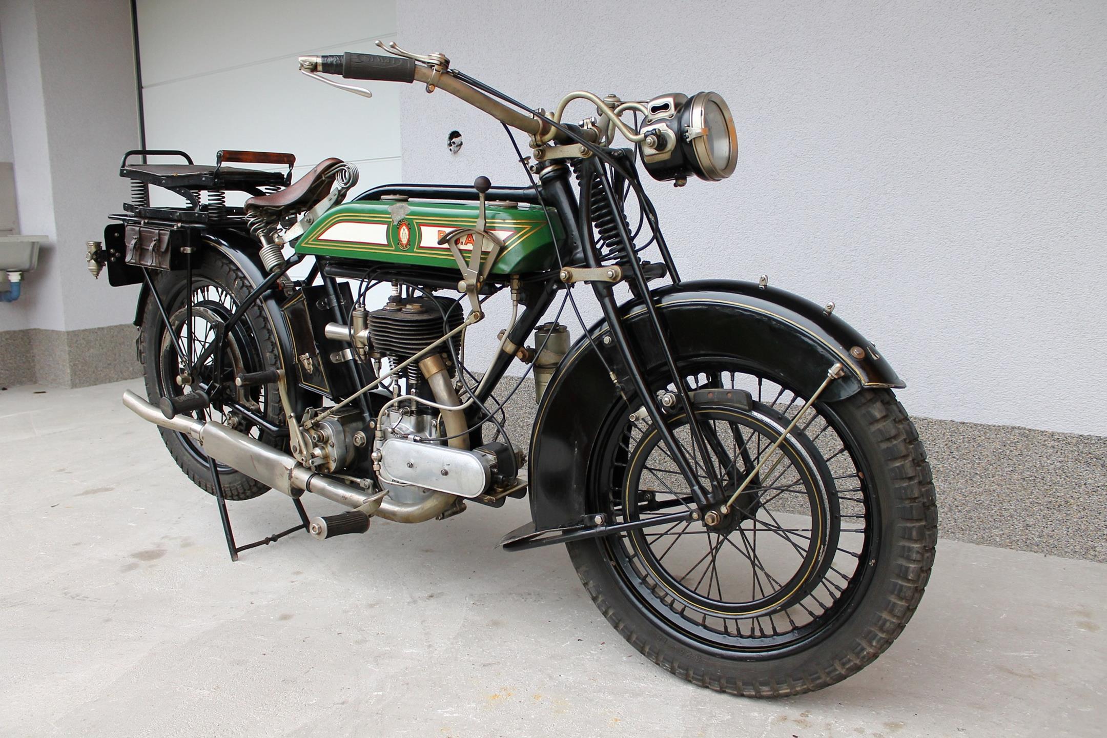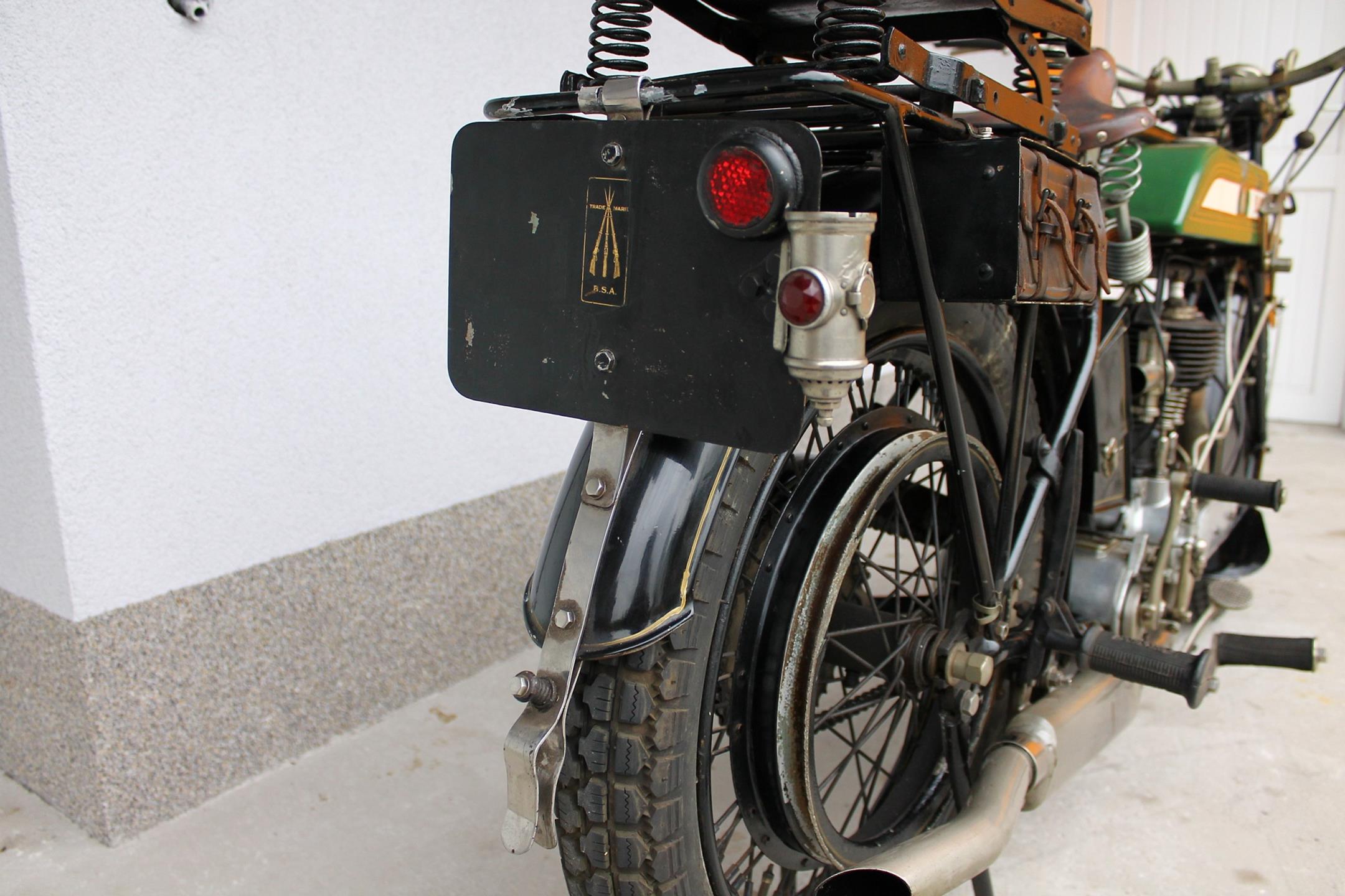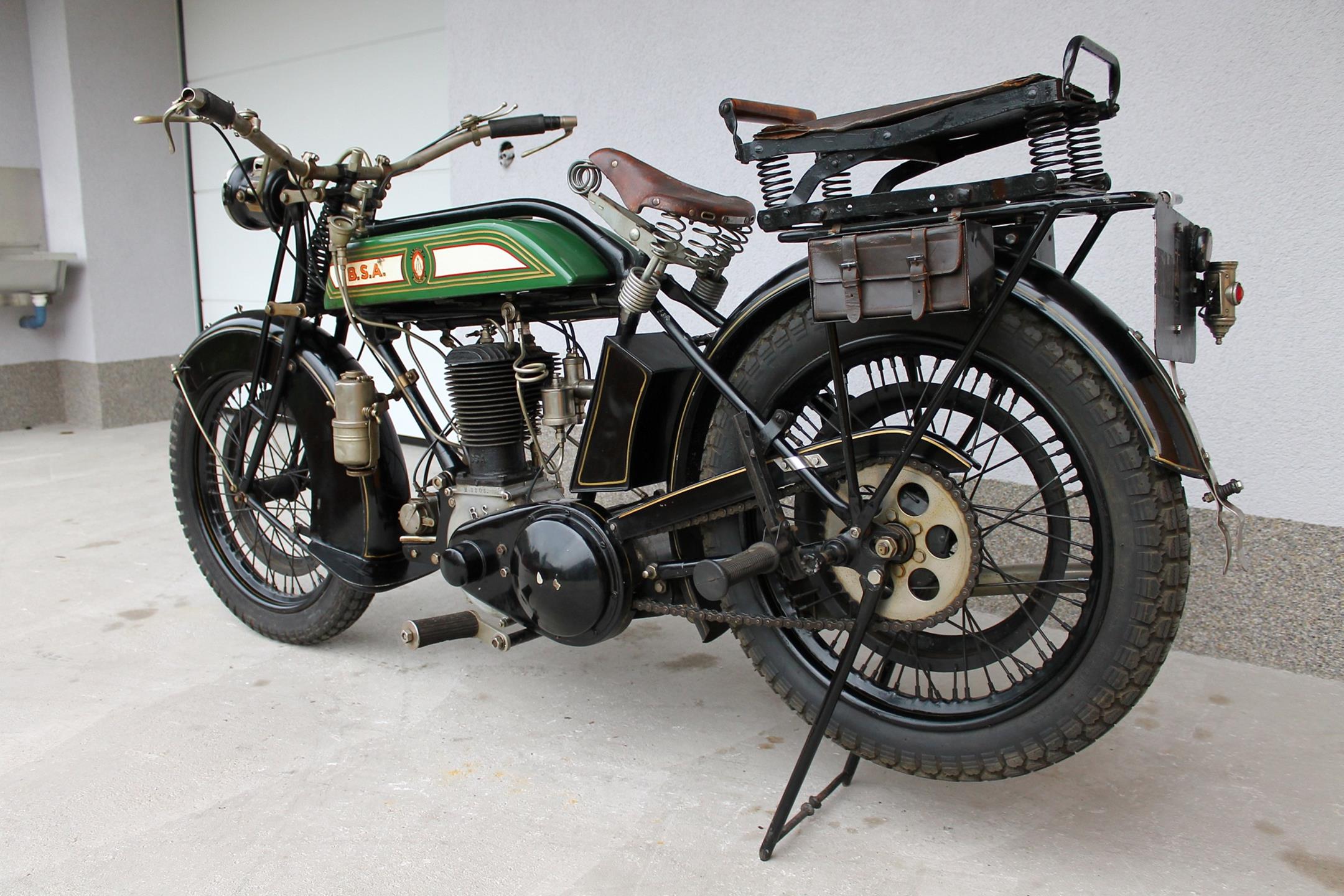 At the end of the nineteen twenties the Motorcycle Industry grew immensely quick, in Britain. Resulting from this, a price competition established between the motorcycle manufacturers. At this time the cheaper Triumph Model P and the BSA model S26, were competing. You were able to choose between 15 solo models and 11 combinations. The solo machines ranged from a 249 cc side valve single to the 986 cc “Colonial” V-twin model. The 493cc was the most noted model and listed at about 45 pounds. This motorcycle is equipped with a BSA three-speed gearbox and with acetylene lighting.
