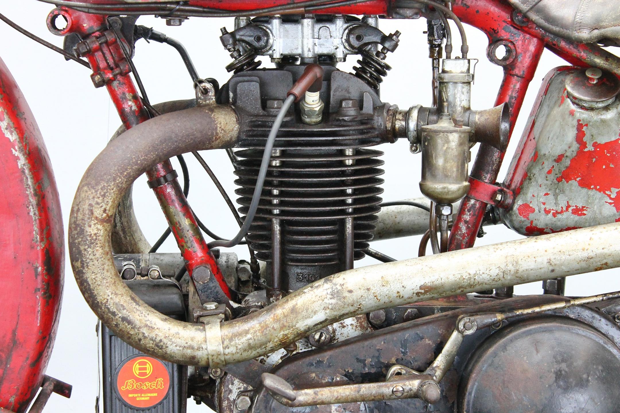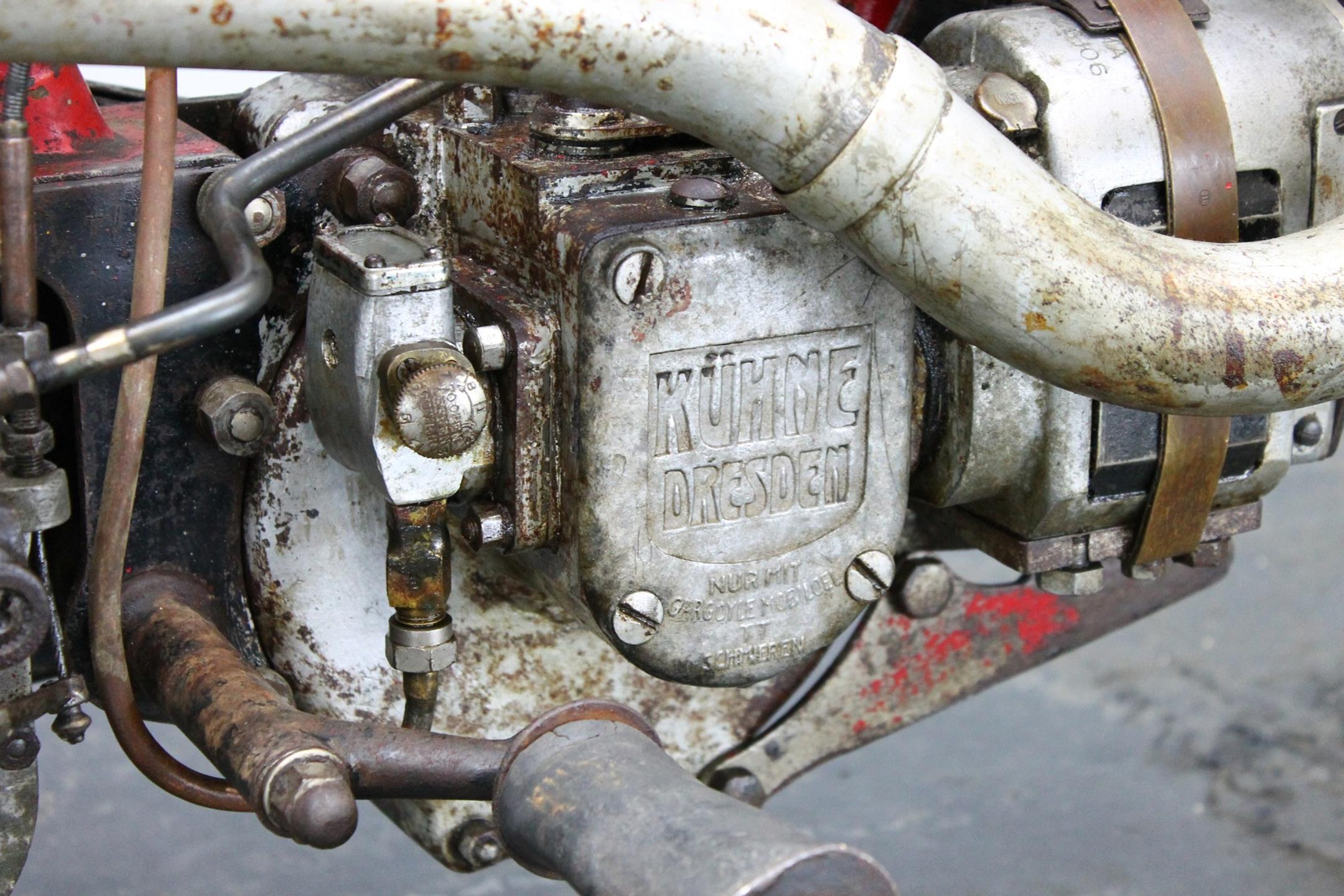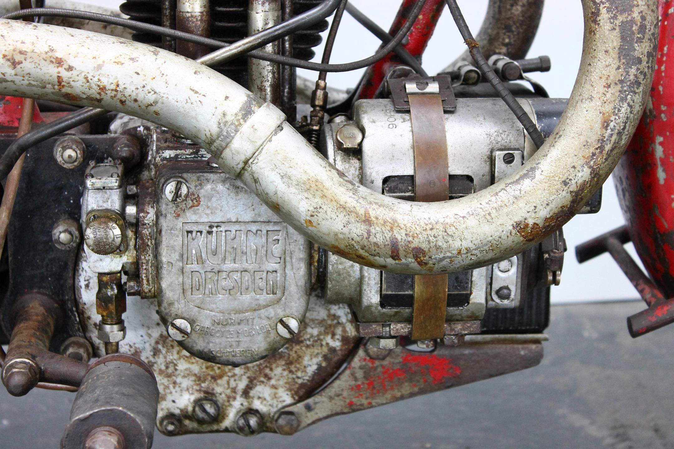 This lovely and rare piece of the german motorcycle history comes complete with Amac carburetor, Bosch horn, Hurth gearbox and high level exhaust. The Kühne engine with its 22ps do his job perfect. This bike bears lot of original paint and impressive patina.