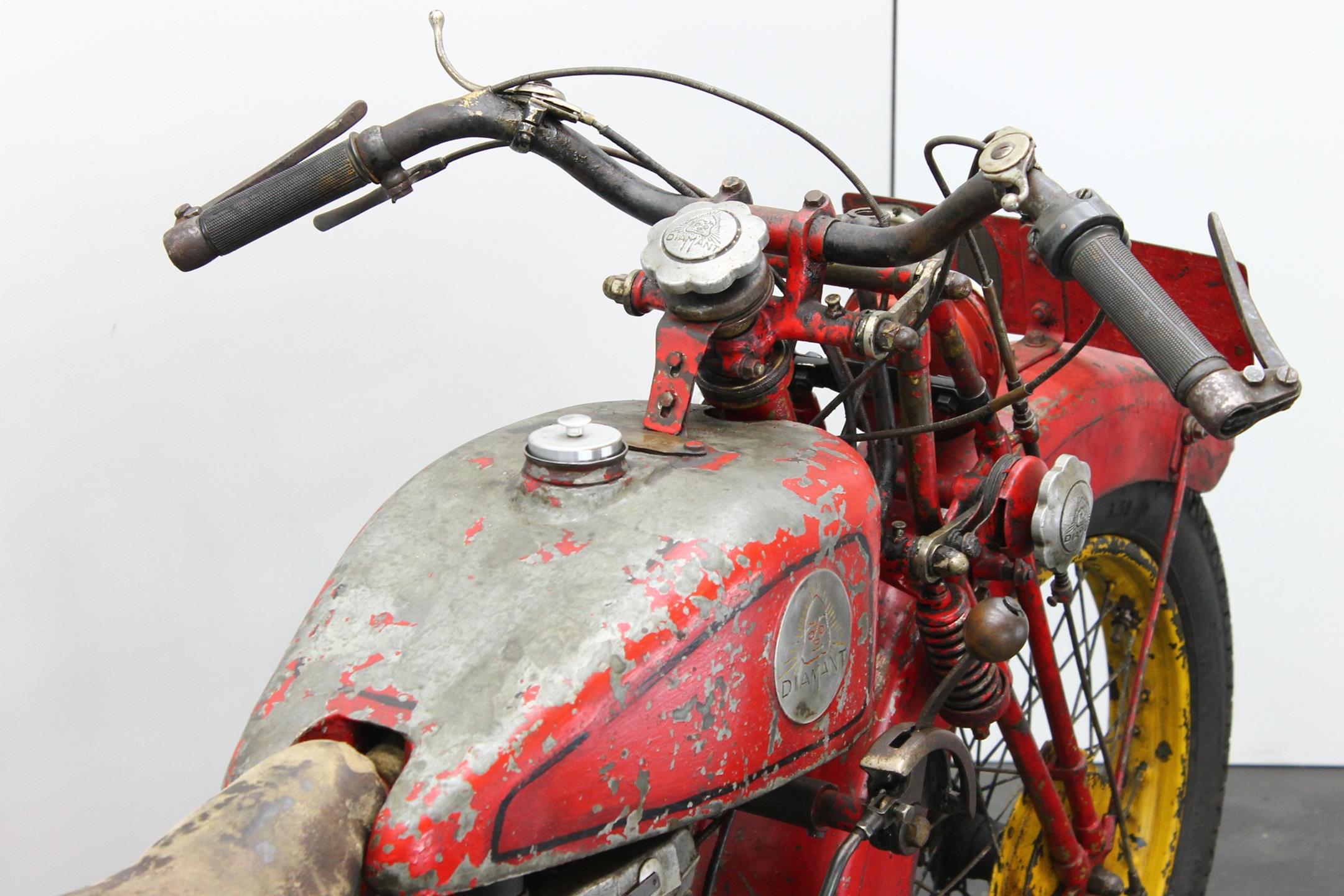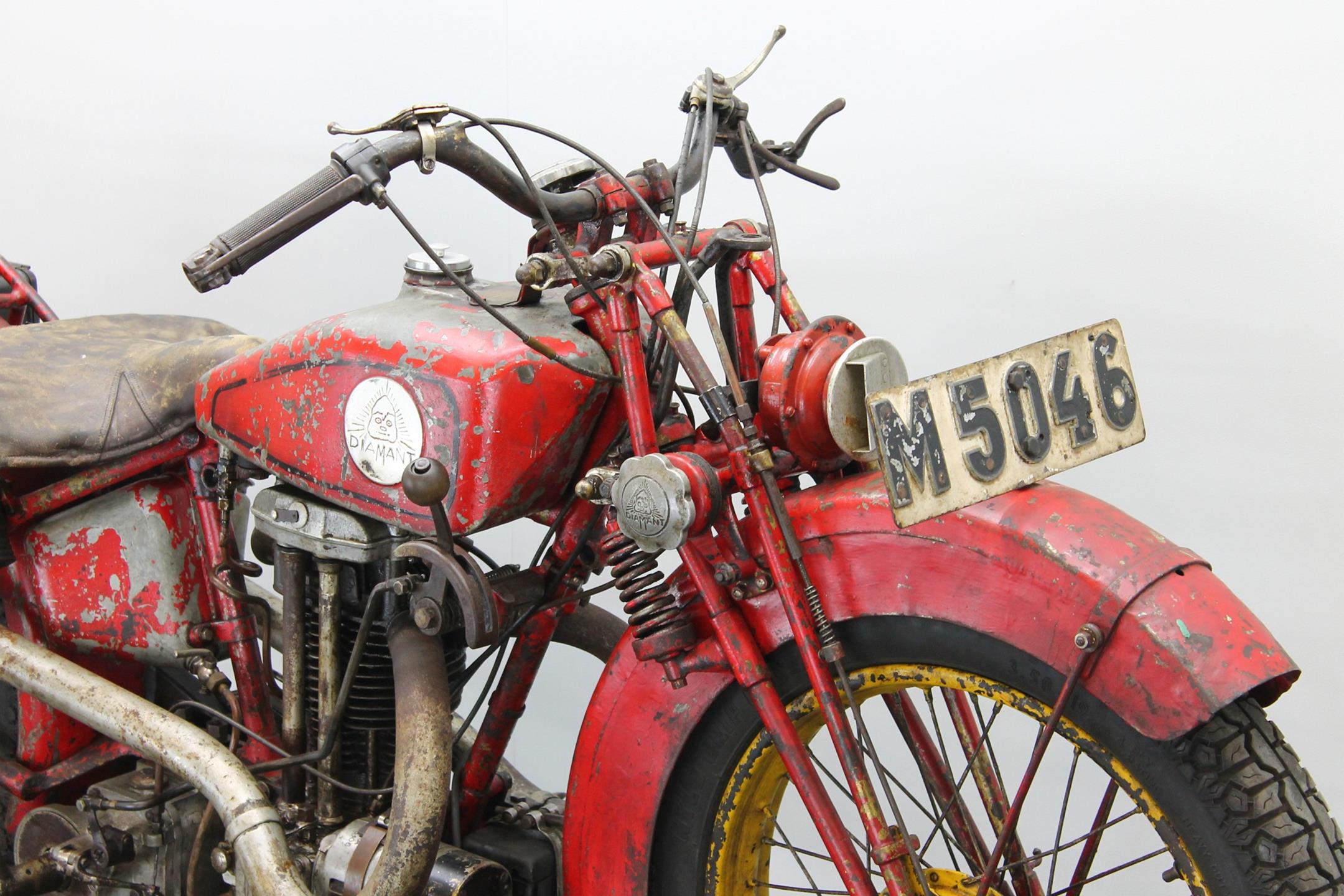 In 1885 the brothers Nevoigt founded a business for the production of steel quills and knitting machines. They choose “Diamant” (diamond) as their brand name, which ist still used on the most famous product range of the company: bicycles. Today, it is the oldest surviving bike manufacturer in Germany. From 1903 to 1908 around 300 Diamant motorbycicles had been build. With motorcycles becoming very popular in the 1920s the company launchd new four-stroke models. A 350 and a 500cc ohv-model was successfully entered in various race events and sold rather well. More economical sidevalve versions were availiable for less ambitious riders. Diamant motorcycles stood out of the competitors for two reasons: One is the colourful paint scheme ranging from orange on black to two-tone blue and chromium finish. The other ist the trademark logo of a boy’s face, still used today. In 1928 the company was taken over by Opel who had their famous cadmium-plated “Motoclub” bikes manufactured in Saxony until 1930. Built by Elite-Diamant for Opel – The Motoclub. One year later Diamant offered 74cc and 98cc Sachs-engined motorbycicles. Being tax-exempt, these small machines becam hugely popular in Germany, with more than 90 manufacturers trying to secure a share in the market. It is estimated that Diamant sold more than 17.000 units until 1942.