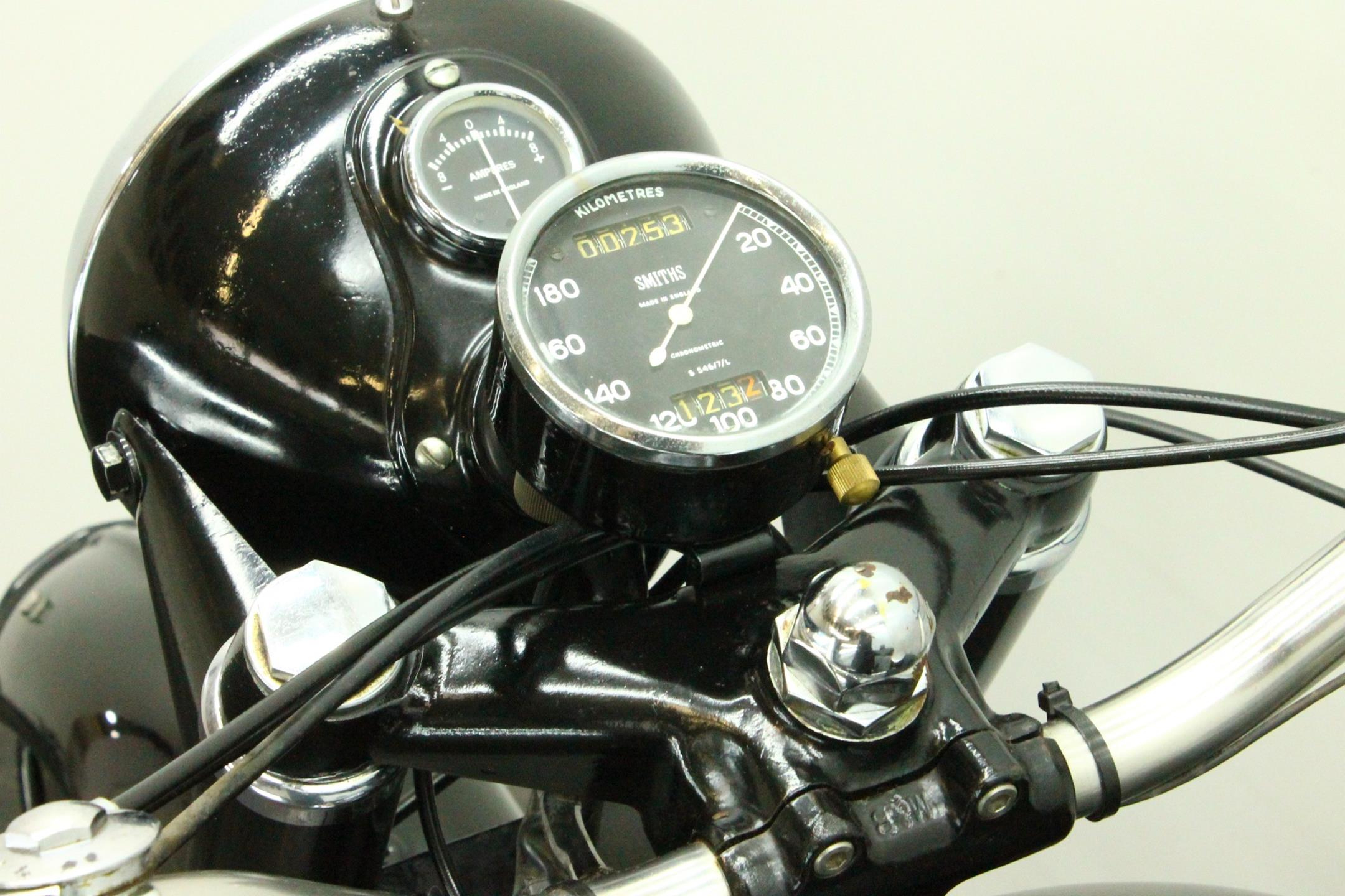 The A.J.Stevens Company was founded in 1909 by the four Stevens brothers, with motorcycle production commencing the following year. In the Twenties, AJS made a name for itself with a new OHV single-cylinder engine that helped the Wolverhampton outfit score wins in the 1921 and 1922 Junior TTs. Despite expanding into light cars and other products, AJS were struggling by the late Twenties and the manufacturing rights for their motorcycle production passed to Matchless in 1931 before becoming part of the Associated Motor Cycles group in 1938. In 1935. The AJS 500cc Model 18 and AJS Model 18S are 500 cc British motorcycles almost identical to the Matchless G80 and both were produced in the same Associated Motor Cycles (AMC) London factory from 1945 to 1966. These bikes represent the end of the era of big British singles, as when AMC merged with Norton production concentrated on twins. The AJS Model 18 was developed from a design from the 1930s, despite which it was still being manufactured 30 years later. The AJS was updated when a springer frame rear suspension was made available for 1949, to become the Model 18S. The suspension was a vast improvement on the rigid rear end - which had given a bouncy ride. Each of the two 'Candlestick' shocks held only 50 cc of SAE 20 weight oil and were replaced by the larger diameter 'Jampot' shocks on the 1951 version. The engines compression ratio of 5.9:1, necessary because of the low quality fuel available in Britain immediately after the War. British singles were designed to make the best of the fuel available. Post war petrol rationing continued until 1950 and it was several years before performance fuels were generally available in the UK. The Model 18's low compression did mean it was easy to start and The model 18:s had better performance and fuel economy than the fast cars of the time.By 1951 the model 18 had an alloy cylinder head and the competition models had also an alloy cylinder (with steel liner in it), where the barrel fins went all the way to the base. The AJS and Matchless singles ceased when AMC merged with Norton as all production was transferred to twins cylinder bikes.