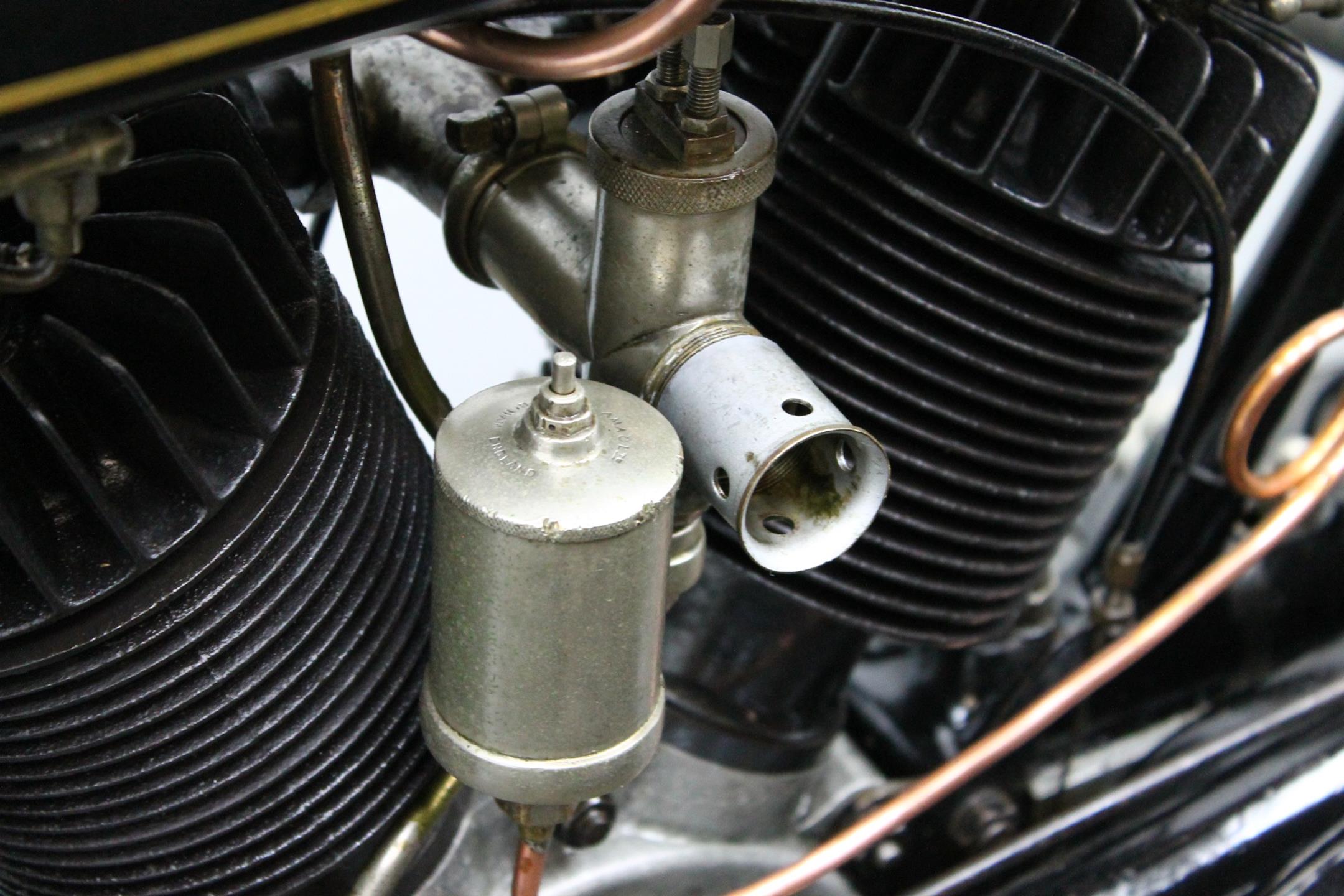 Formerly suppliers of proprietary engines, the Stevens brothers of Wolverhampton diversified into manufacturing complete motorcycles, setting up A J Stevens & Co in 1909. Endowed with an effortlessly flexible motor and built to A J Stevens' traditionally high standards, the firm's long-running V-twin was one of the most effective and popular sidecar tugs of its day. First seen in 631cc form in 1912, the V-twin remained a fixture of the AJS range into the early 1930s, latterly with a 998cc engine. In 1924 AJS catalogued the models B/B1/B5 with 349cc side valve, B3 349cc overhead valve, B4 competition 349cc overhead valve and the flag ship model D with 799cc V-twin side valve.