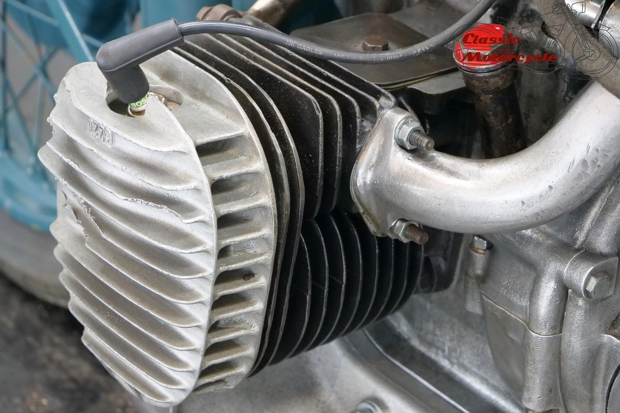 This bike in the heavy weight class bears its old paint with honorable signs of use of the last decades.