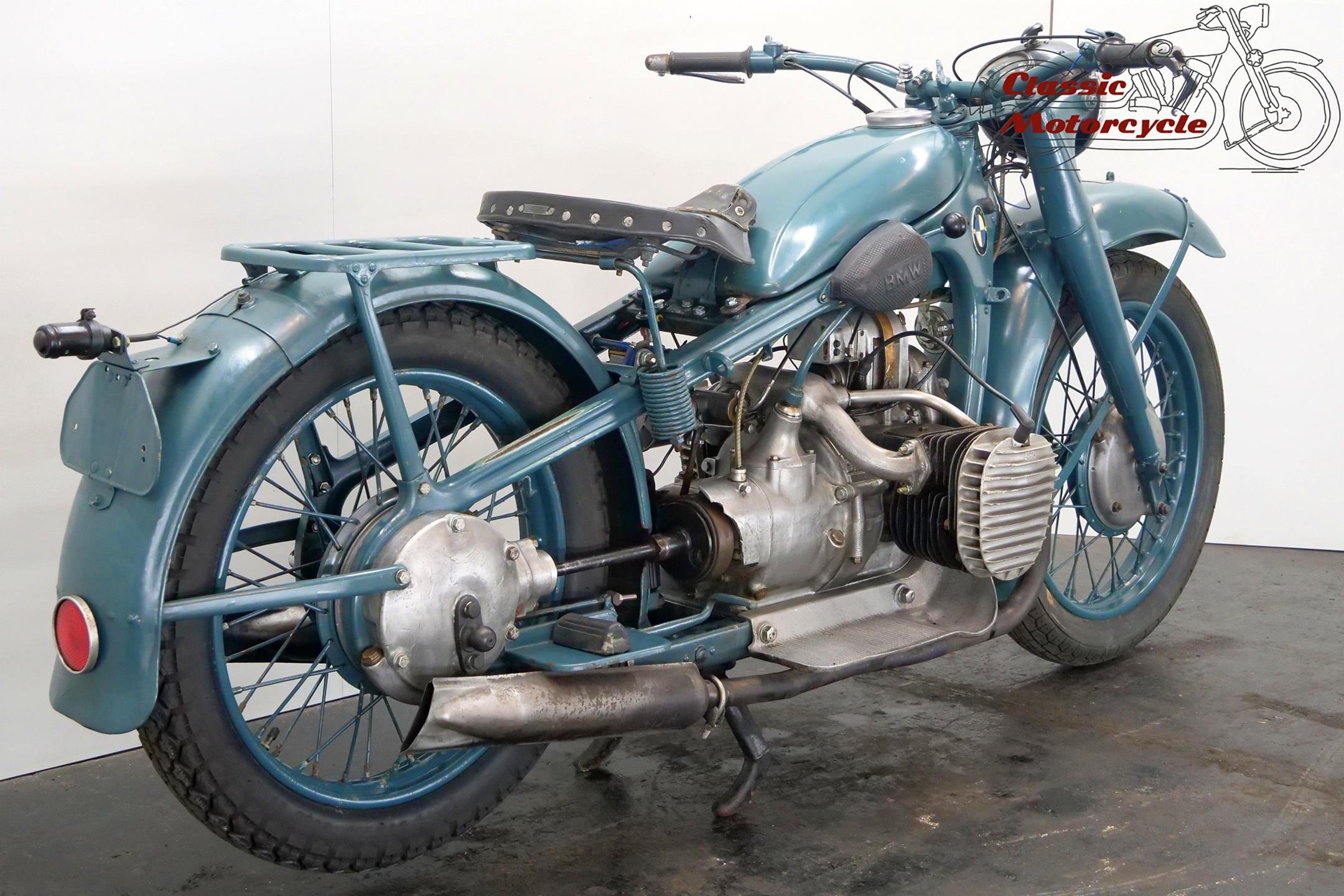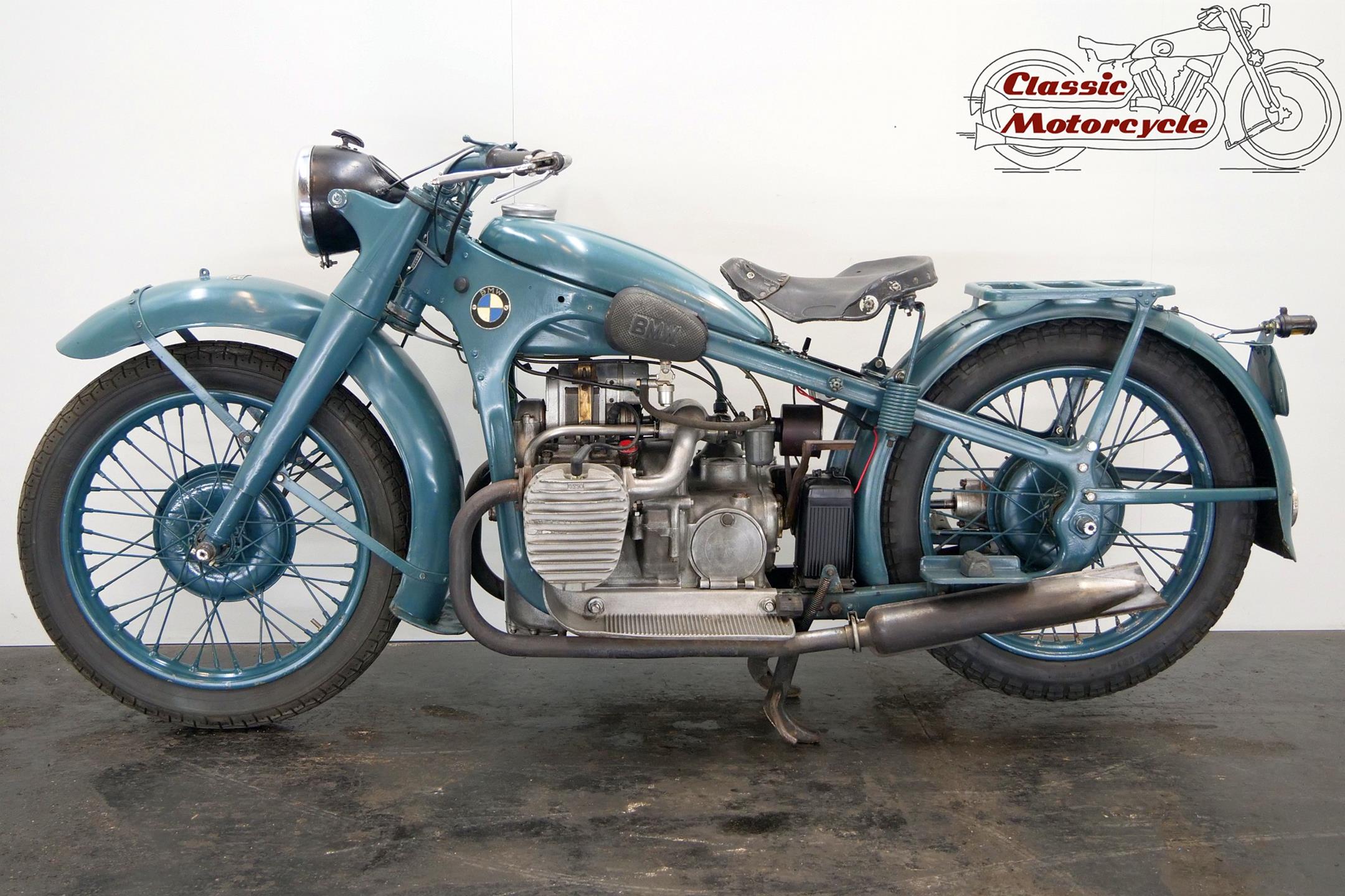 Following the collapse of its aero engine business after WWI, BMW turned to other areas of manufacture, motorcycles among them. BMW's first model, a two-stroke ultra-lightweight marketed as the Flink, was a failure but its next venture was more successful. BMW's General Director Franz Josef Popp had asked designer Martin Stolle to come up with a proprietary power unit and the result was the M2B15, a engine that would be supplied to other manufacturers, such as Victoria, as well as being used to power the BMW-made Helios. Victoria having switched to another supplier, BMW's Chief Designer Max Friz set about producing a motorcycle superior to the Helios and one that would be worthy of carrying the BMW name. Warming to the task of designing motorcycles, a mode of transport he hitherto had despised, Friz and his colleagues Rudolf Schleicher and Franz Bieber drew up the R32, the first really outstanding motorcycle design to emerge after WWI. Launched at the Paris Show in 1923, and the first motorcycle to be sold as a BMW, the R32 featured a 494cc, twin-cylinder, sidevalve engine having horizontally opposed cylinders, and this 'flat twin' layout would forever be associated with the marque. Setting a pattern that endures to this day, BMW's first motorcycle was relatively expensive but superbly engineered and constructed, while the quality of finish was of the highest order. It was an immediate success. In 1930 BMW broke fresh ground with the launch of the pressed-steel-framed R11, and followed that up in 1935 with the introduction of a hydraulically-damped telescopic front fork on the R12, the first time such a device had been seen on a mass-produced motorcycle. Also notable as the first BMW motorcycle to have a four-speed gearbox, the R12 was a huge success with approximately 36.000 produced up to 1938, and was used by the Wehrmacht in the war's early years before the introduction of the purpose-built military R75.