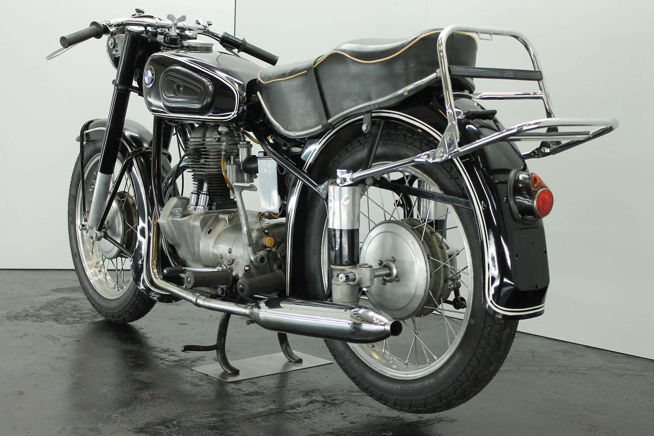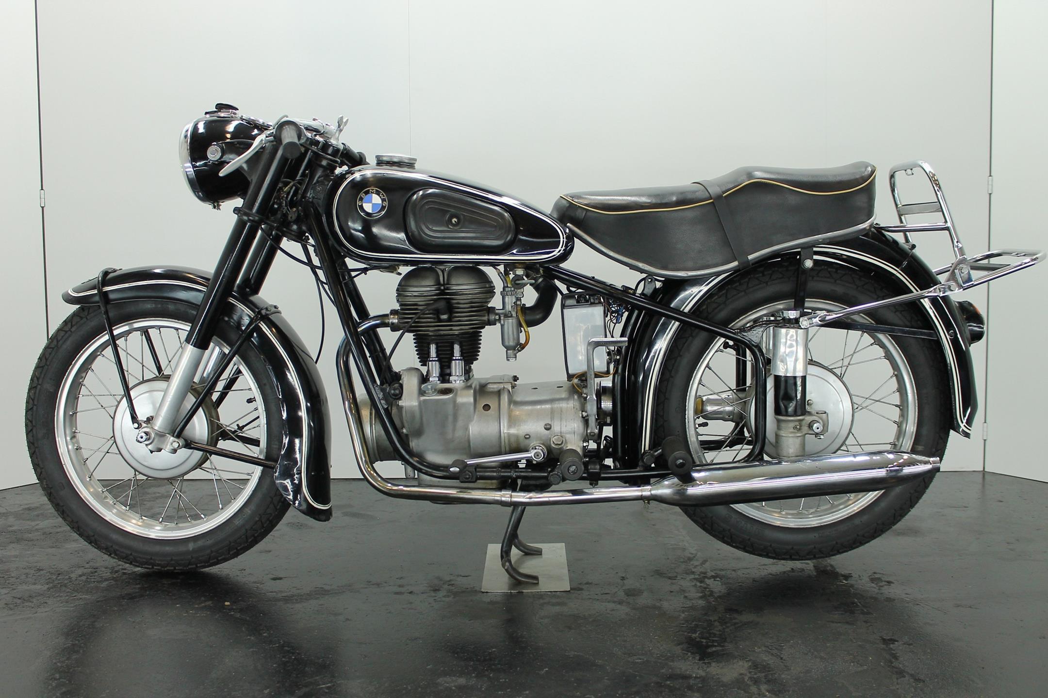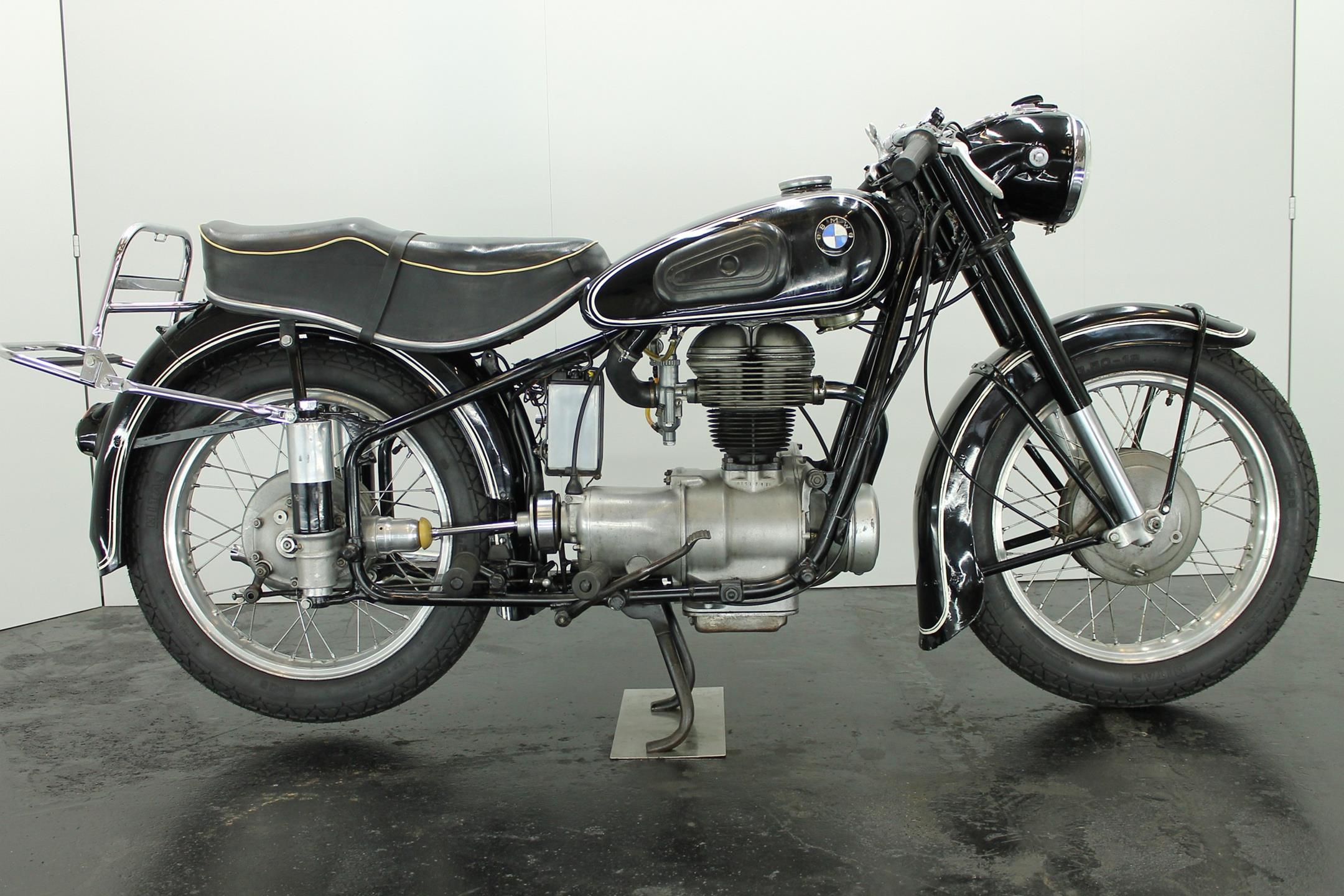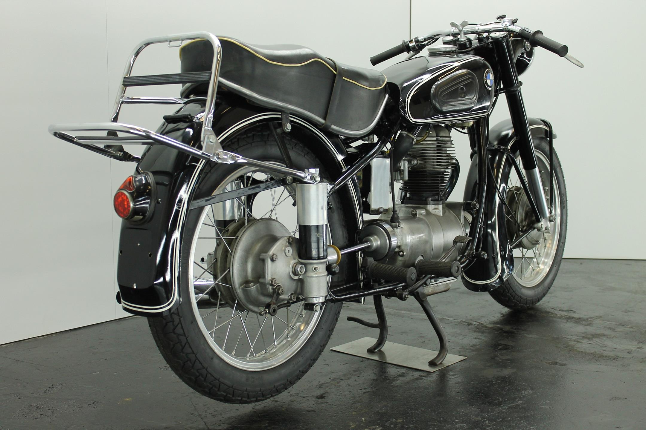 BMW's first new post-war model was a single-cylinder design - the 250cc R24 - which arrived in 1948 looking pretty much like the pre-war R23 but producing an additional 2bhp. It was superseded in 1950 by the R25, which featured plunger rear suspension but was otherwise very similar. An improved R25/2 version was introduced during 1951 incorporating a stronger crankshaft and minor revisions to the front mudguard stays and seat springing. Built between 1953 and 1956, the final R25 variant - R25/3 - featured a new telescopic front fork, full-width alloy hubs and alloy wheel rims as the principal upgrades.