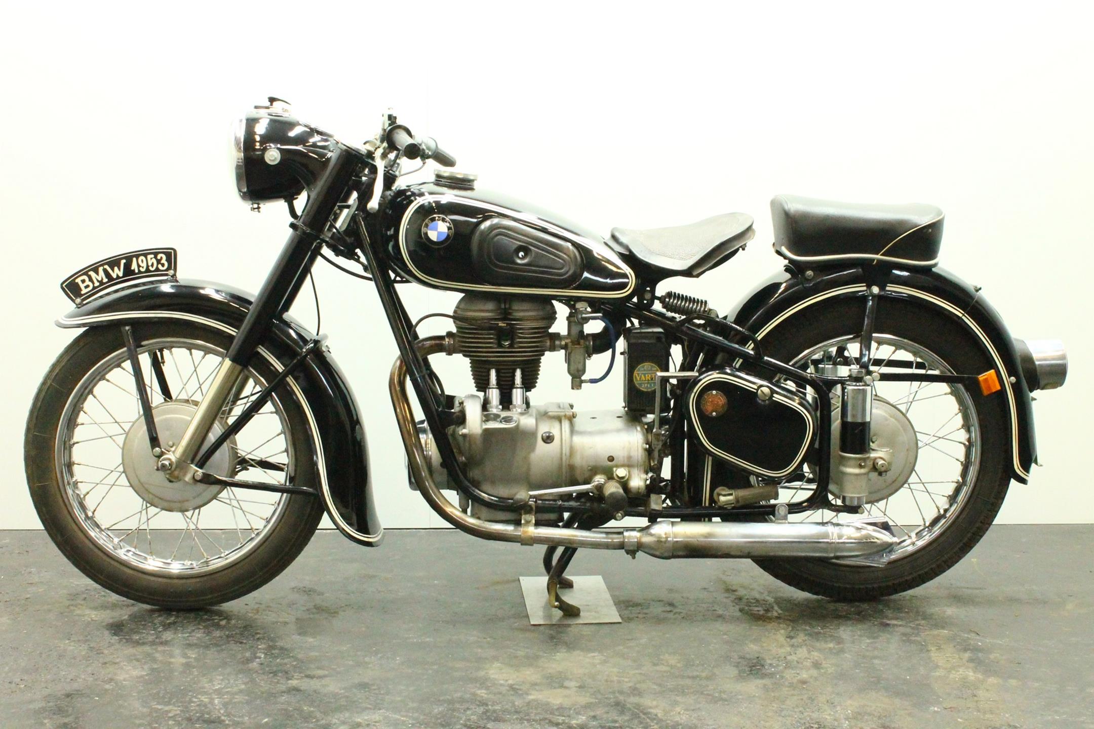BMW's first new post-war model was a single-cylinder design - the 250cc R24 - which arrived in 1948 looking pretty much like the pre-war R23 but producing an additional 2bhp. It was superseded in 1950 by the R25, which featured plunger rear suspension but was otherwise very similar. An improved R25/2 version was introduced during 1951 incorporating a stronger crankshaft and minor revisions to the front mudguard stays and seat springing. Built between 1953 and 1956, the final R25 variant - R25/3 - featured a new telescopic front fork, full-width alloy hubs and alloy wheel rims as the principal upgrades.