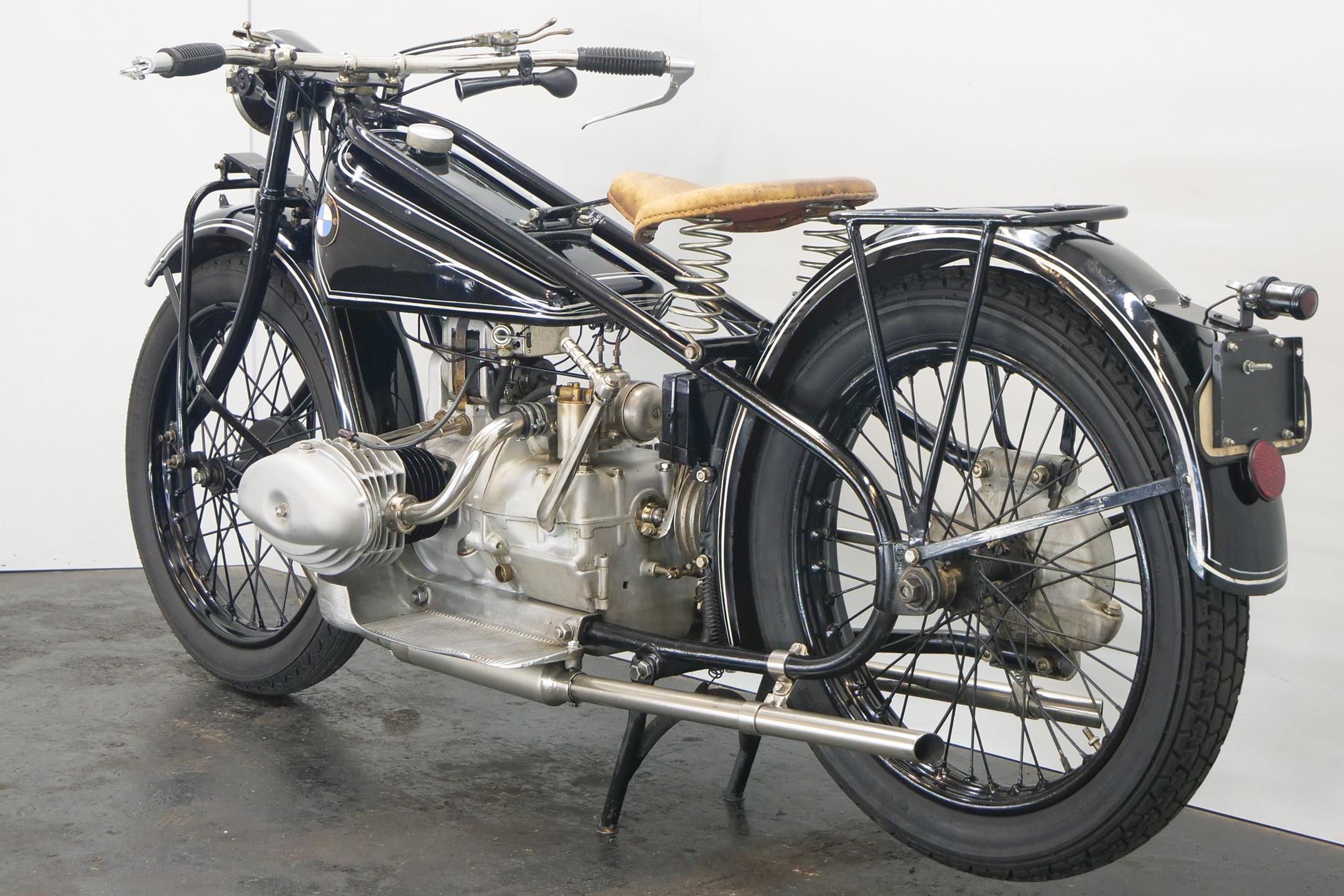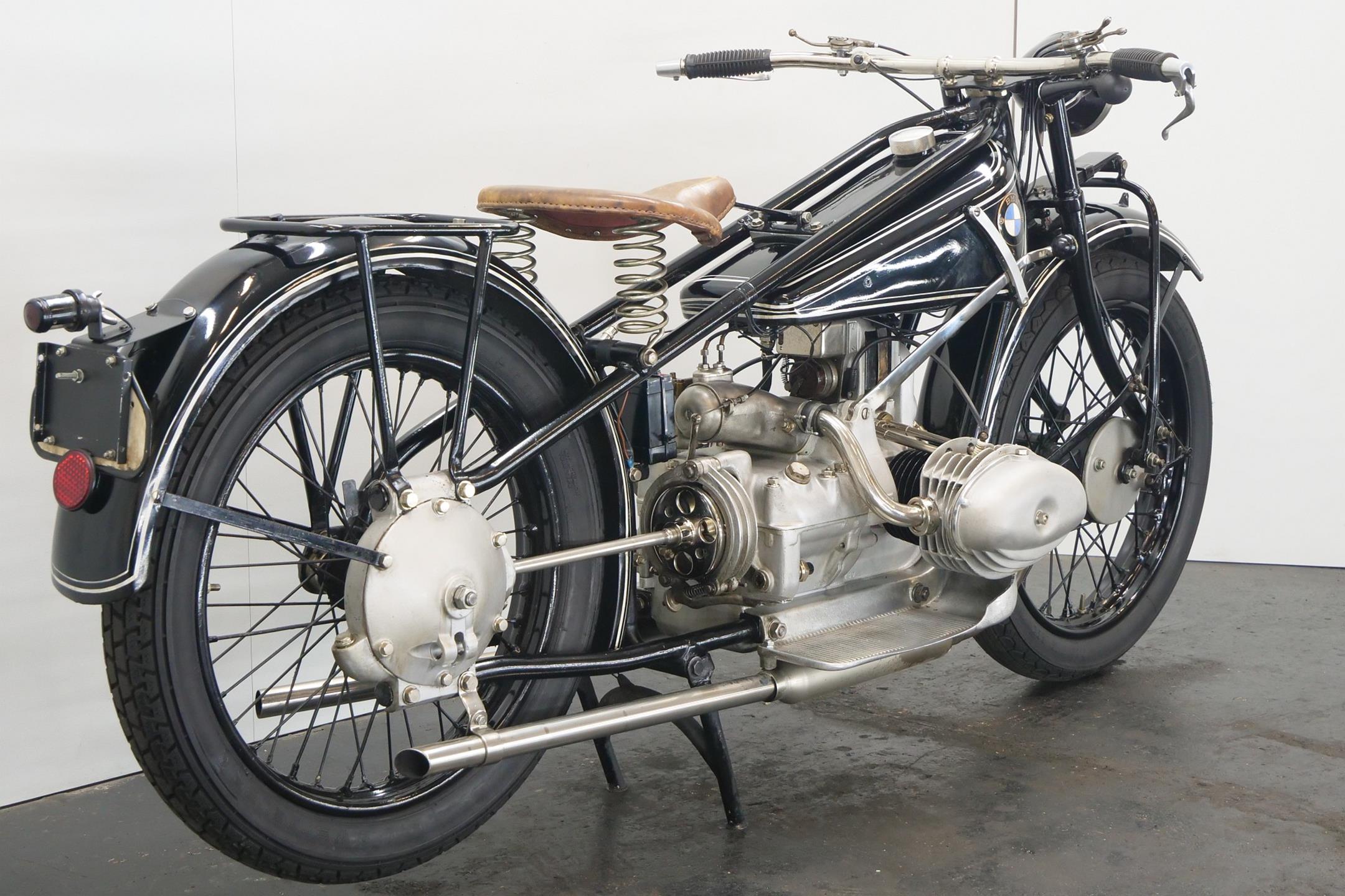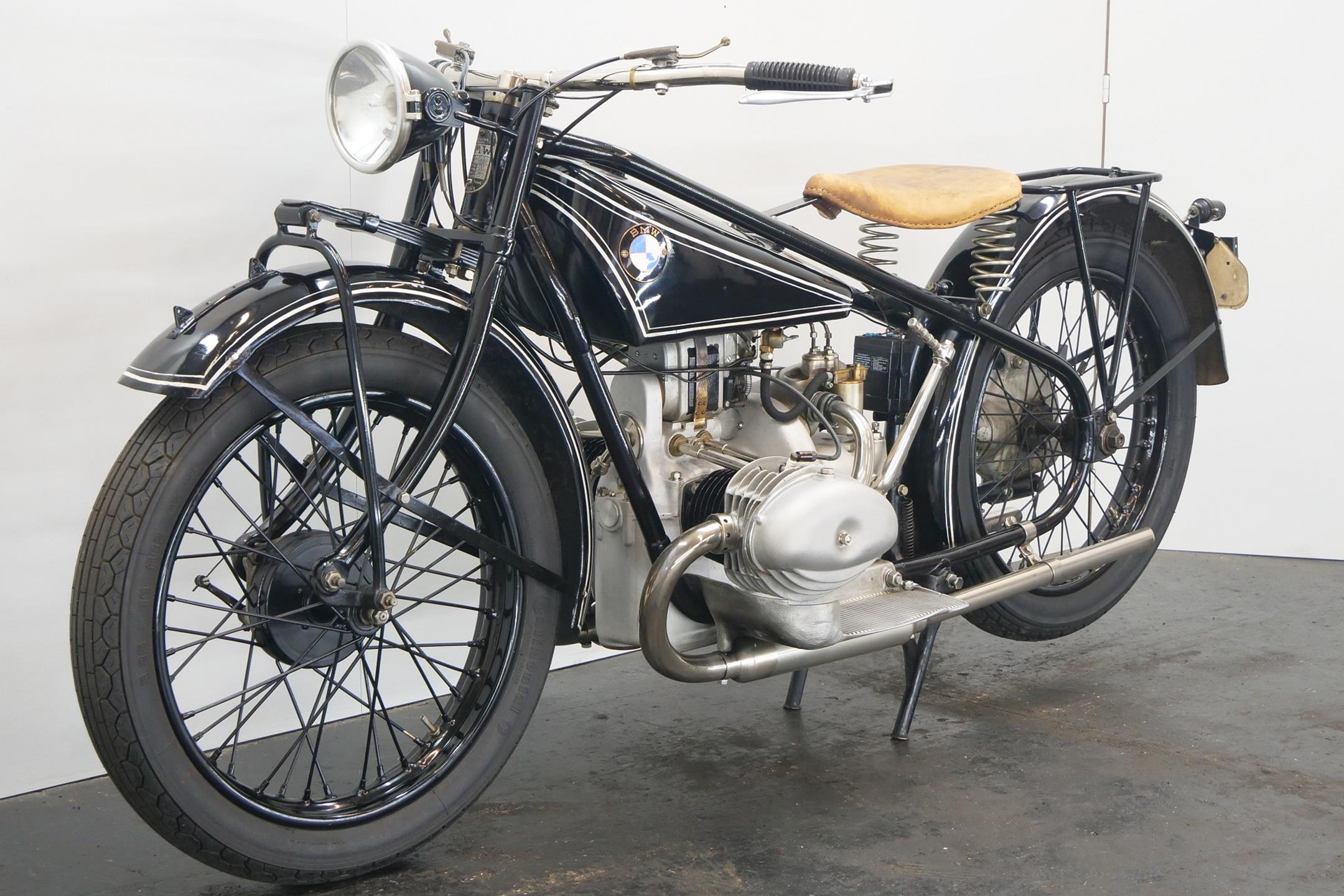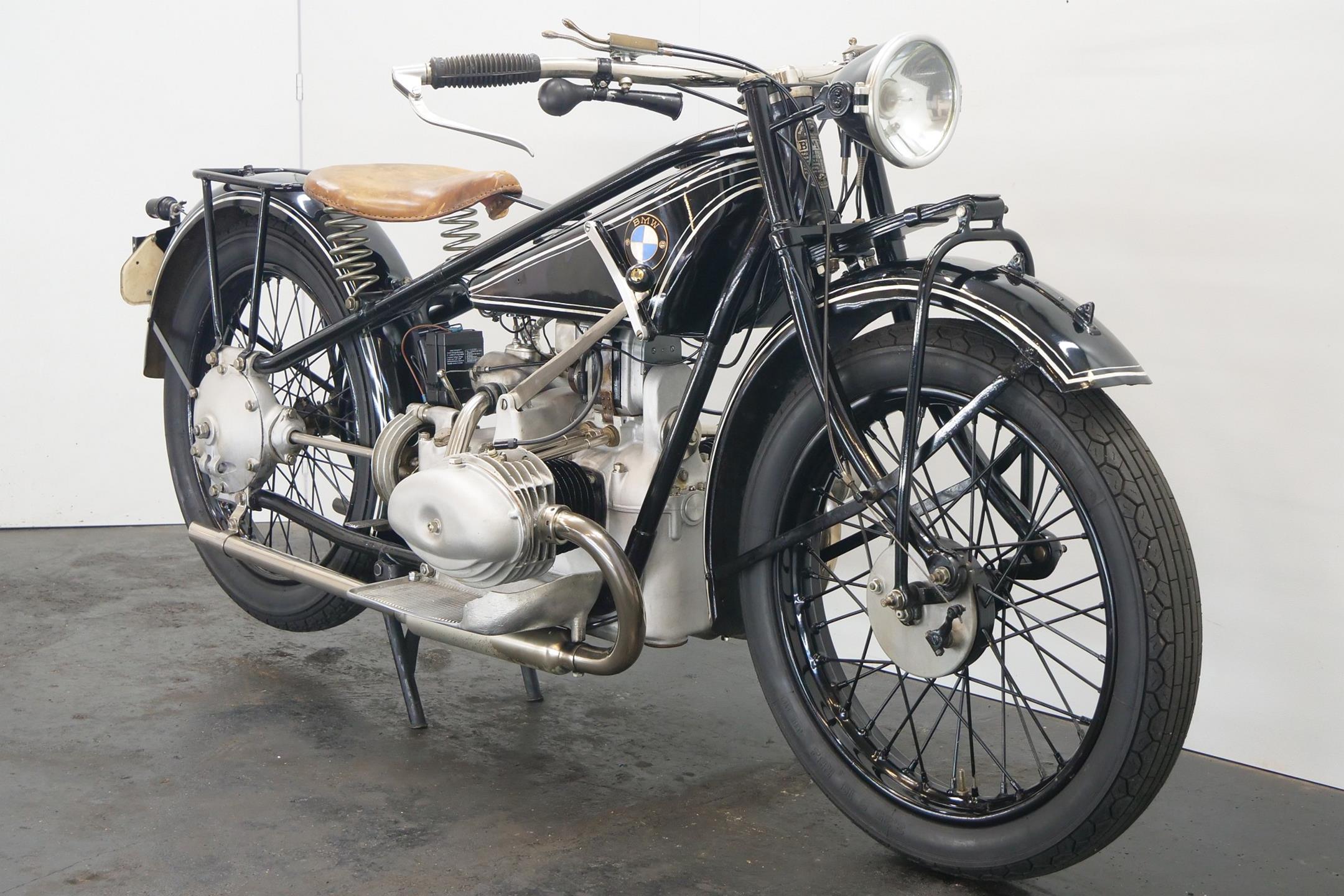 Launched in 1923, the first motorcycle to be sold as a BMW - the R32 - featured a 494cc, twin-cylinder, sidevalve engine having horizontally opposed cylinders, and this 'flat-twin' layout would forever be associated with the marque. The marque's first sports machine, the R37, appeared in 1924. The R37 boasted an overhead-valve engine producing almost double the R32's power output - 16hp, good enough for a top speed of more than 110kmh - but was produced for little more than a year (only 175 being made) before being replaced by the improved R47, the latter featuring increased power (18hp) and a driveshaft-mounted rear brake in place of the R37's block-and-pulley type. The R47's cycle parts were typically BMW, comprising a duplex loop frame and leaf-sprung trailing-link front fork. Top speed was in the region of 110kmh. R47 production lasted for just two years, 1.720 machines being sold.