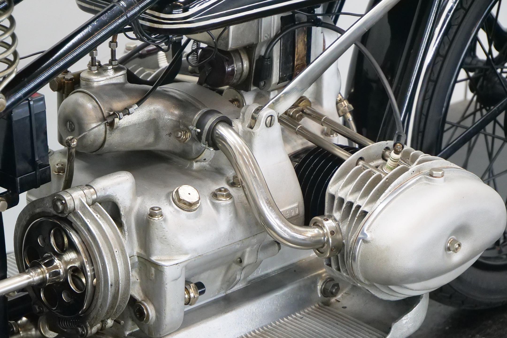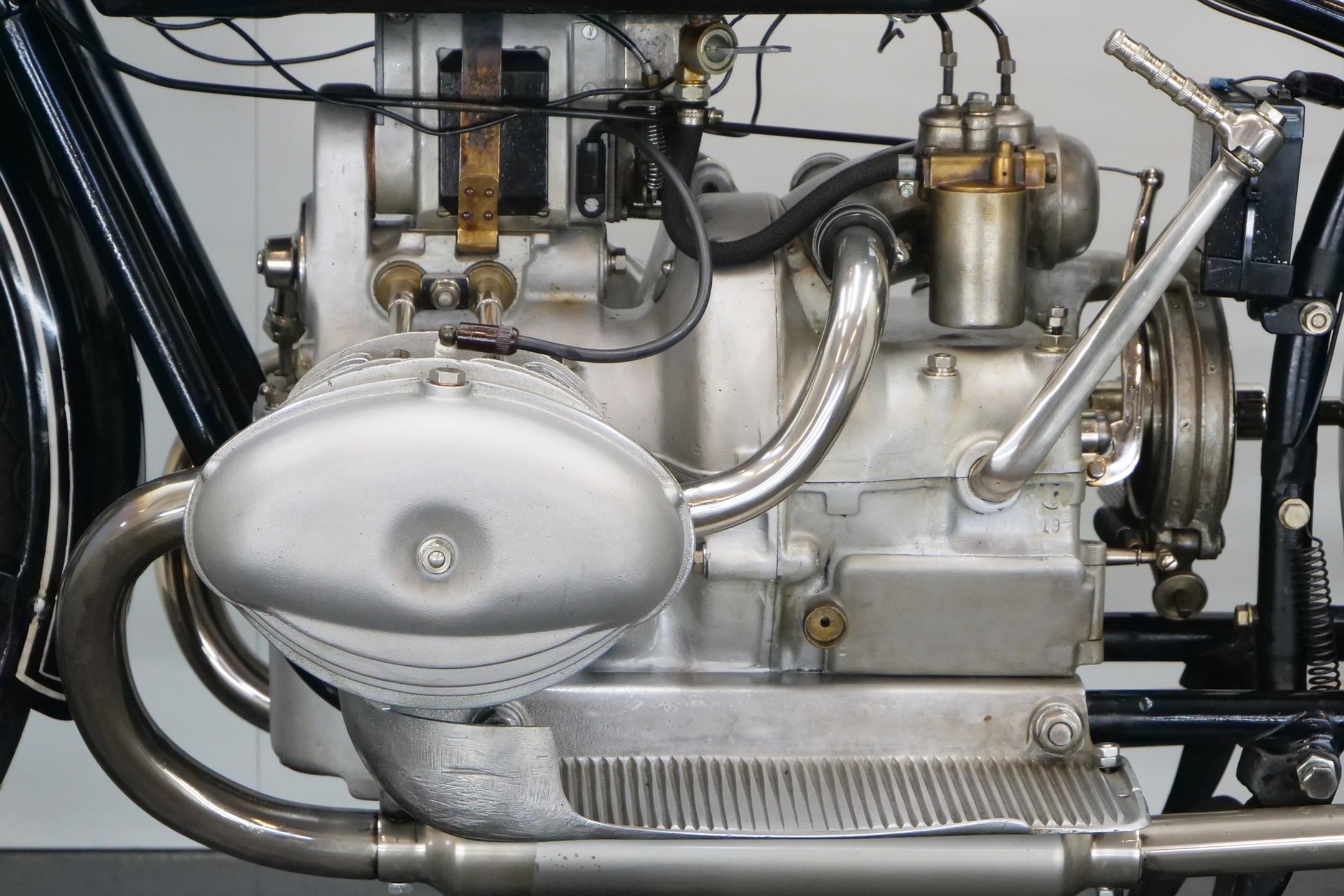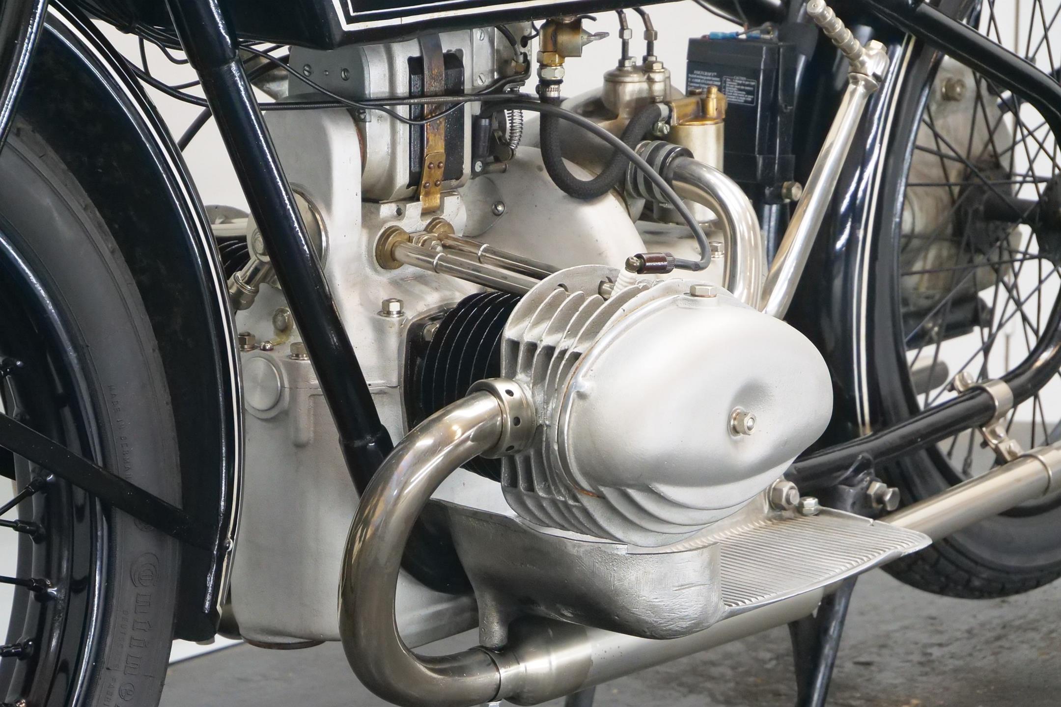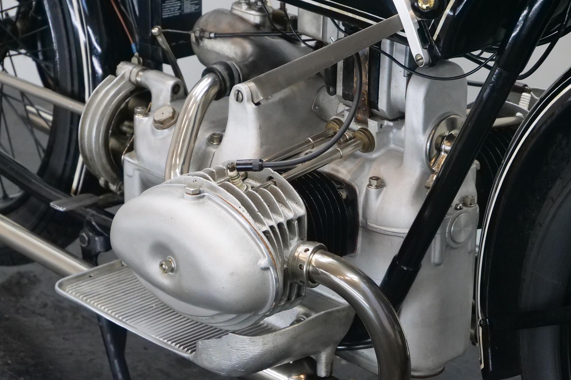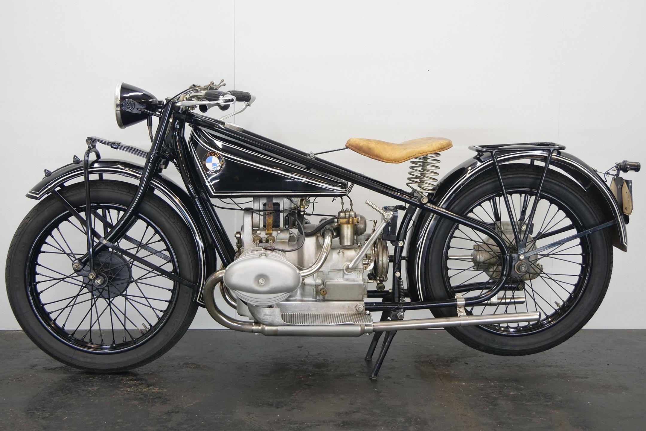 Launched in 1923, the first motorcycle to be sold as a BMW - the R32 - featured a 494cc, twin-cylinder, sidevalve engine having horizontally opposed cylinders, and this 'flat-twin' layout would forever be associated with the marque. The marque's first sports machine, the R37, appeared in 1924. The R37 boasted an overhead-valve engine producing almost double the R32's power output - 16hp, good enough for a top speed of more than 110kmh - but was produced for little more than a year (only 175 being made) before being replaced by the improved R47, the latter featuring increased power (18hp) and a driveshaft-mounted rear brake in place of the R37's block-and-pulley type. The R47's cycle parts were typically BMW, comprising a duplex loop frame and leaf-sprung trailing-link front fork. Top speed was in the region of 110kmh. R47 production lasted for just two years, 1.720 machines being sold.