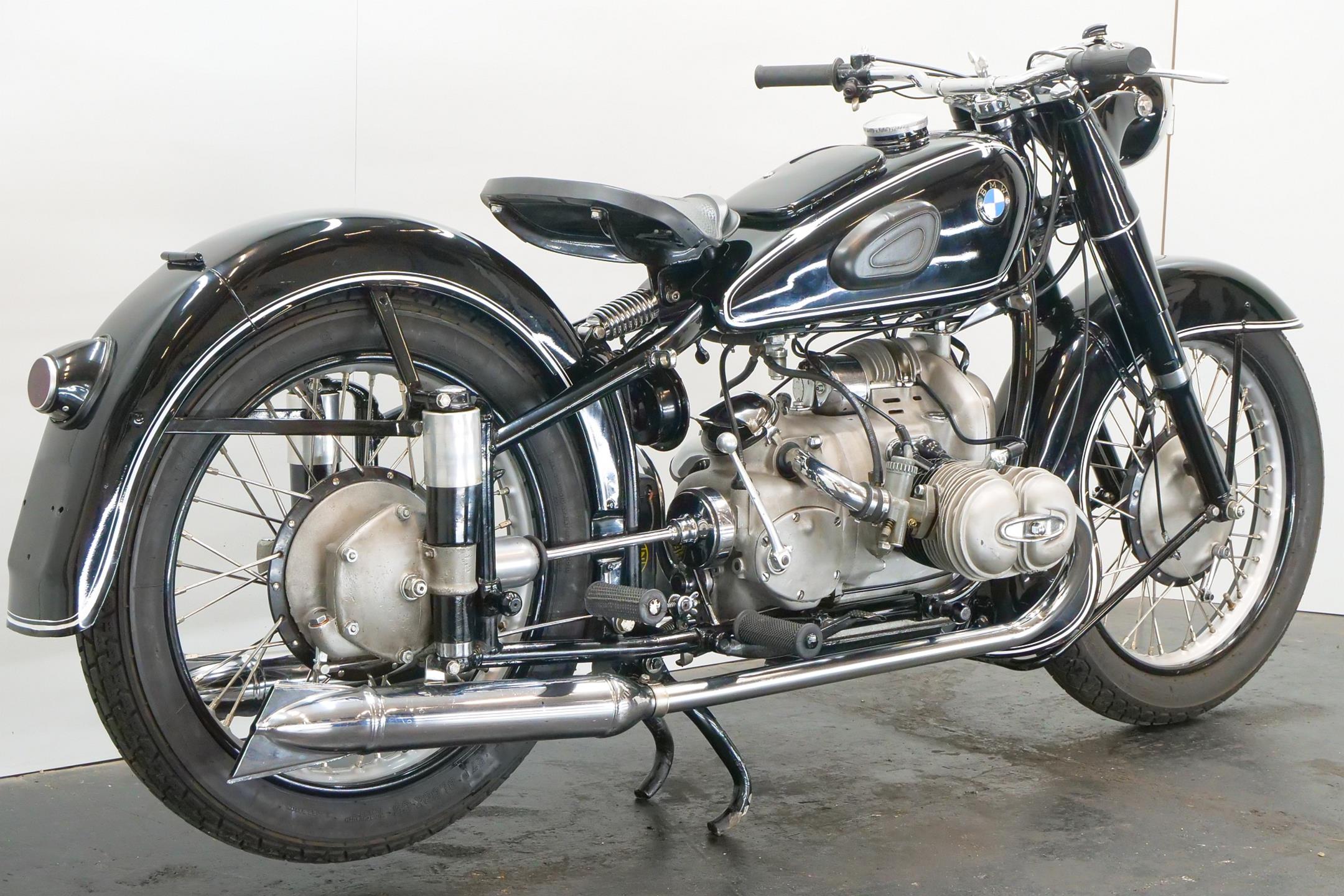 BMW introduced its first post-war twin-cylinder model in 1949. This was the R51/2 based, as its designation suggests, on the pre-war R51. Introduced in 1938, the latter was an updated version of the R5 of 1936, which had represented a new departure for BMW by virtue of its method of valve actuation, adopting two chain-driven camshafts that permitted shorter pushrods and higher revs. The R51 deployed the R5-type engine in new cycle parts that featured a telescopic front fork and plunger rear suspension, while improvements incorporated into the post-war R51/2 included a two-way damped front fork, a gearbox main-shaft damper and a strengthened frame.