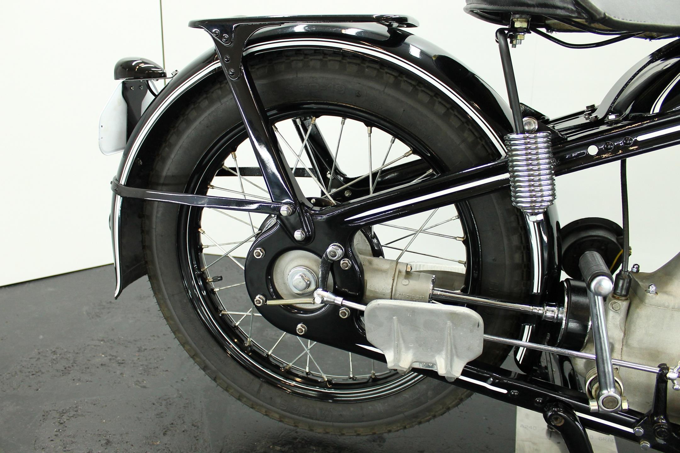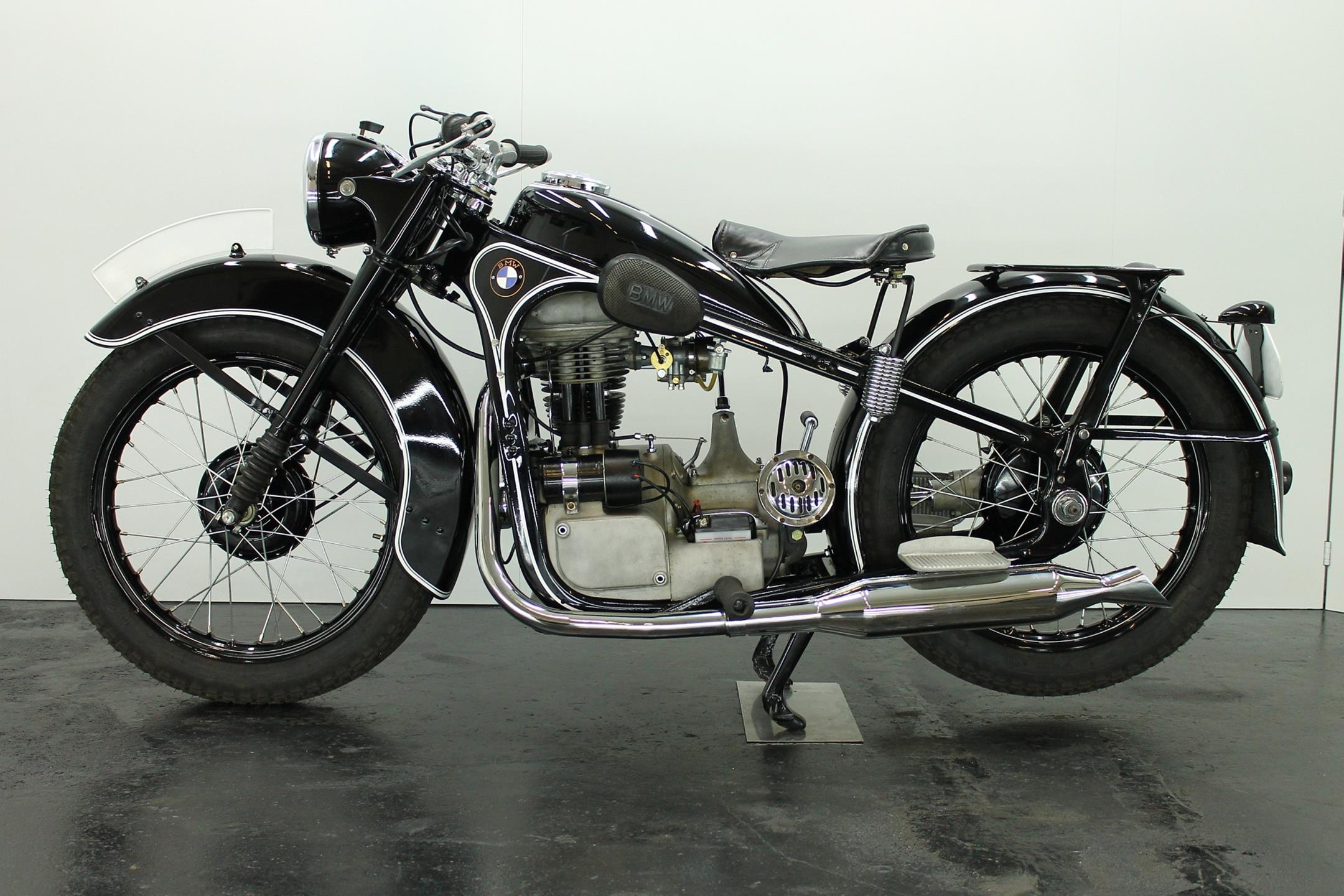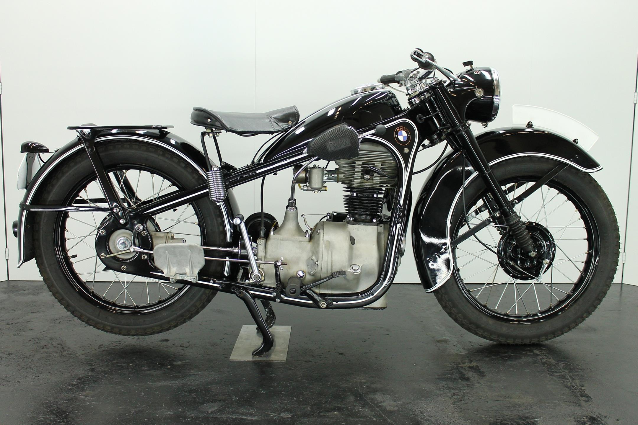 BMW made a host of successful shaft-driven, single-cylinder motorcycles. Starting with the first model, the 250cc 1925 R39, there came the R2 series, the R35, the R20, the R24, R25 series, the R26, and the final model, the R27. All except for the R2, R4, and R35 were 250cc models. After World War II, BMW no longer made R35 motorcycles. "Eisenacher Motorenwerk" (EMW) was an East German manufacturer of automobiles and motorcycles based in Eisenach, then East Germany. It made R35s essentially identical to the pre-war BMW R35. One of the pre-World-War-II BMW factories was located in Eisenach, which after the war was taken over by the Soviets as it was located in the Soviet occupation zone. The factory continued producing cars and motorcycles using the BMW logo, but after a lawsuit in 1952 it had to change the name to EMW instead. When the Soviets occupied the eastern sector of Germany after WWII, they took over one of BMW's factories in Eisenach and began building motorcycles and cars under the BMW marque. BMW sued successfully in 1952 and the East German factory changed it's product name to EMW, and also changed the logo design and it's colour from blue to red. After the R3 with its 300cc engine had enjoyed very little commercial success, BMW introduced a new single-cylinder model in 1937, the R35. Its engine was derived from the 400cc R4, but by reducing the bore the displacement was decreased to 350cc. The R35 also developed 14 horsepower and like the R4 had a top speed of 100km/h. The suspension had in the meantime been modernized. The frame was still made from massive-looking pressed steel sections but the antiquated leaf spring at the front was now replaced by a modern telescopic fork. In contrast to the exclusive "Boxer" models, however, there was no hydraulic damping. By the close of production, the R35 was the most successful model in BMW's motorcycle history and when you see the bikes today, it's easy to understand where the appeal lies.