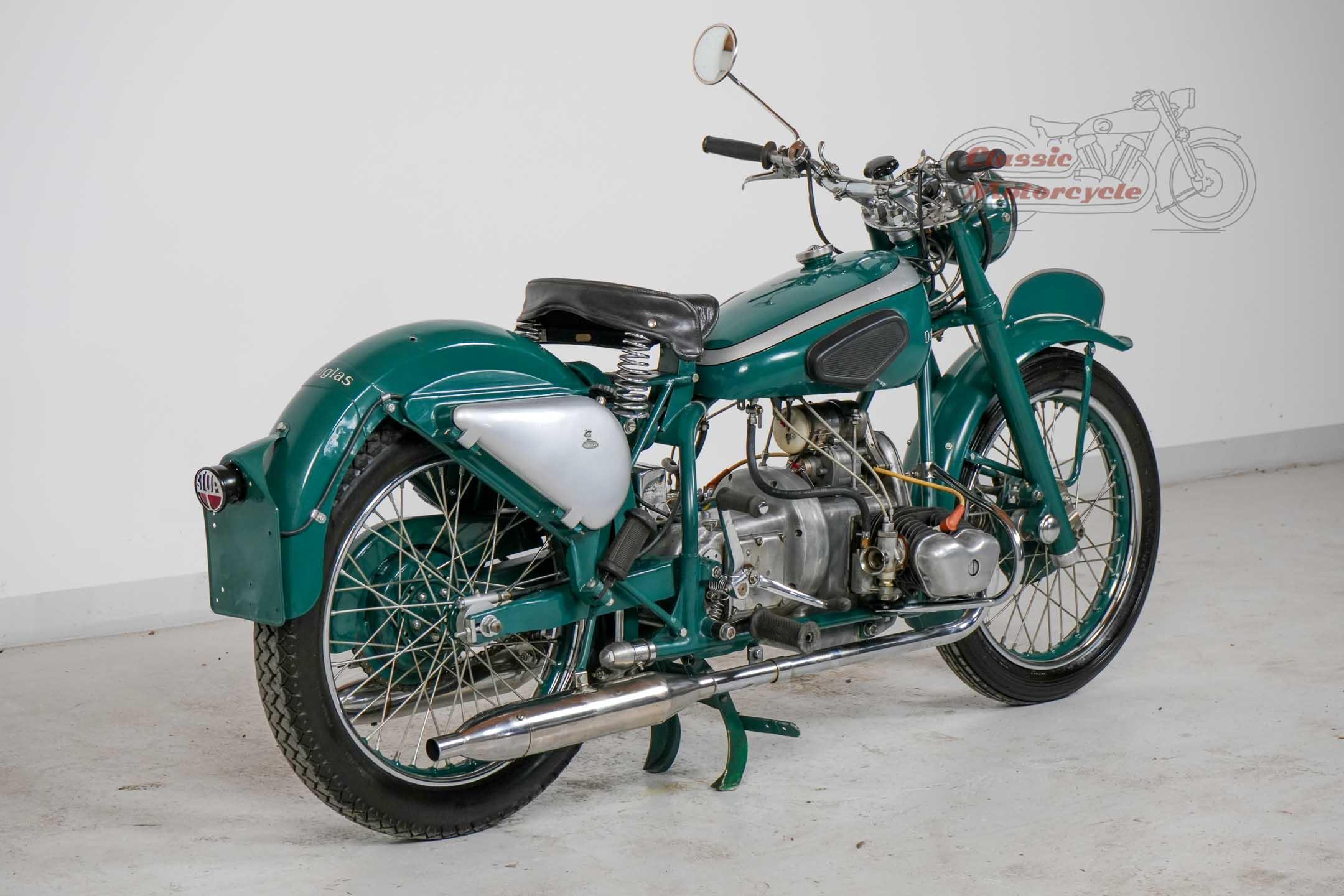 The motorcycle was restored a few years ago and is in roadworthy condition. The Douglas starts well and runs smoothly. The motorcycle offers a perfect entry into the boxer engine class. She has complete papers from Austria.