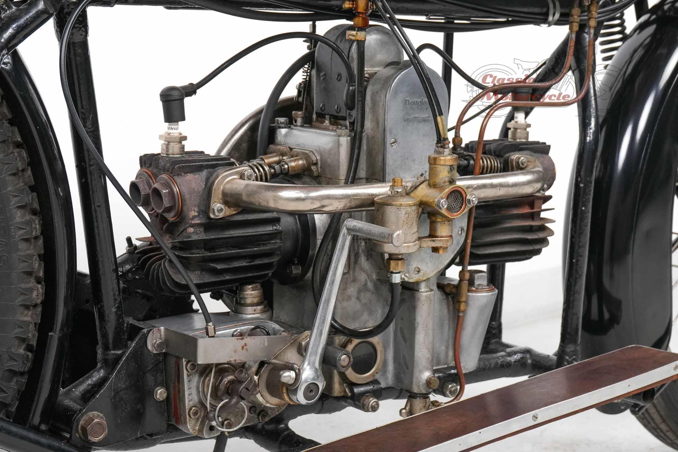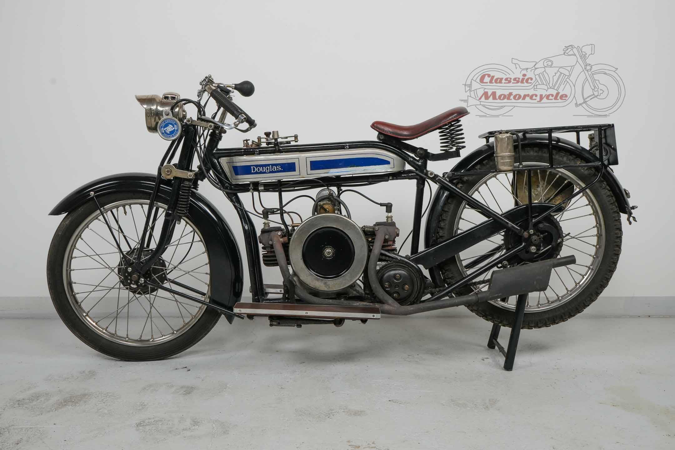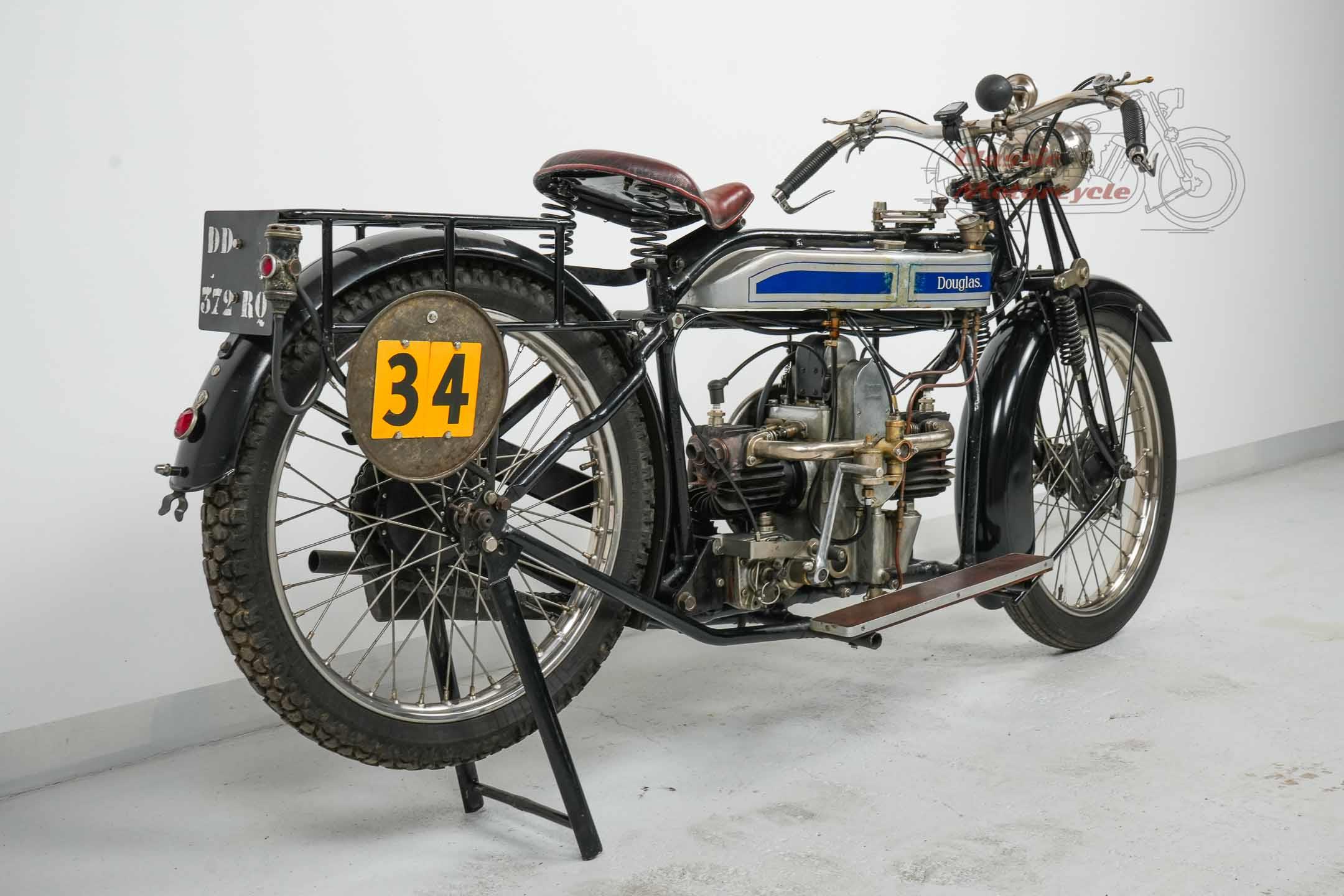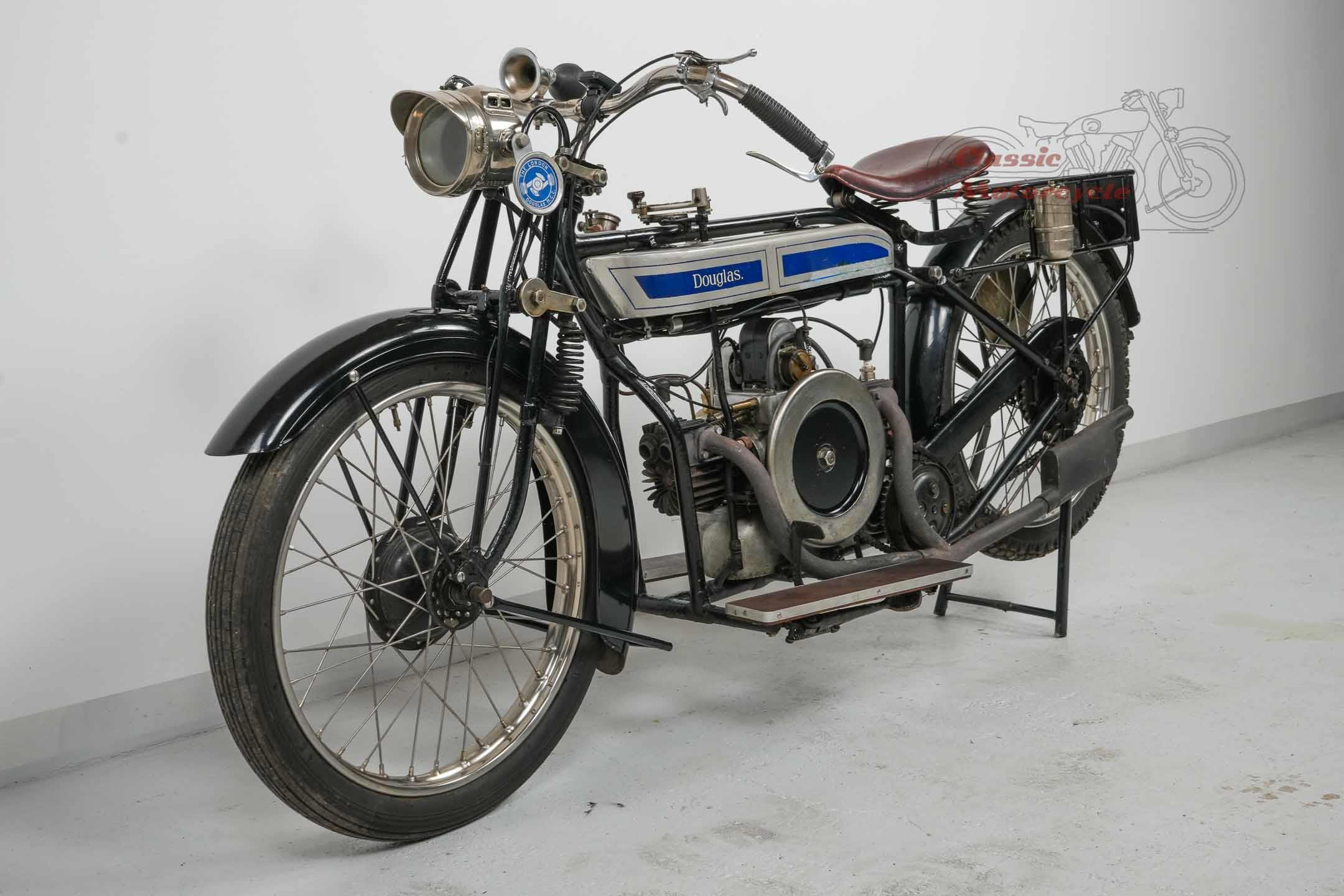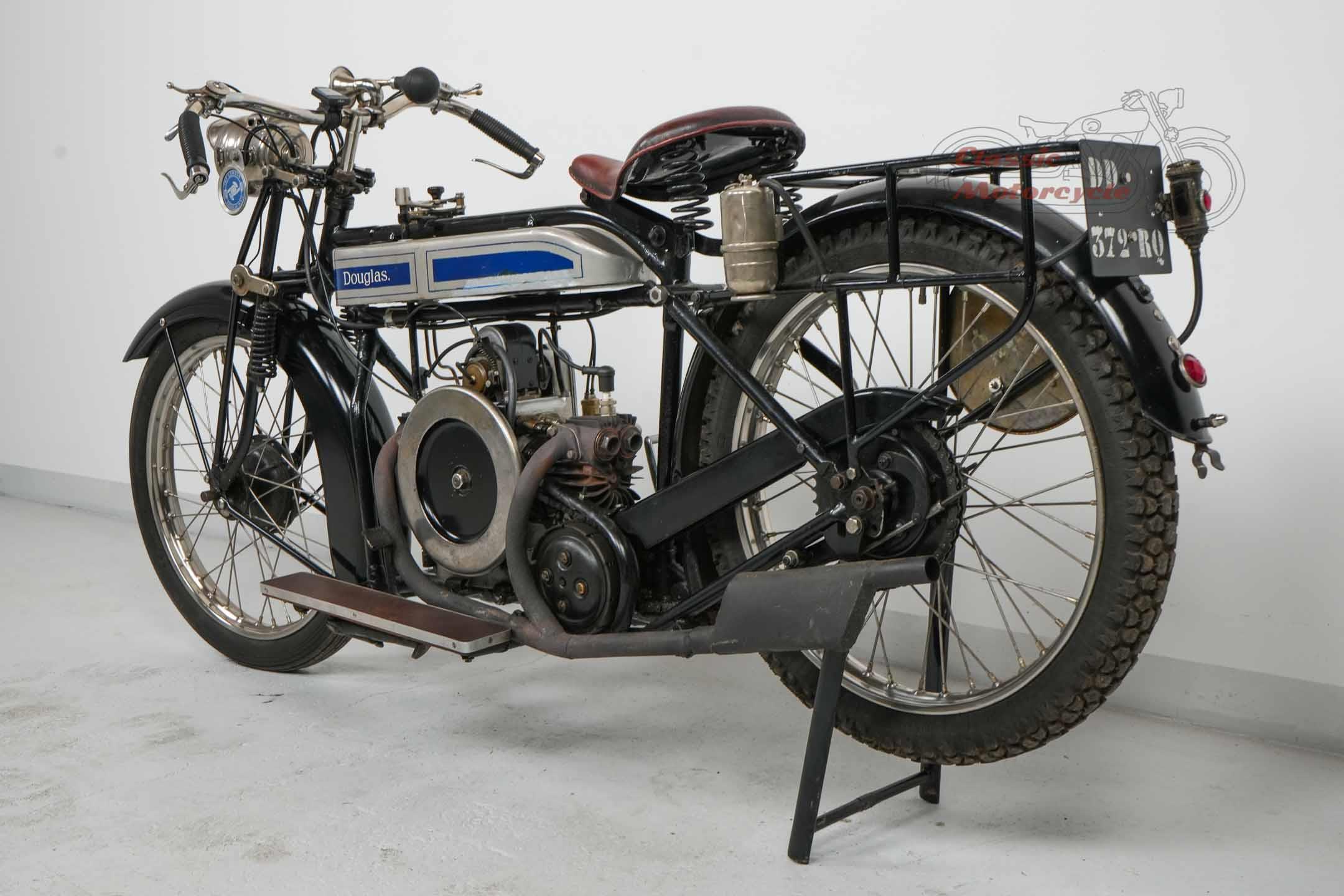 We are offering a Douglas from 1920 with 600cc. The machine was last started a few years ago and has been on display in a private collection since then. In the past it was converted from belt drive to chain drive with Sturmy Archer gearbox. The documents for this machine are very extensive. There is a dating certificate, papers from France, VC5 from Great Britain and a full inspection from Germany. The machine is also registered in the Machine Register of the Douglas Club.