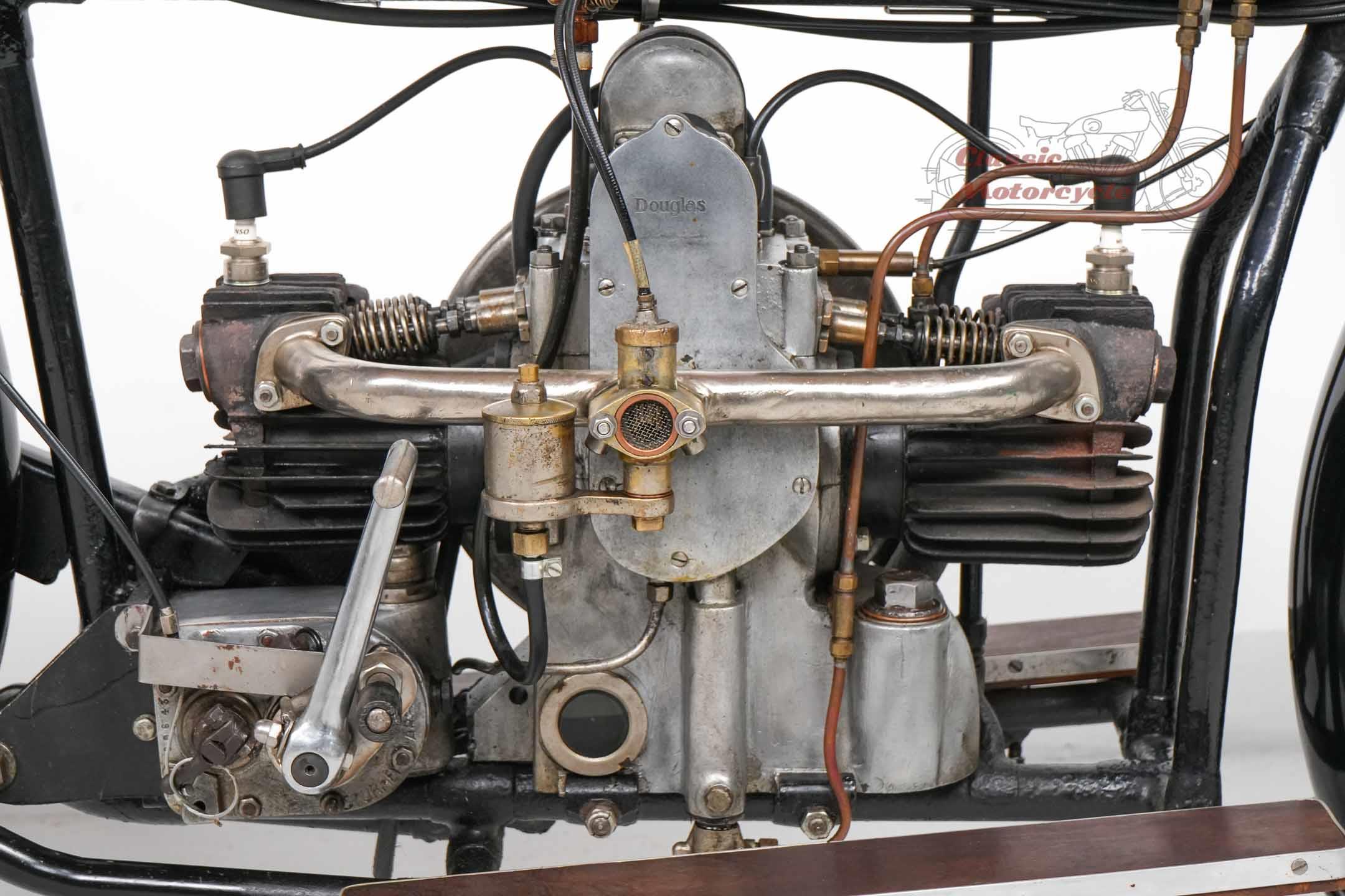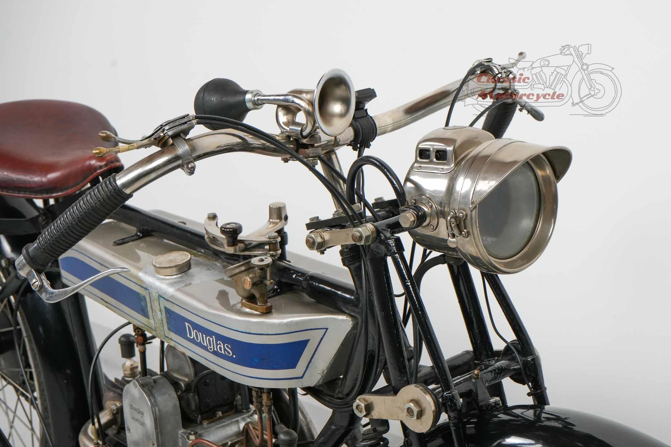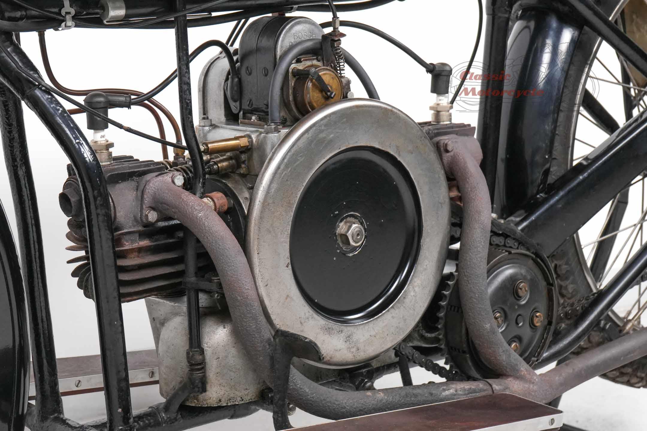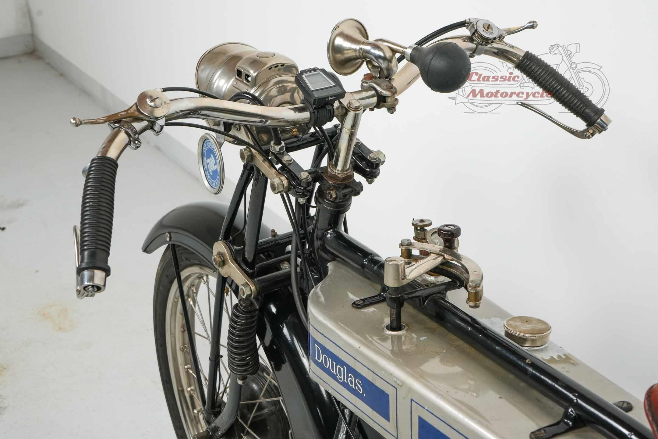 We are offering a Douglas from 1920 with 600cc. The machine was last started a few years ago and has been on display in a private collection since then. In the past it was converted from belt drive to chain drive with Sturmy Archer gearbox. The documents for this machine are very extensive. There is a dating certificate, papers from France, VC5 from Great Britain and a full inspection from Germany. The machine is also registered in the Machine Register of the Douglas Club.