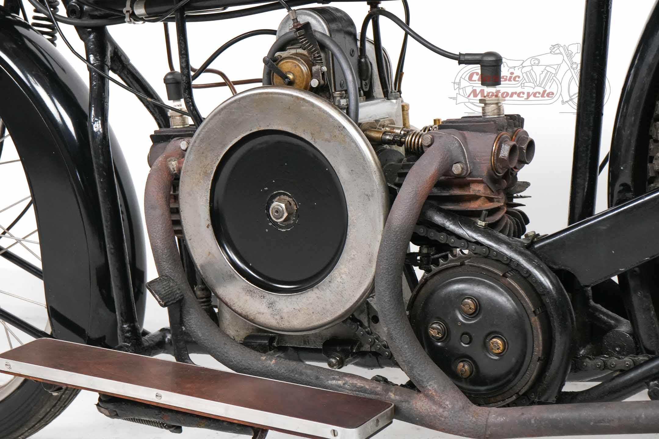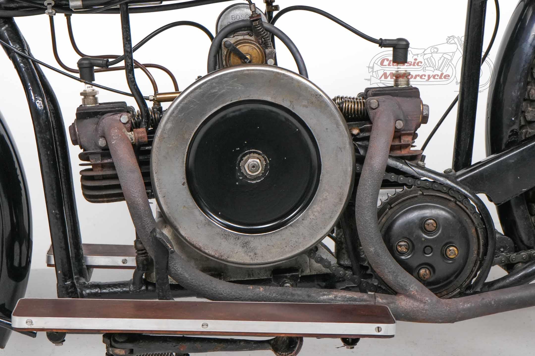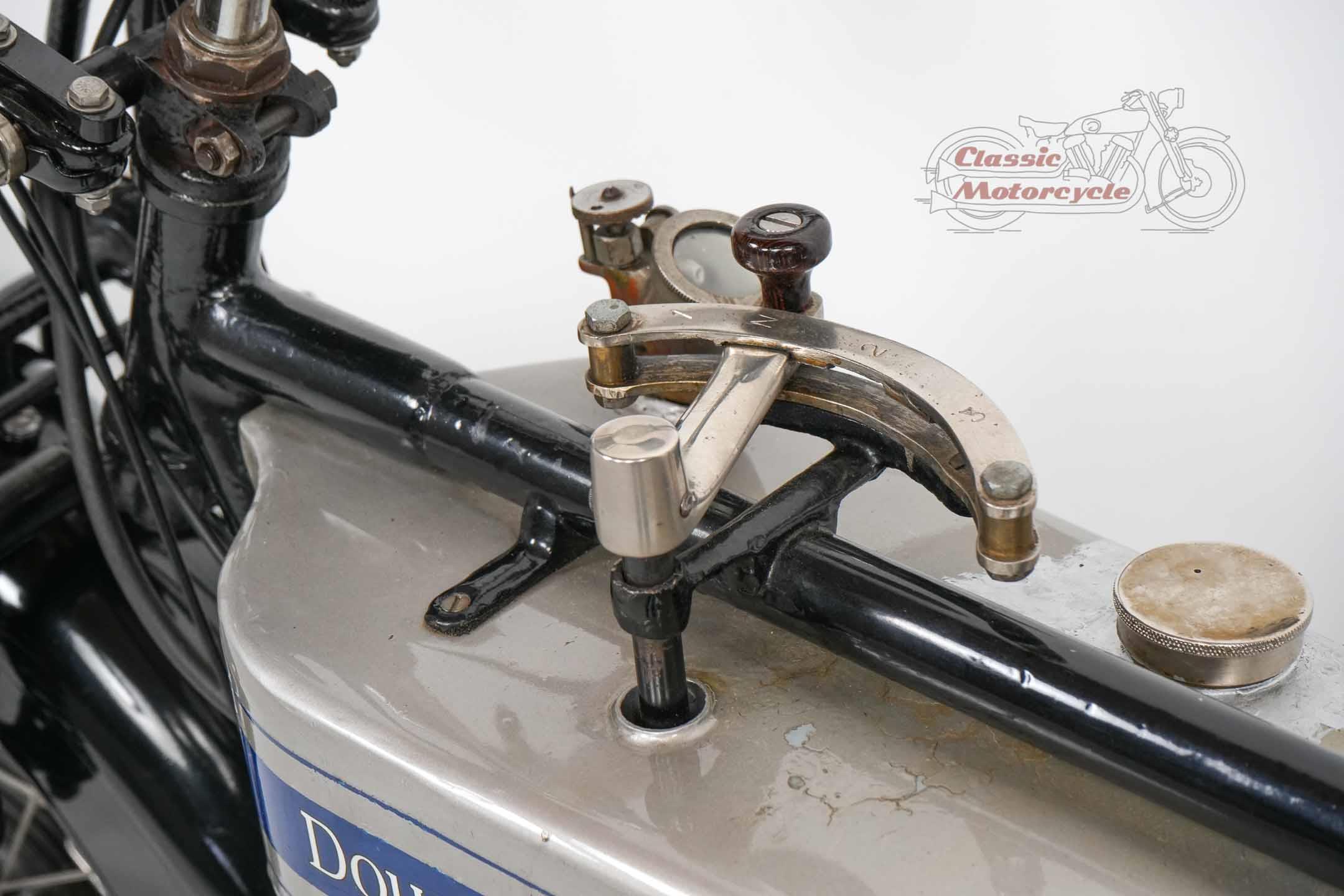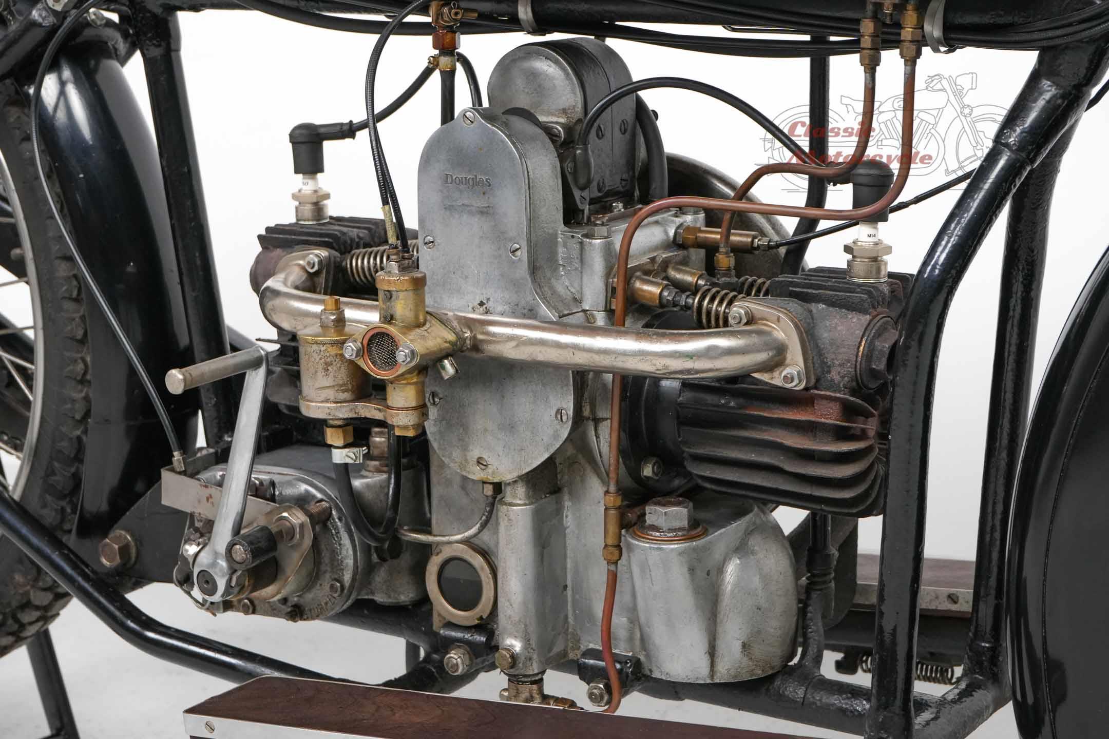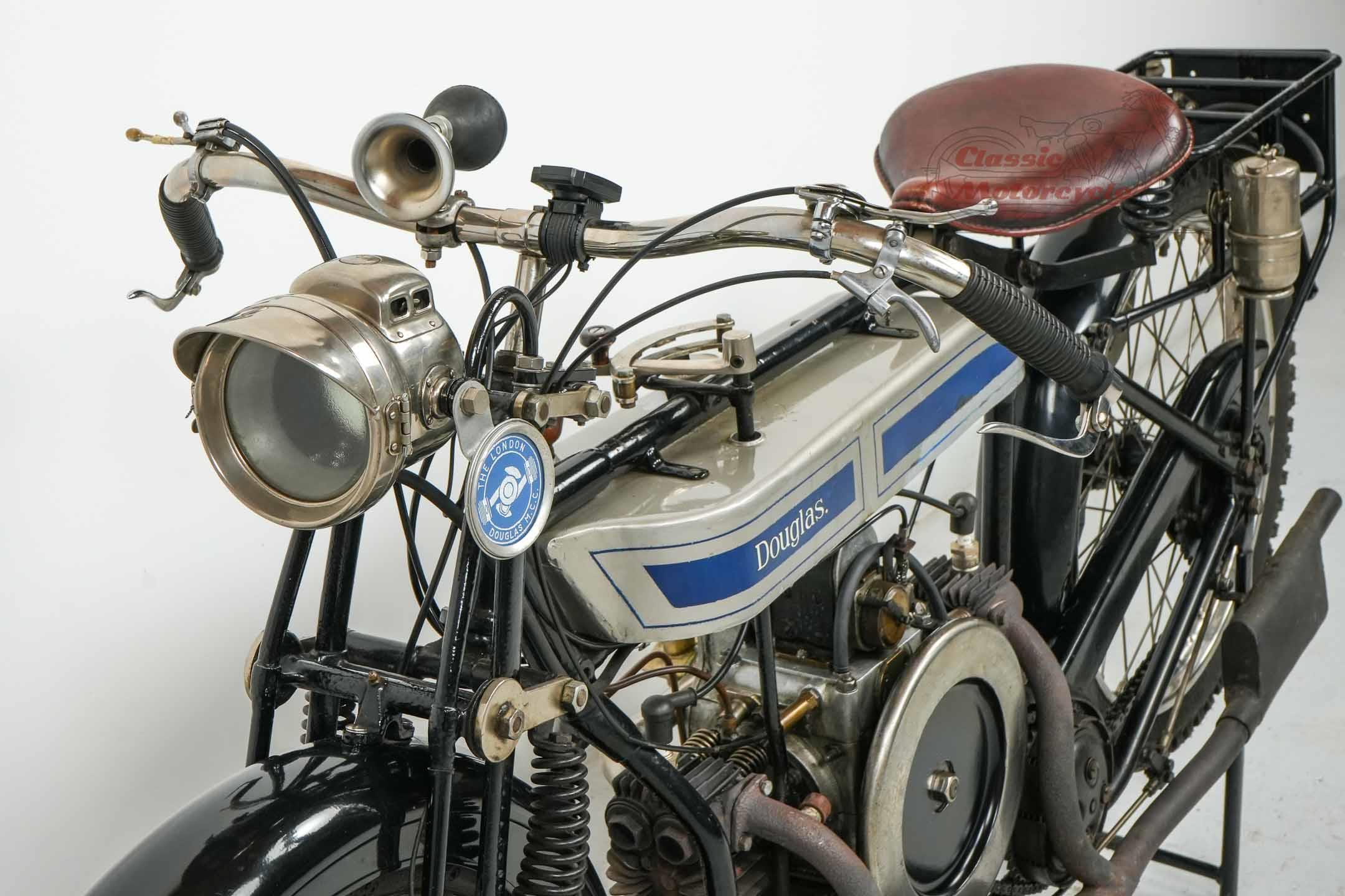 We are offering a Douglas from 1920 with 600cc. The machine was last started a few years ago and has been on display in a private collection since then. In the past it was converted from belt drive to chain drive with Sturmy Archer gearbox. The documents for this machine are very extensive. There is a dating certificate, papers from France, VC5 from Great Britain and a full inspection from Germany. The machine is also registered in the Machine Register of the Douglas Club.