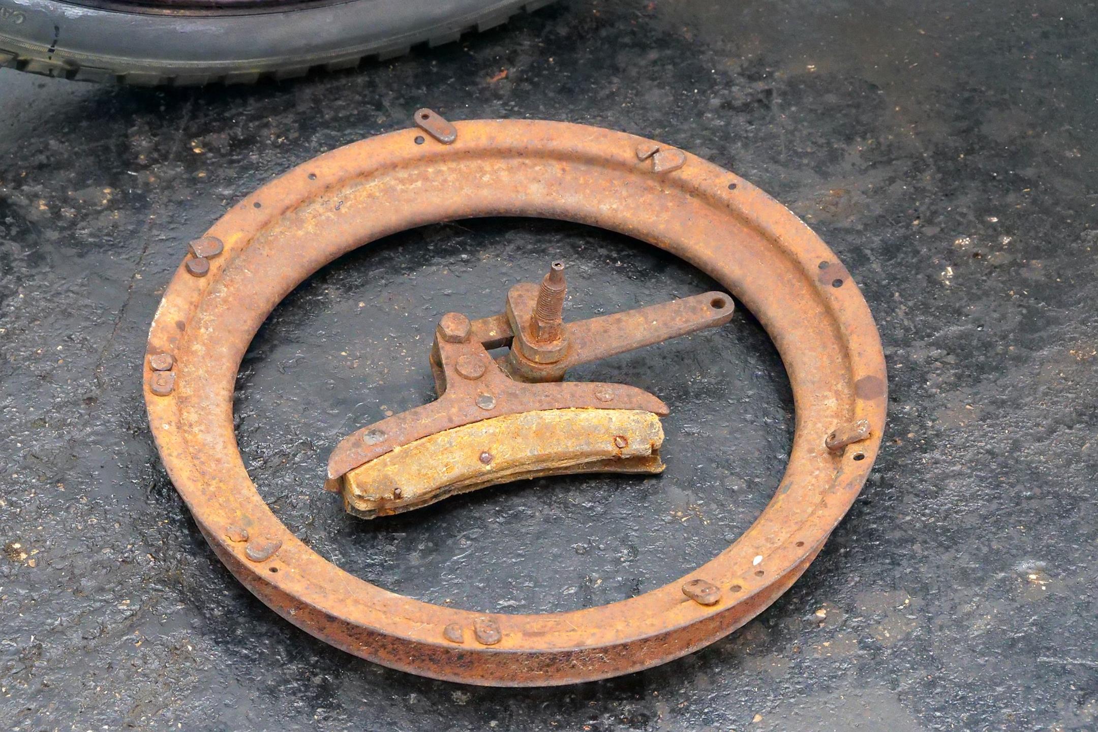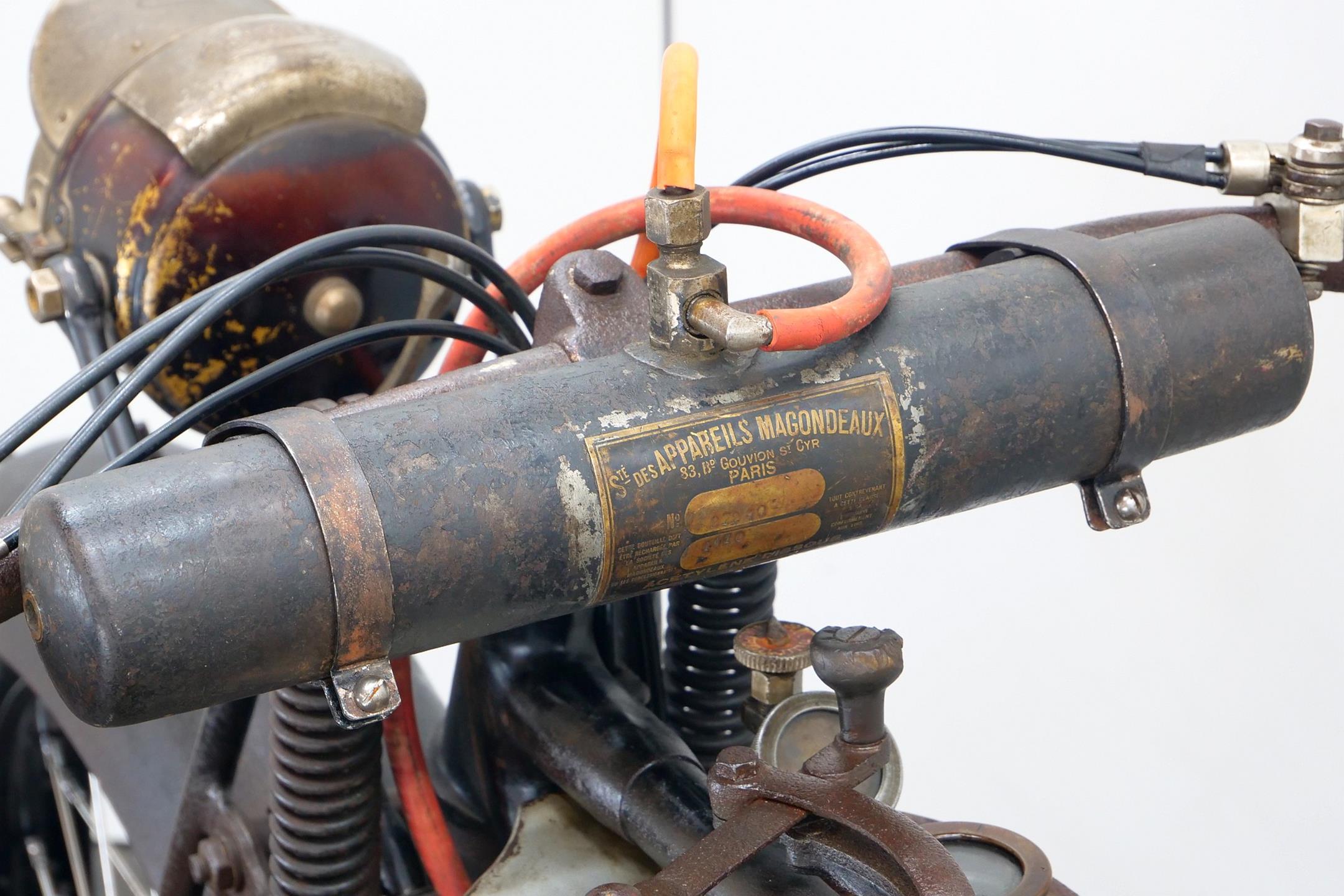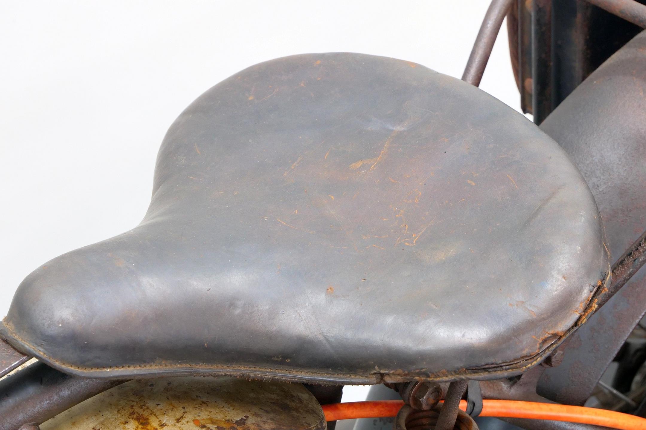 This reliable Douglas bears its first paint and runs fine. The front brake is dismantled -> the front belt rim brake parts are included. It is equipped with an acetylene lighting set, BTH magneto, AMAC carburetor and a practical clutch.
