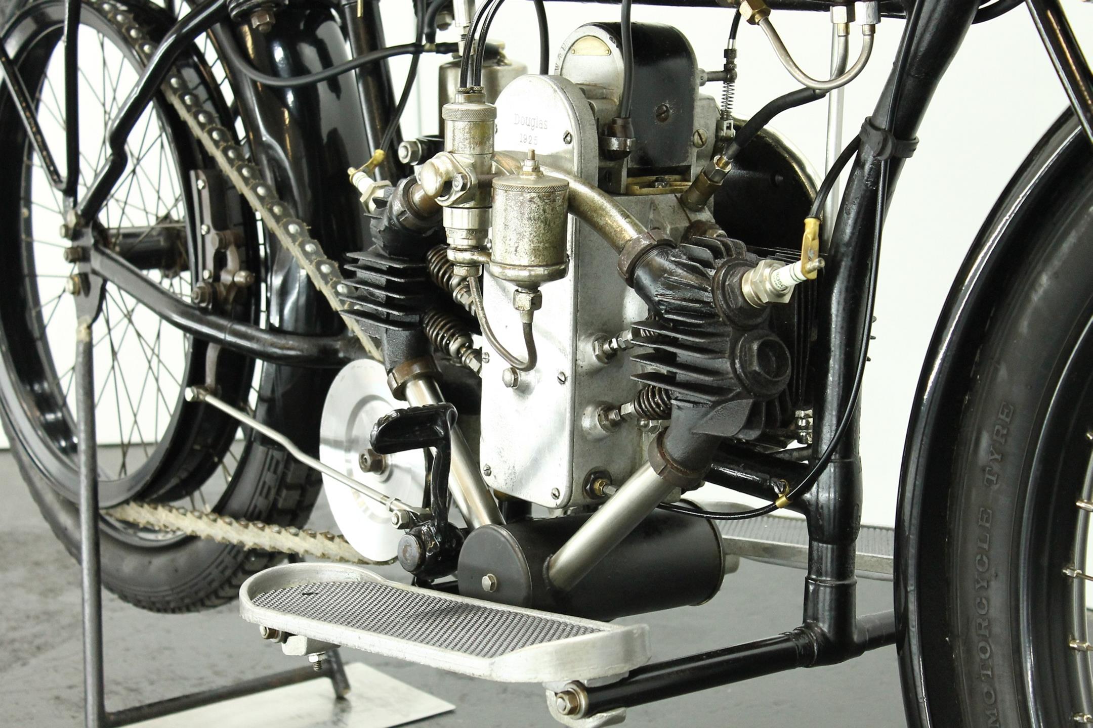 The Bristol-based Douglas Foundry took up motorcycle production in 1907 with a machine powered by a horizontally-opposed, twin-cylinder engine, and the company would keep faith with this layout until it ceased motorcycle production in 1957. Fore-and-aft installation made for a slim machine with a low centre of gravity, and the design's virtues were soon demonstrated in competition, 2¾hp Douglas machines taking 1st, 2nd and 4th places in the 1912 Junior TT in the Isle of Man. Douglas were quick to realise the advantages of the countershaft gearbox, its three-speed entries gaining the Team Prize in the 1914 Six Days Trial, a conspicuous success that resulted in the firm obtaining a wartime contract for the supply of military machines. Douglas' success continued after The Great War. In its publicity announcing the 1924 models the company claimed that 'well over 75,000 Douglas 2¾hp machines are giving satisfaction every day to their owners.' No need was seen for major changes: 'For many years now it has not been found necessary to alter the main design, which incorporated the vibrationless twin-cylinder engine, because, as a mount world famous for economy, ease of control and great comfort, it had withstood the buffeting and battering of every clime since 1908, under all conditions, in the hands of riders of both sexes and all ages.' It would be another two years before a wholesale revision by Chief Designer Cyril Pullin saw the new EW model emerge.