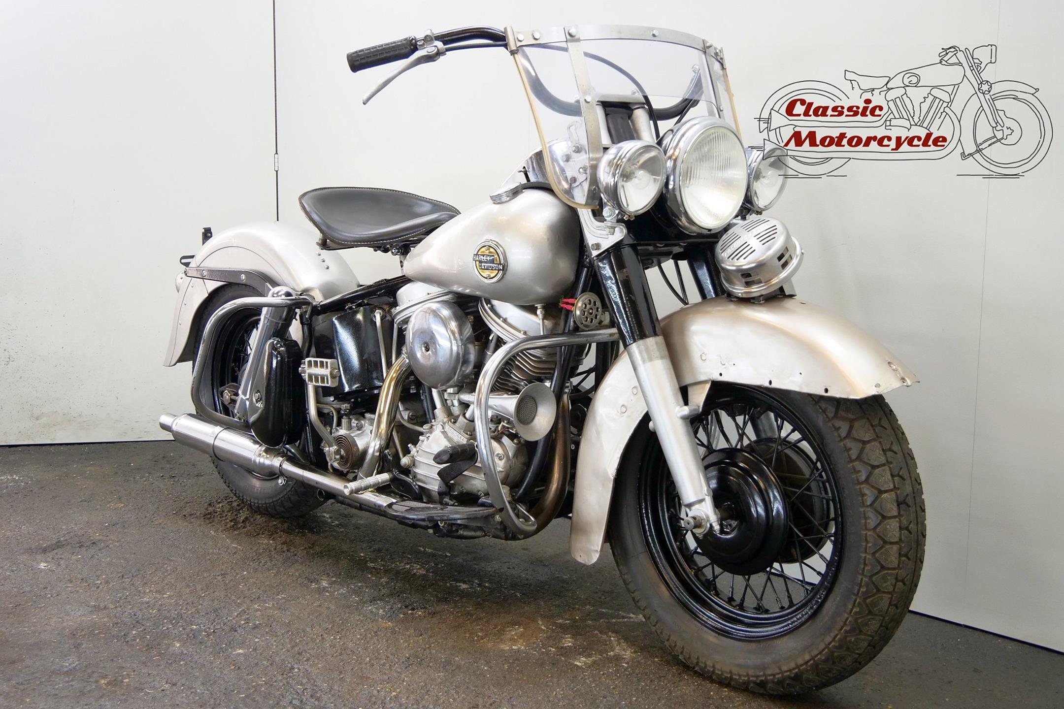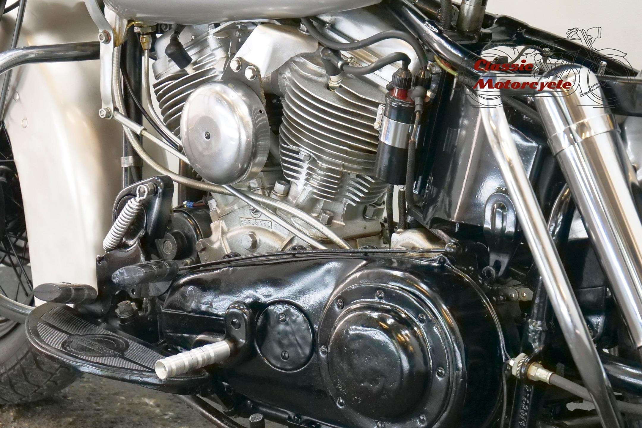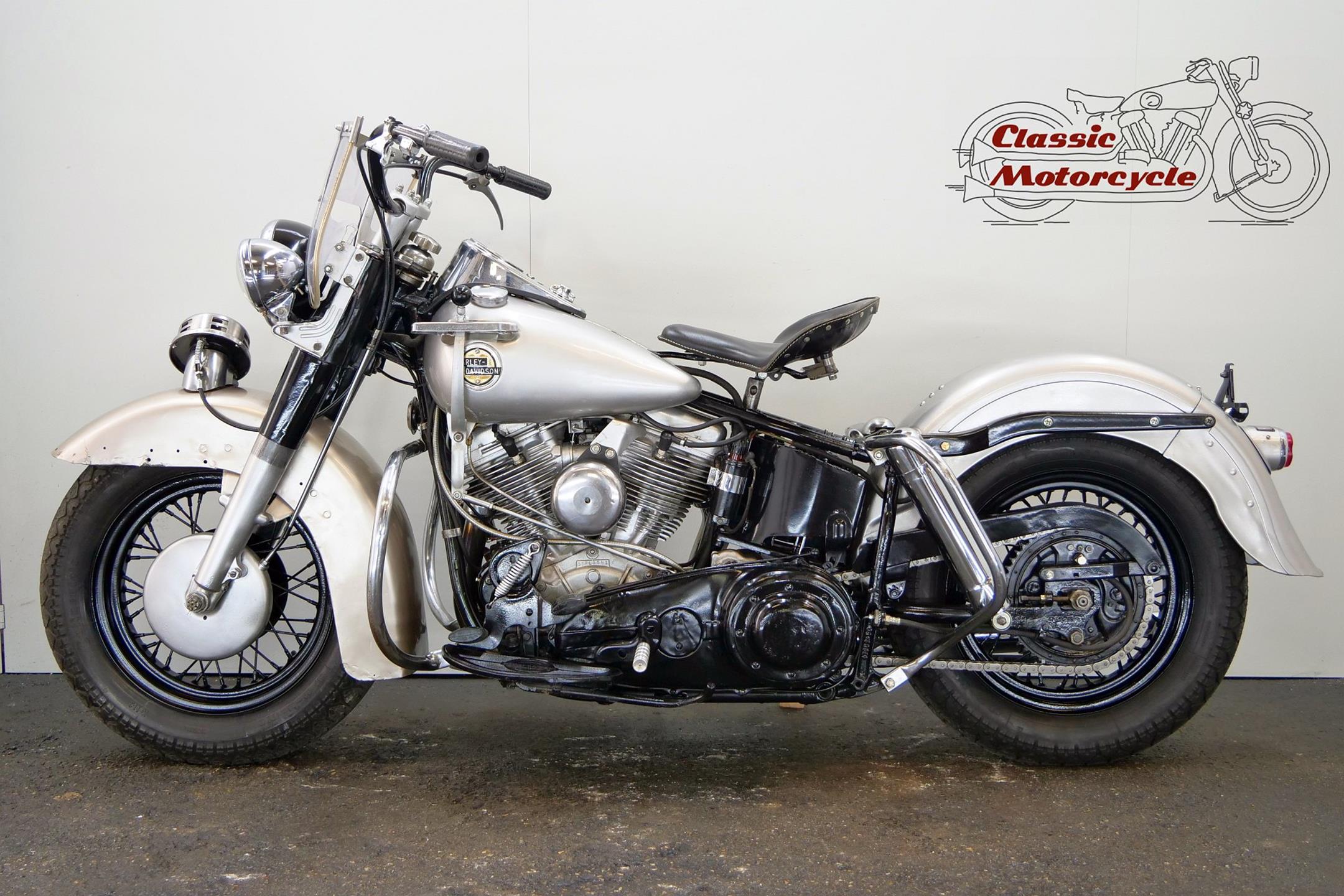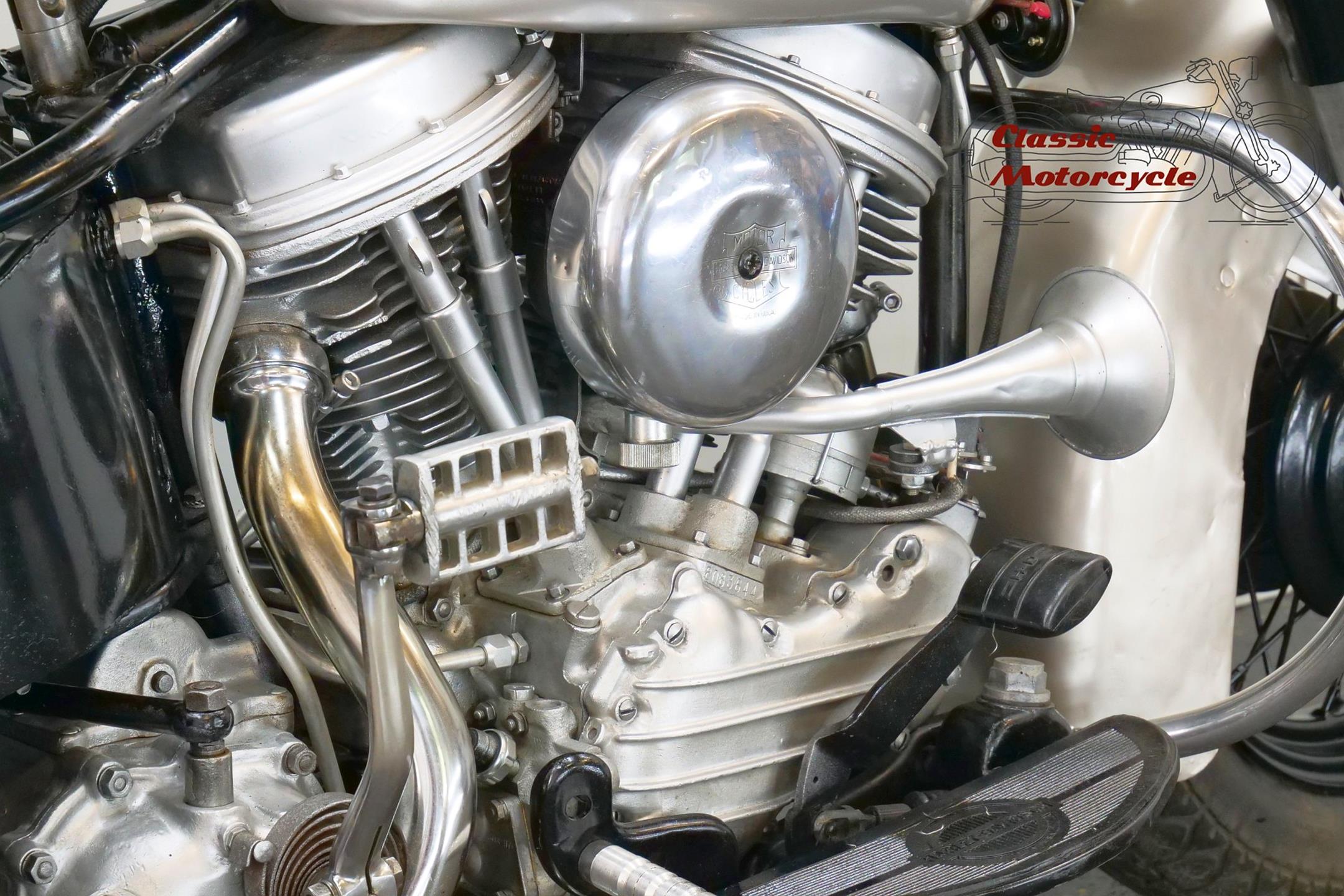 By the late 1940s the ‘Knucklehead’ - Harley-Davidson’s first overhead-valve twin-cylinder roadster - was beginning to show its age, prompting the Milwaukee firm to engage in a wholesale revision of the engine for 1948, the new top end giving rise to the unofficial nickname ‘Panhead’. While the engine’s bottom end remained fundamentally unchanged, the top end gained aluminum cylinder heads and those distinctive pan-shaped rocker covers. Oil lines were internalized and hydraulic valve lifters adopted, an innovation that greatly reduced tappet noise and simplified maintenance. Maximum power went up to 50hp in the 1200cc in FL model, but the main advantage of the many improvements was greater reliability. The Panhead featured a new ‘wishbone’ frame incorporating bowed front down-tubes, and in 1949 gained a hydraulically damped telescopic front fork, becoming the ‘Hydra-Glide’, though this name was originally applied only to the fork and did not become an official model title until 1952. The advent of rear suspension in 1958 saw the Panhead renamed ‘Duo-Glide’, while with the addition of an electric starter in 1965 it became the ‘Electra Glide’.