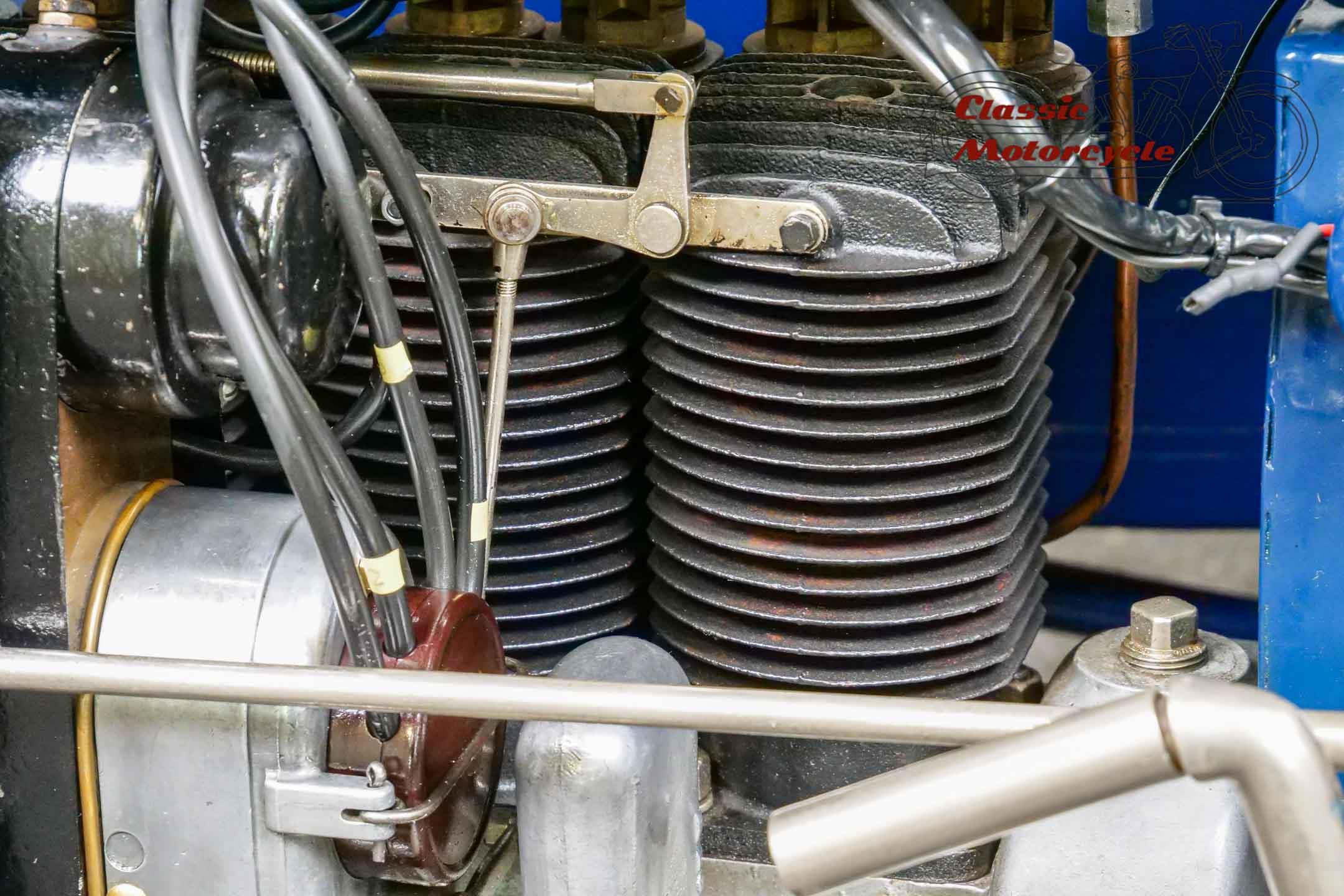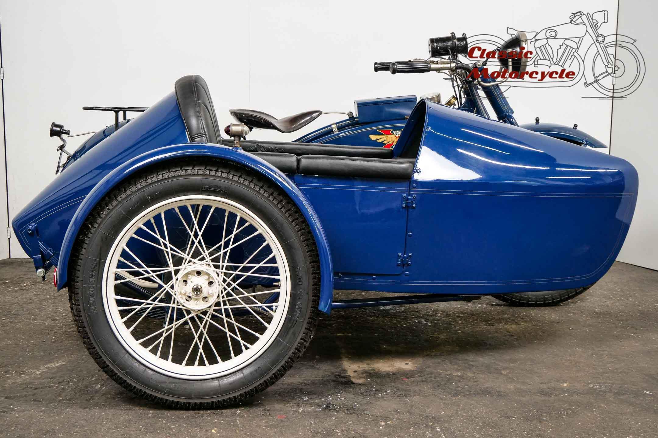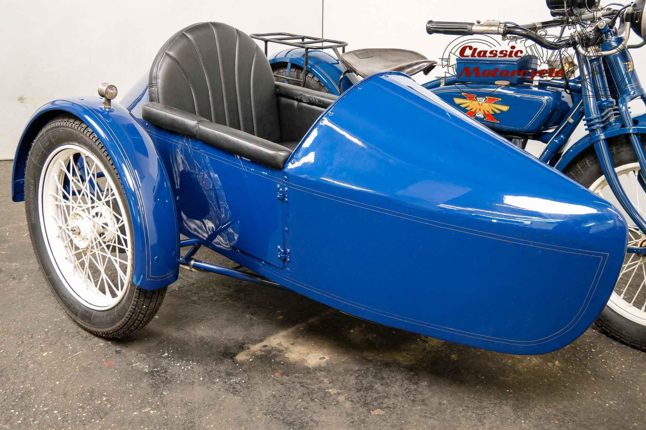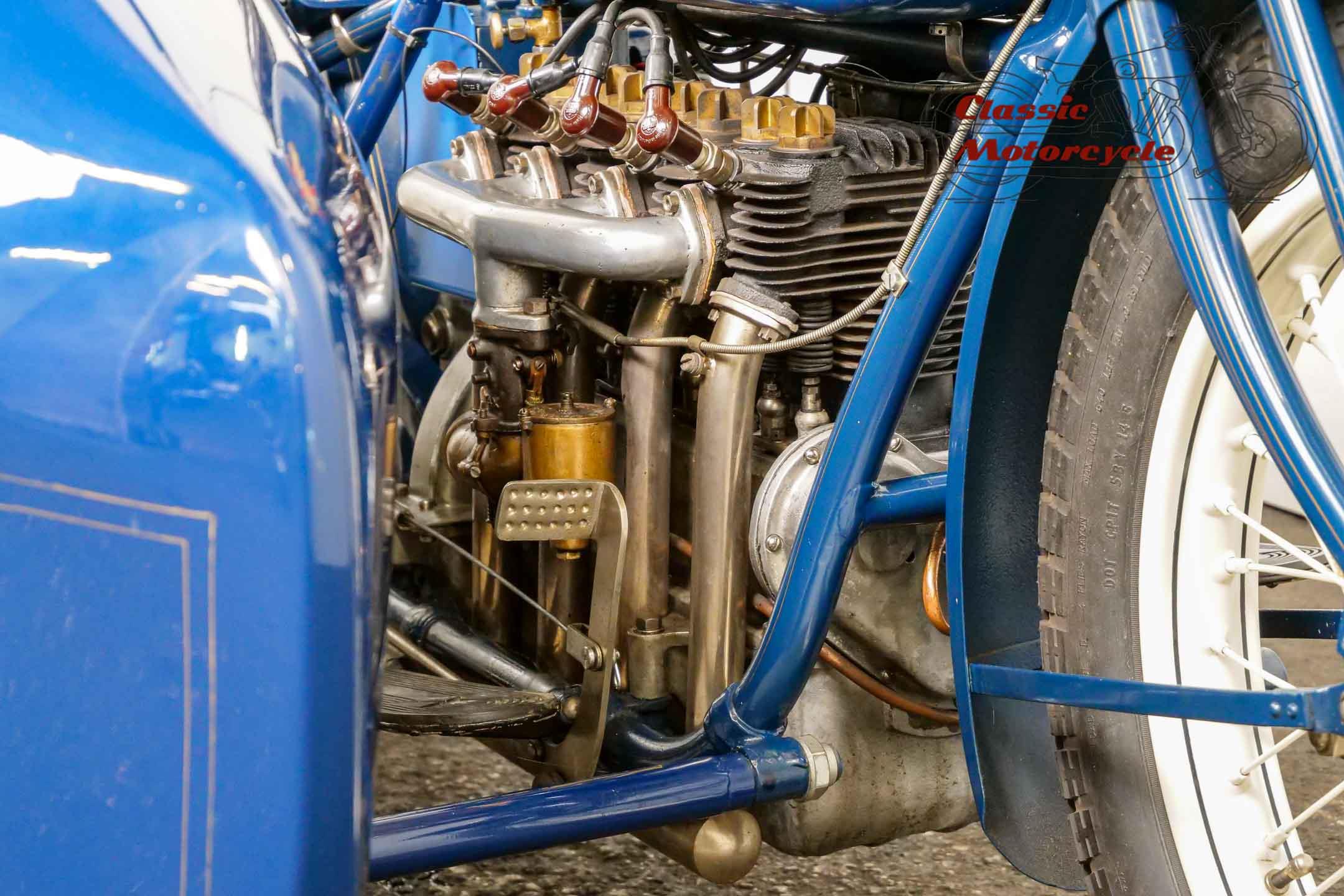 Henderson, a brand from the USA that has thundered with passion for the big 4-cylinder engines. The machine was imported from the USA in the 1990s and was completely restored in Holland at that time. A few years later this Henderson was completed with a sidecar. The displacement of 1300cc complements perfectly with the sidecar. She is equipped with a Zenith carburetor, lighting system, Weston ammeter, horn and a Corbin speedometer. This noble motorcycle should not be missing at any historical event. This bike The Henderson runs very fine.