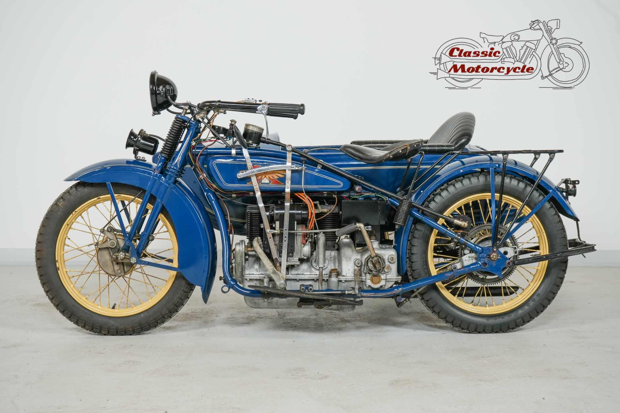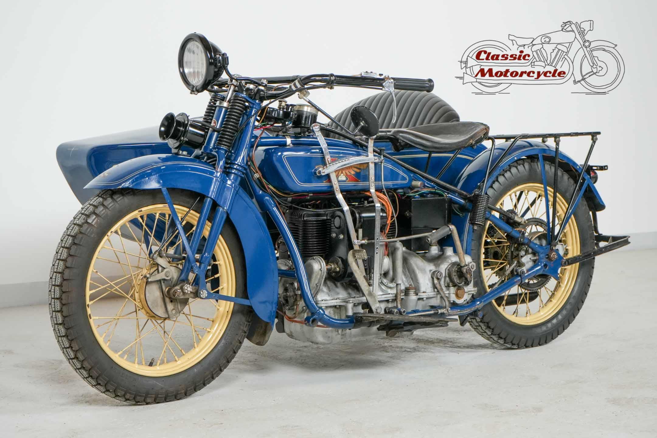4 cylinders, 1300cc-> Yes, these are the key data of a motorcycle. This Henderson is an older restoration and is equipped with a Corbin speedometer and a generous sidecar. It comes from a good collector and was part of this collection for many years. The bike comes complete with the original vehicle papers from Bologna, Italy. It was first registered there on 17.8.1929. The Henderson is ready to drive. We are proud to be able to offer this machine.