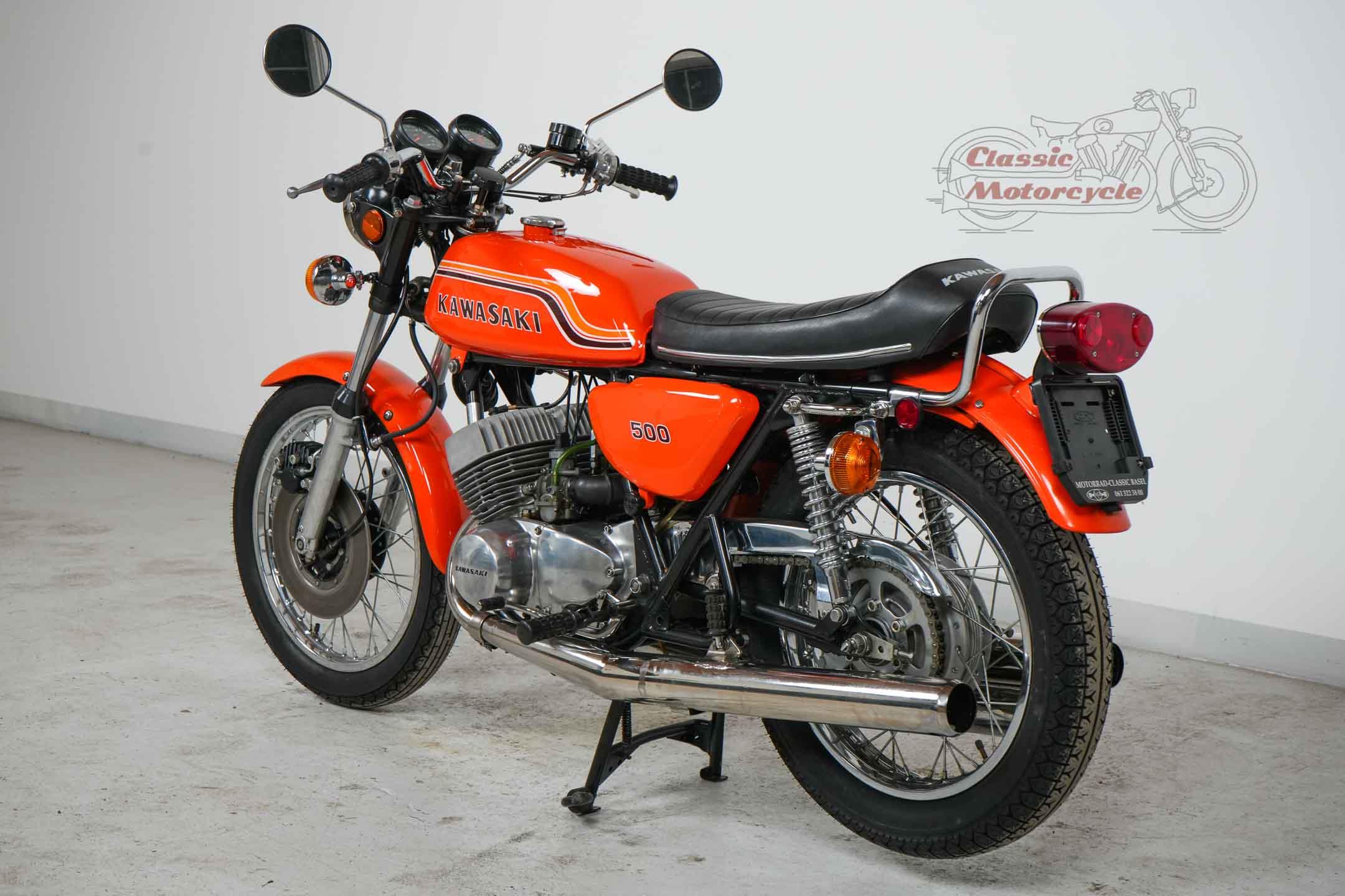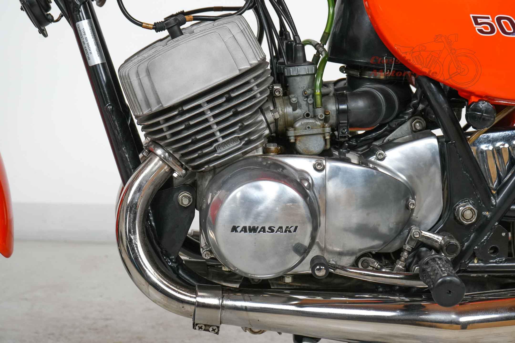 This Kawasaki comes from the Widowmaker model series. The 500cc engine produced almost 60hp with its 3 cylinders. Today these machines are sought-after collector's items. The machine is running. The carburettors should be adjusted again. It will be handed over with old invoices, operating instructions, parts list and all the paperwork from Switzerland.